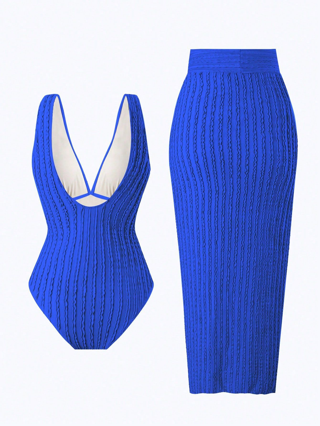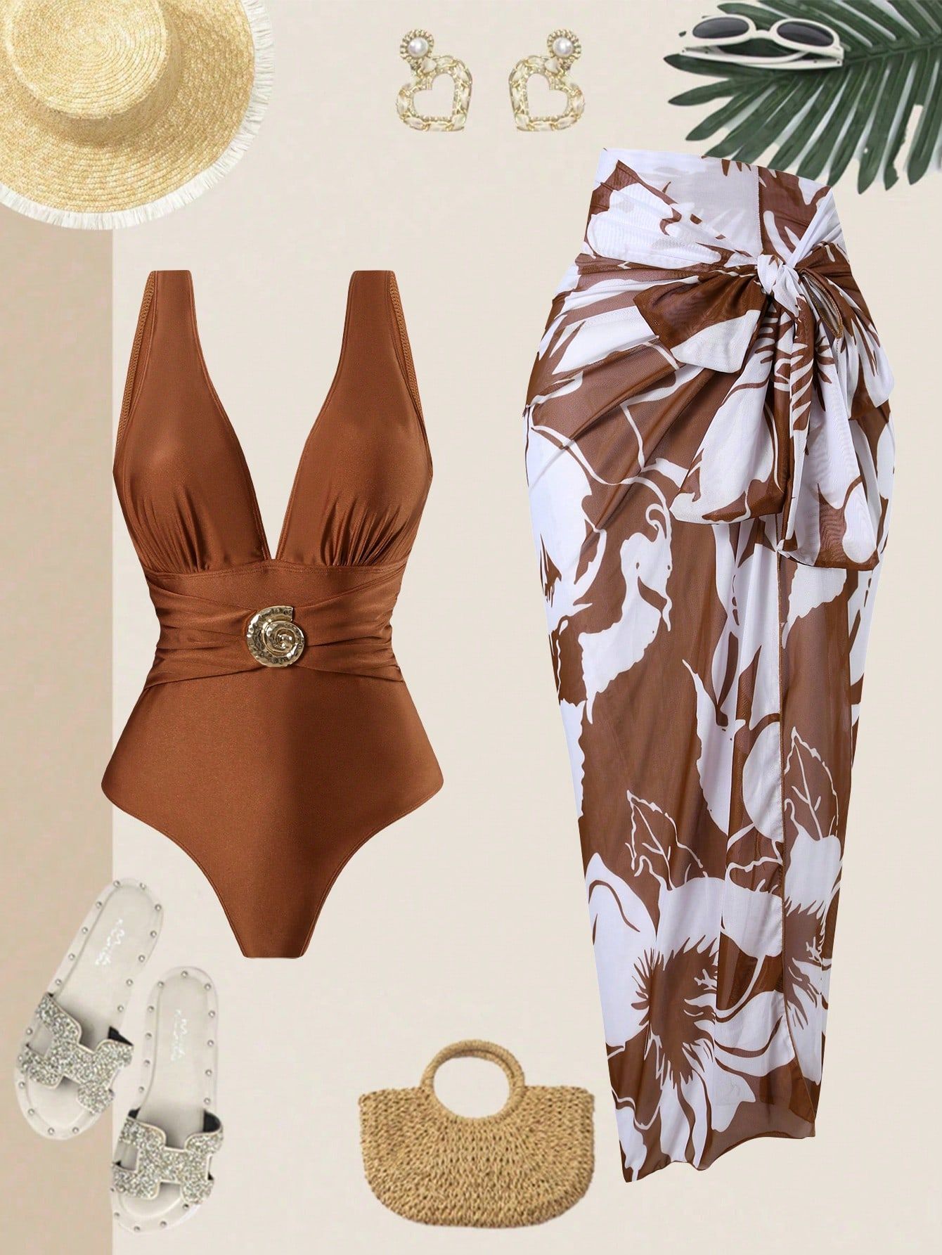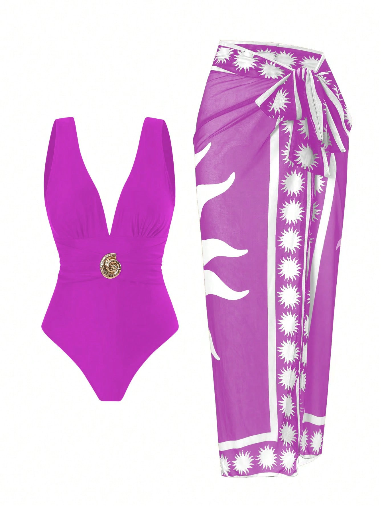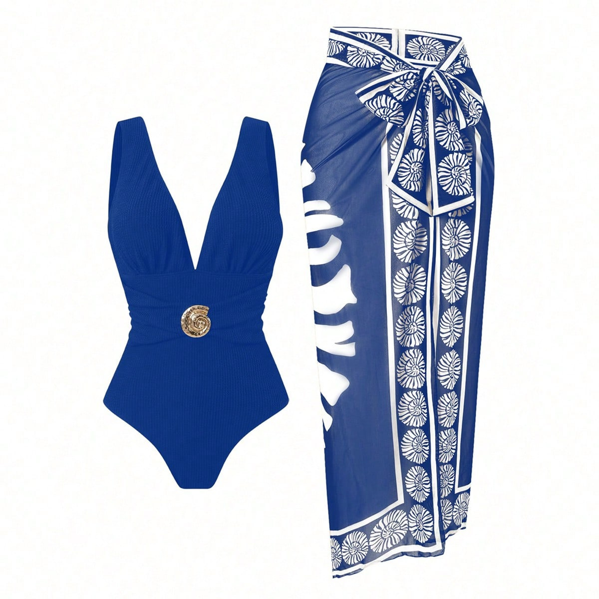 2025 Amazon 새로운 원피스 딥 V 섹시한 수영복 프렌치 레트로 프린트 온천 리조트 비치 스커트 슈트