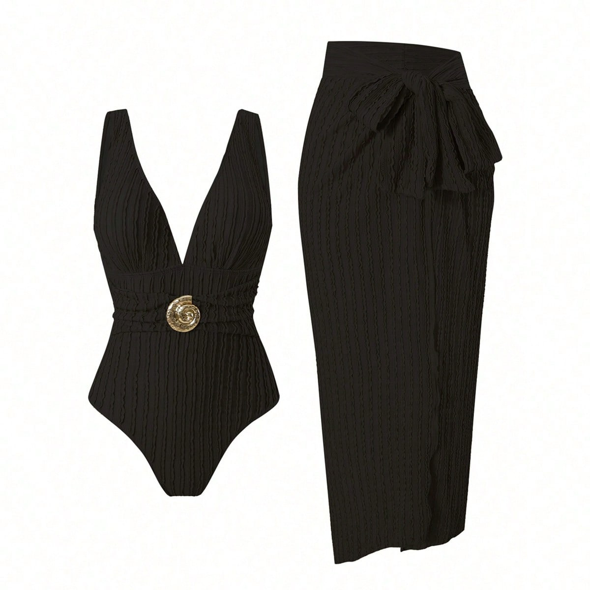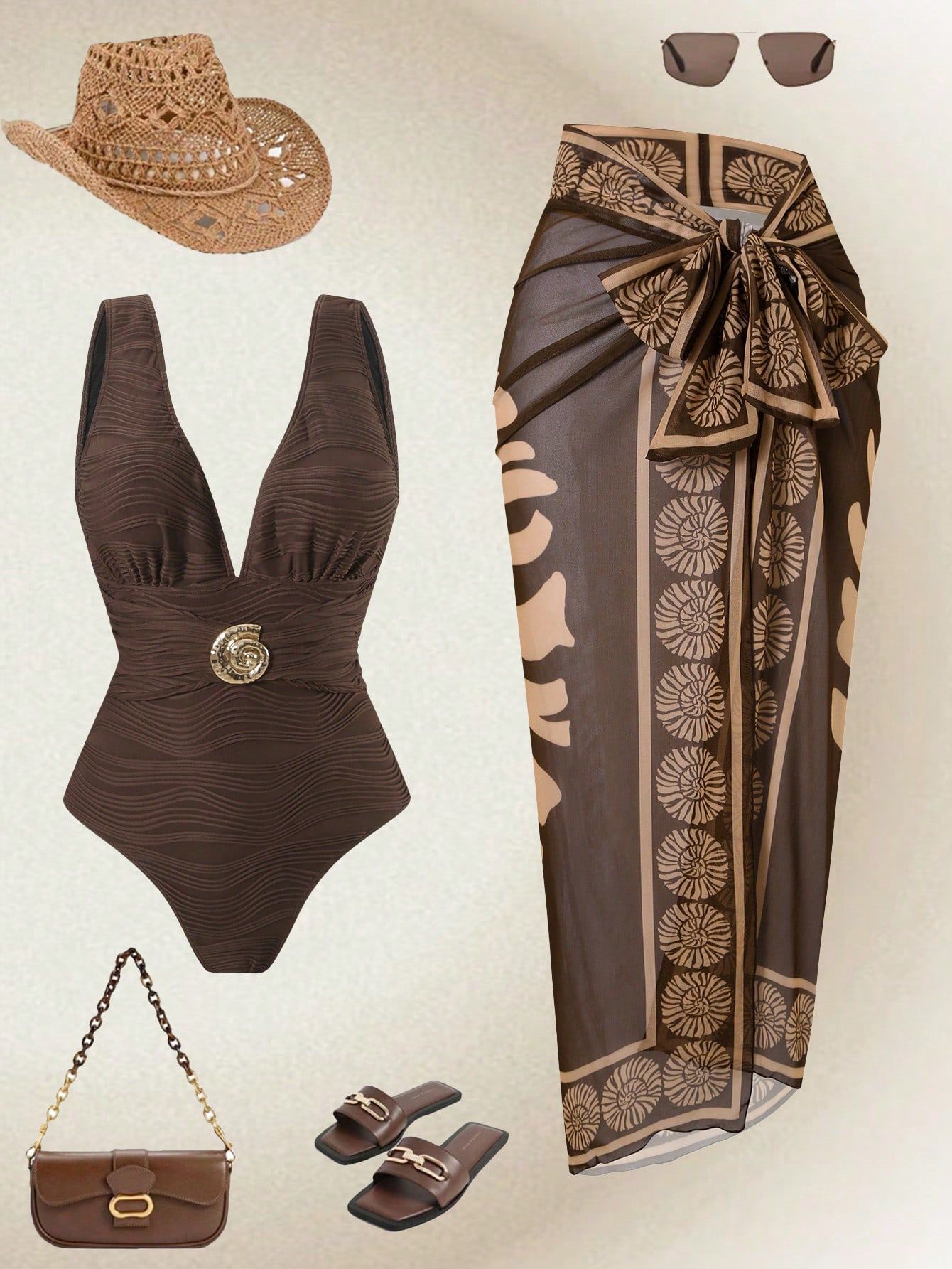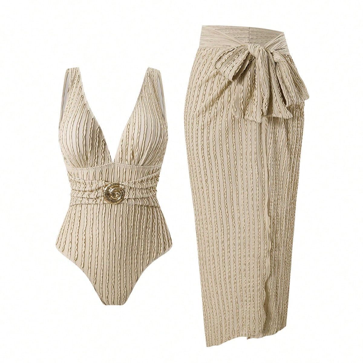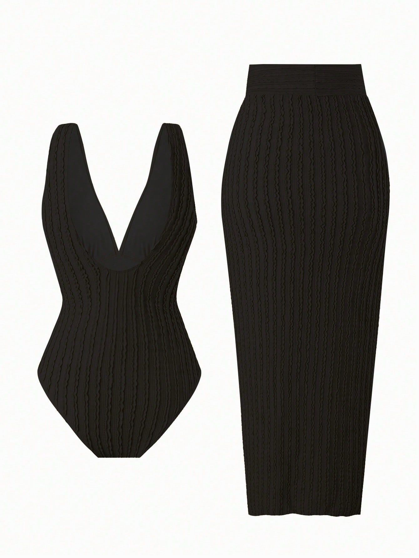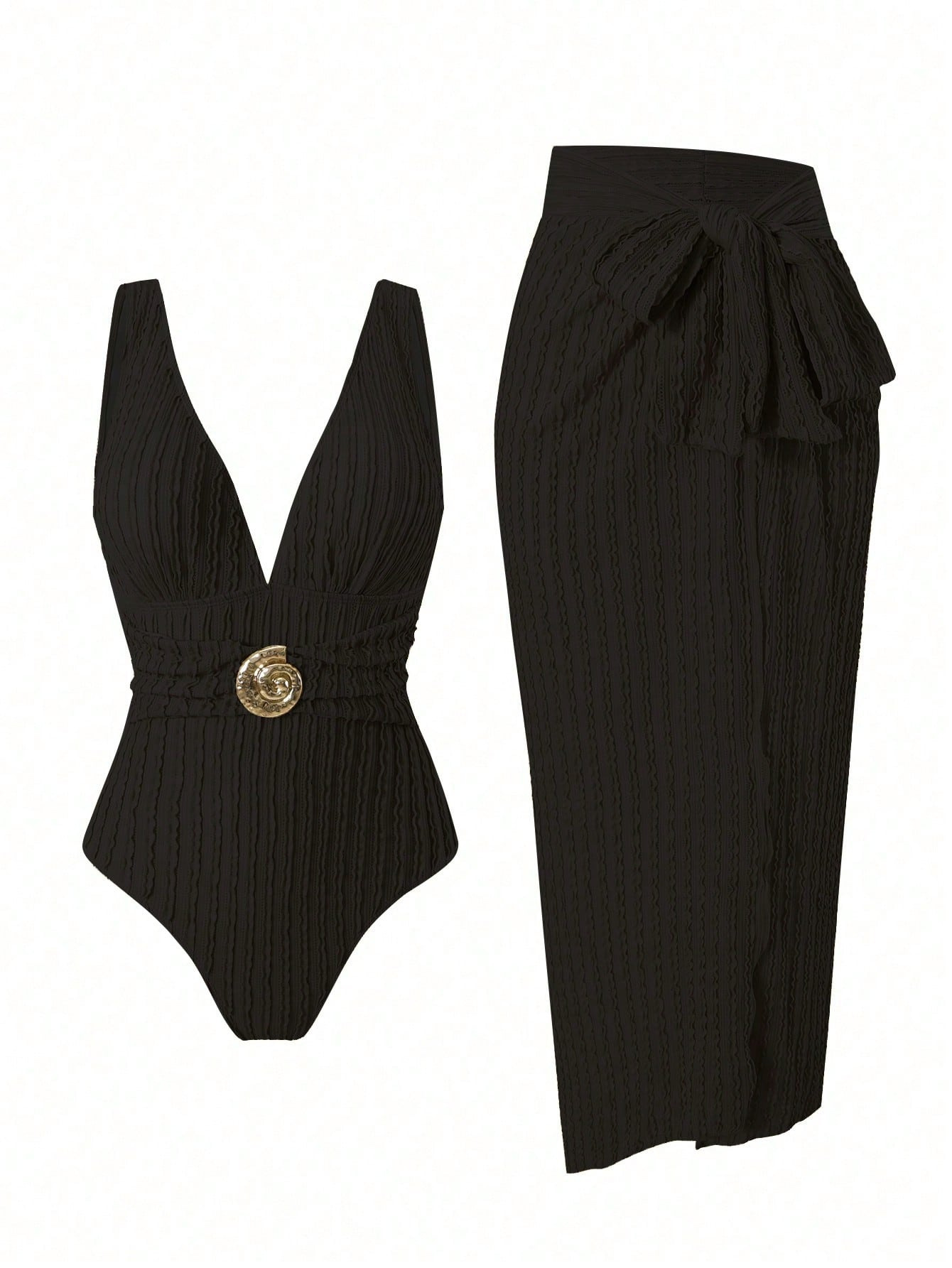 2025 Amazon 새로운 원피스 딥 V 섹시한 수영복 프렌치 레트로 프린트 온천 리조트 비치 스커트 슈트