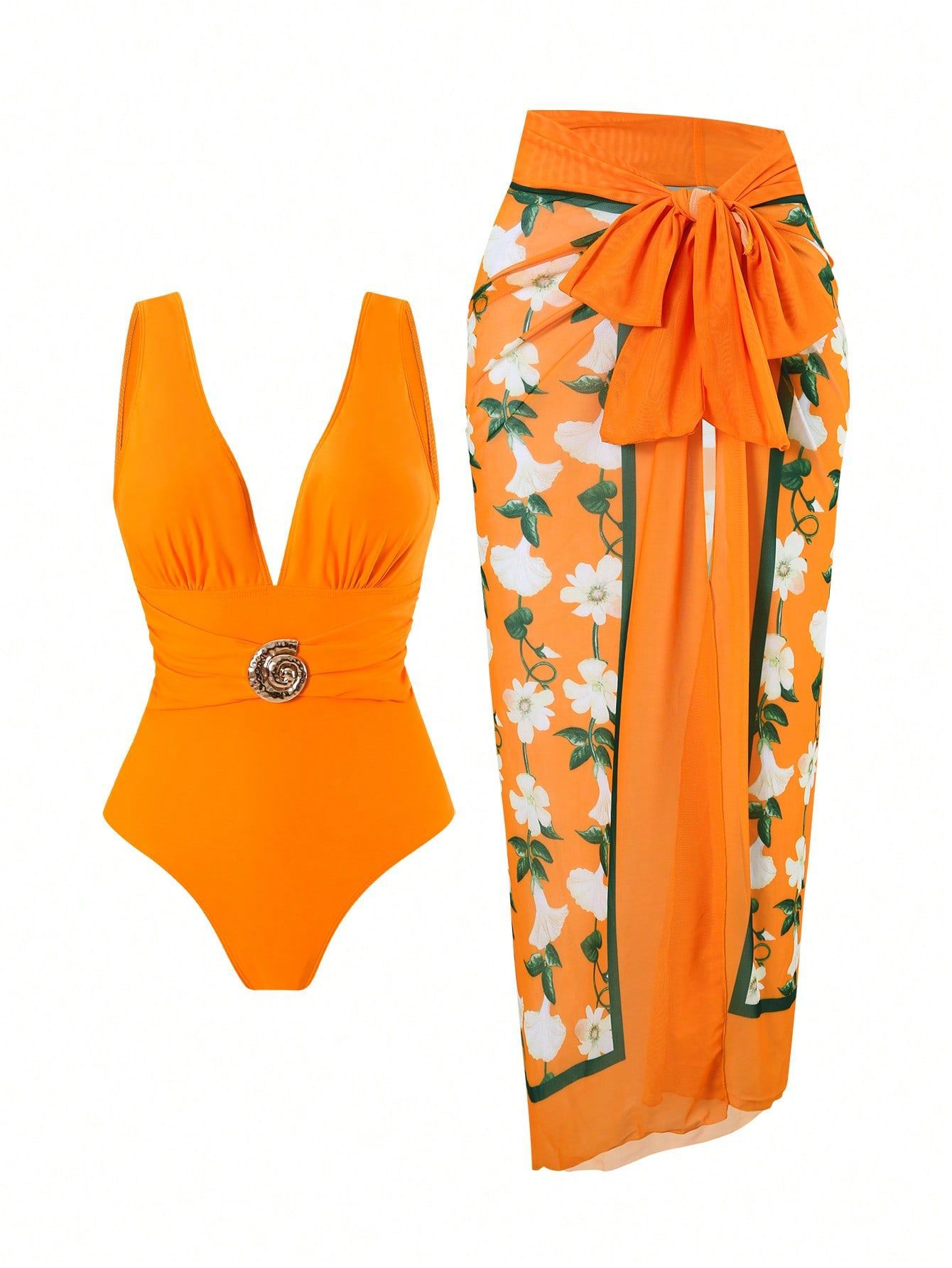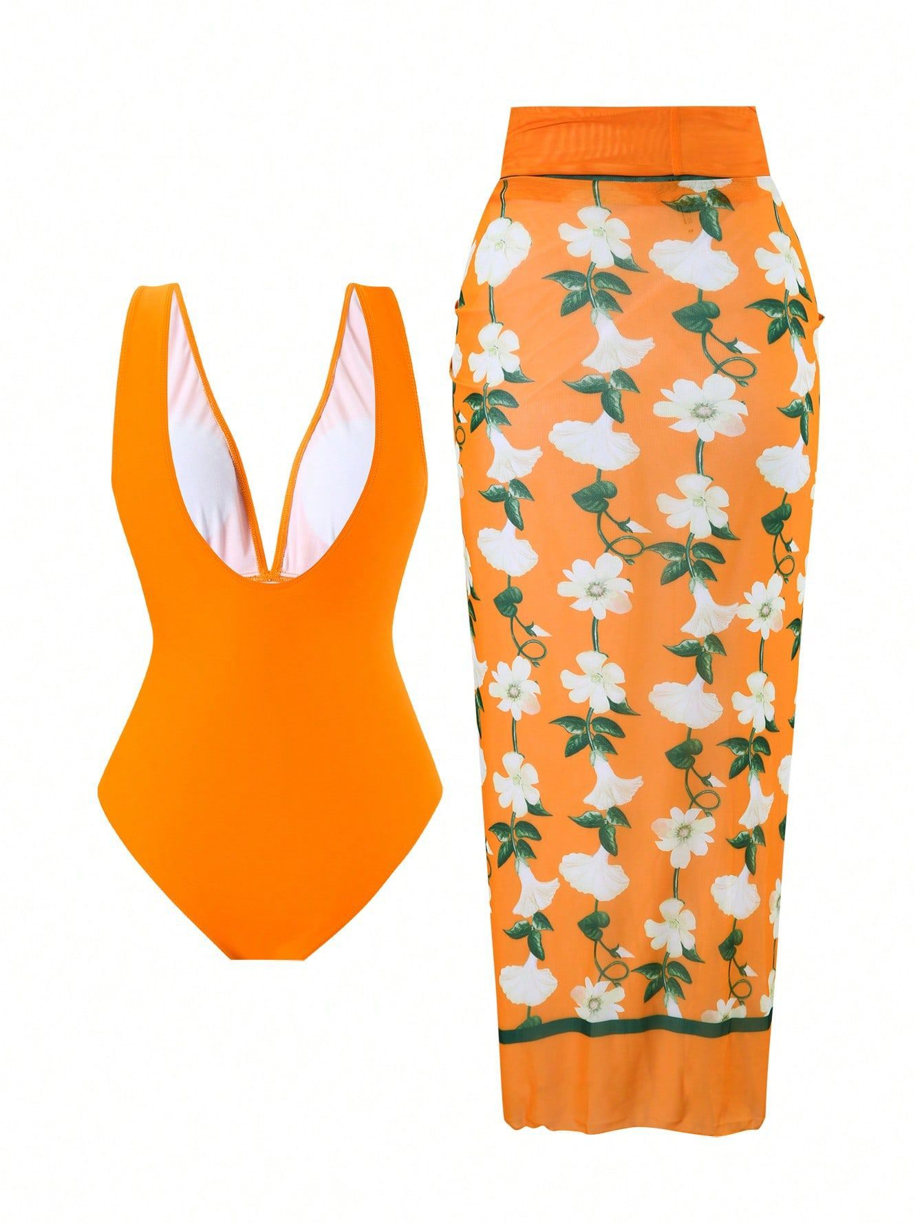 2025 Amazon 새로운 원피스 딥 V 섹시한 수영복 프렌치 레트로 프린트 온천 리조트 비치 스커트 슈트스토어 가기