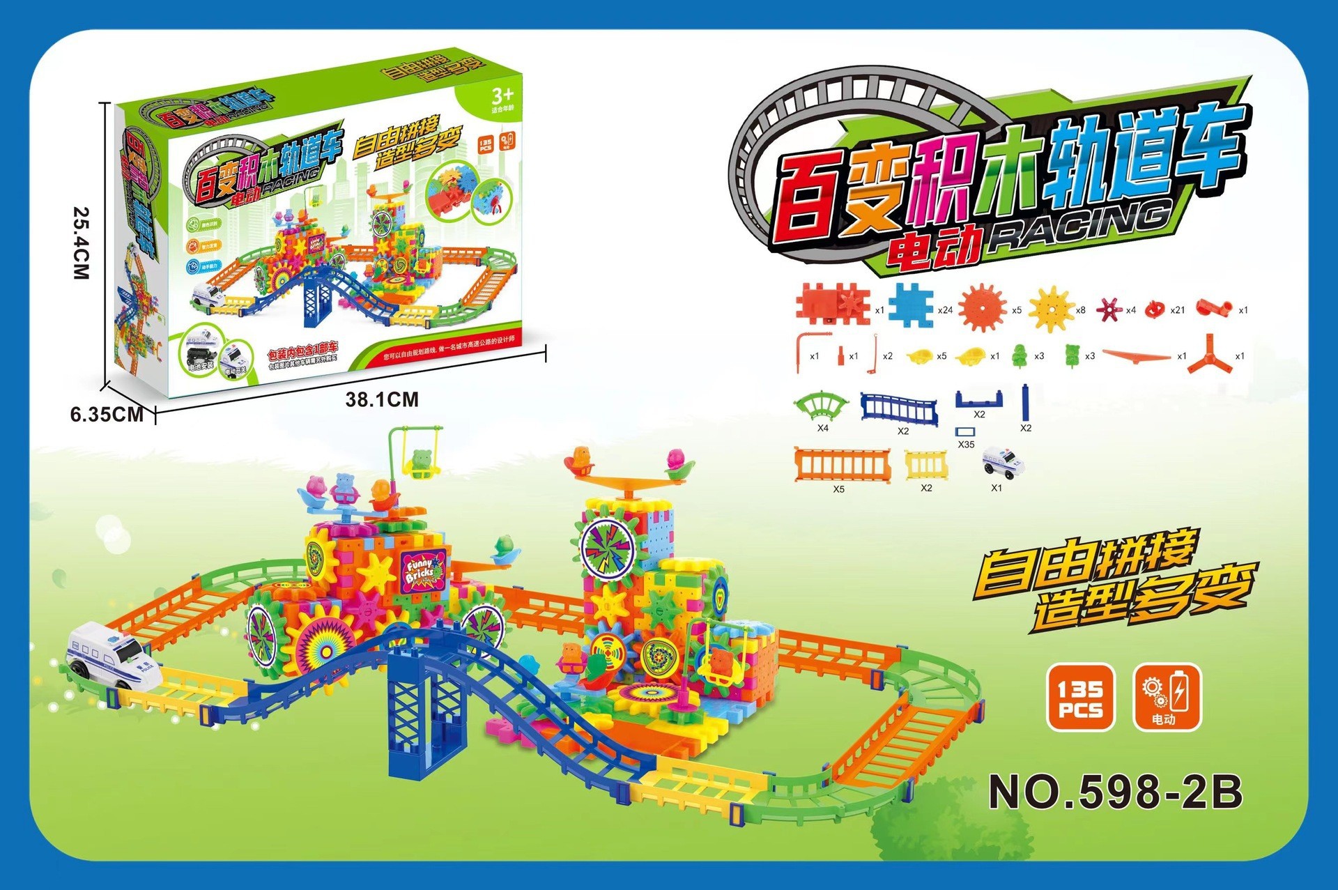 • 598-2B 다양한 전기 빌딩 블록 기어 + 철도 차량 38.1*6.35*25.4cm