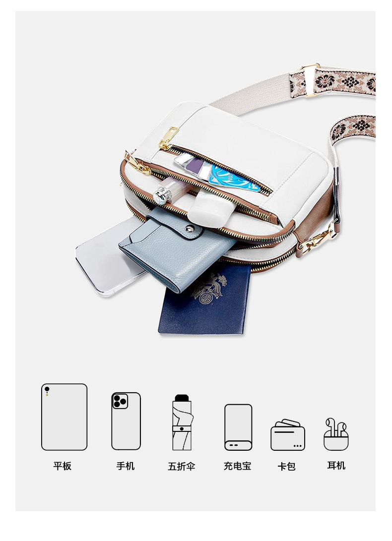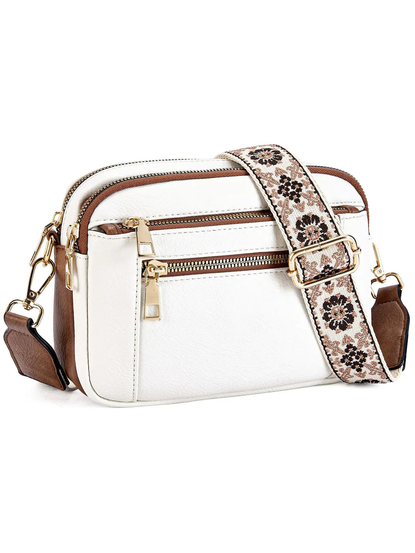 크로스보더 크로스백 배색 다기능 가방 조절 가능한 숄더백 지퍼 미니백 유럽풍 PU 가죽 출퇴근용 도매스토어 가기