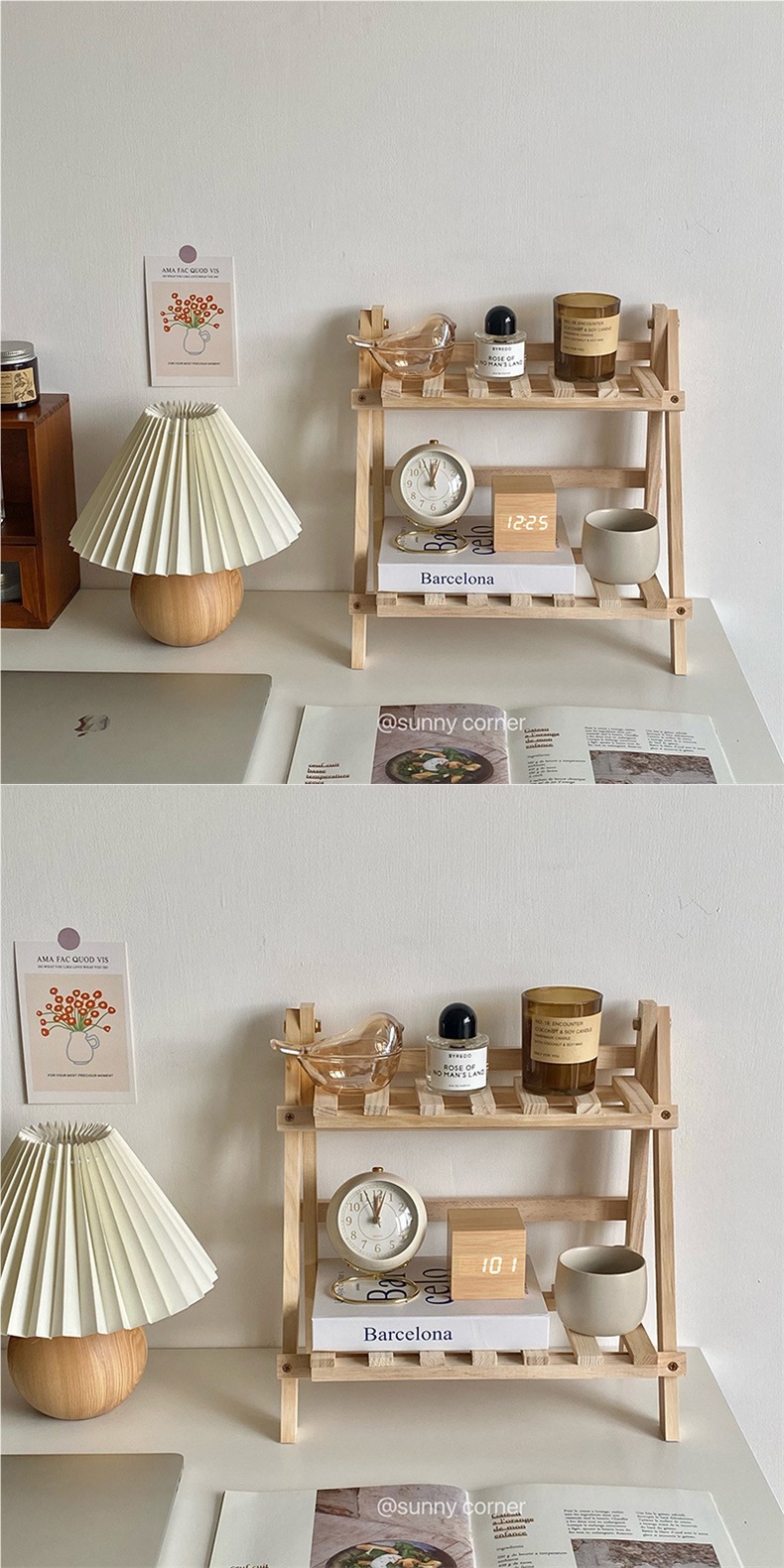 Yuanqi Corner 간단한 나무 더블 레이어 데스크탑 스토리지 랙 기숙사 방 침실 책상 스토리지 및 정리 Huian스토어 가기
