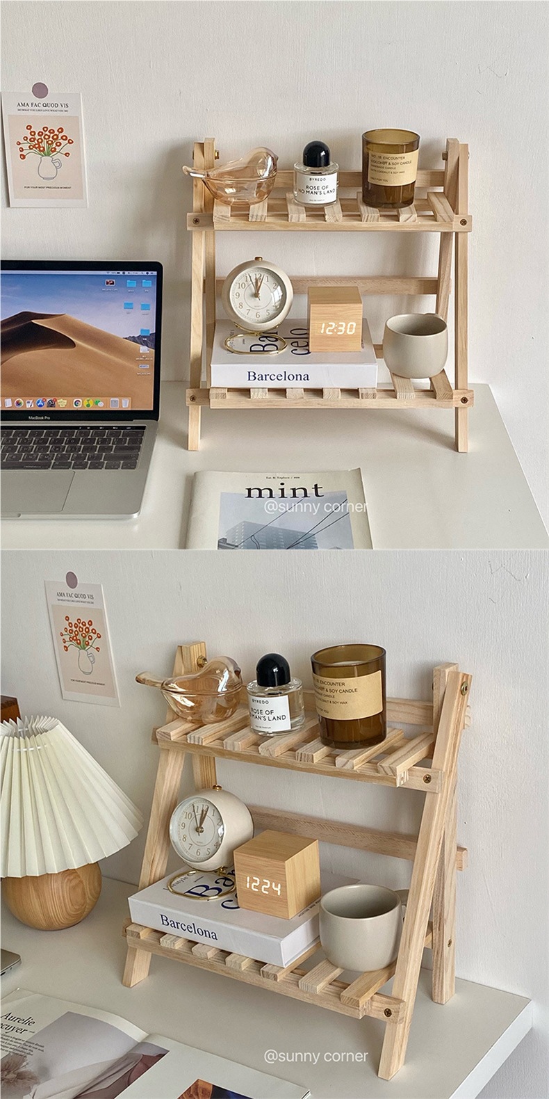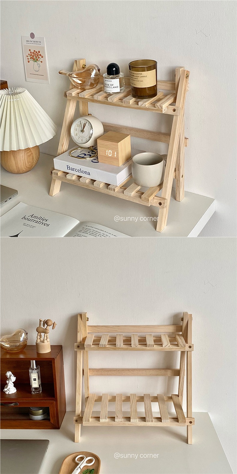 Yuanqi Corner 간단한 나무 더블 레이어 데스크탑 스토리지 랙 기숙사 방 침실 책상 스토리지 및 정리 Huian
