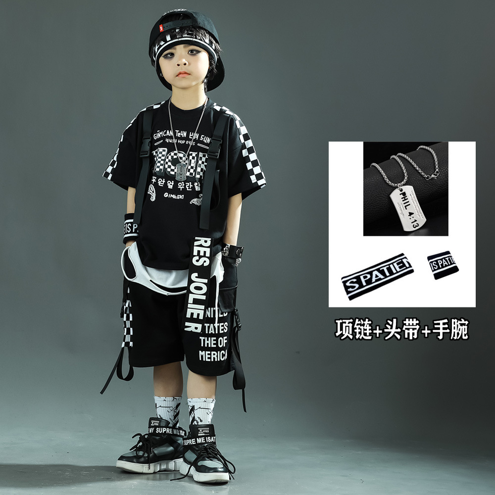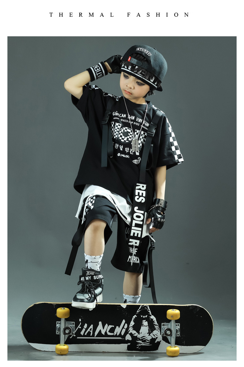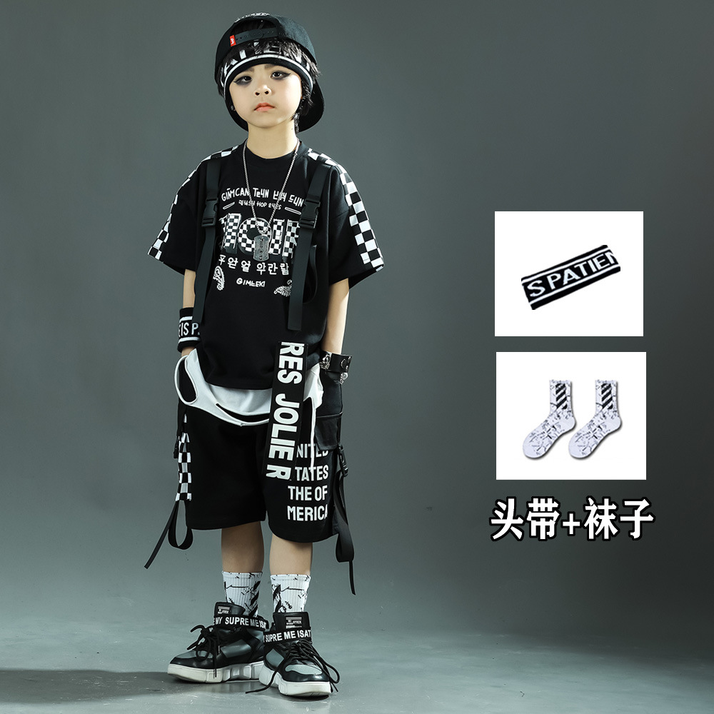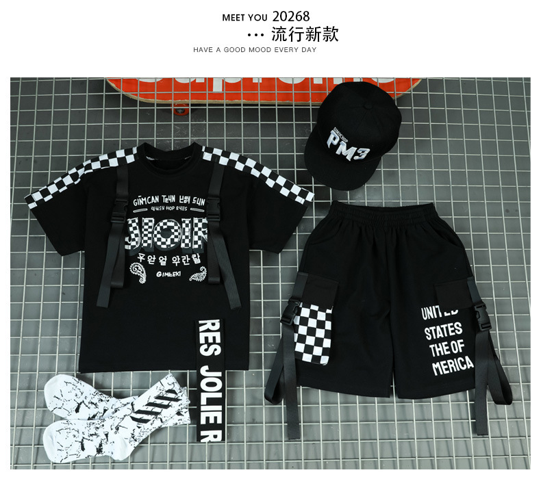 소년 거리 댄스 어린이 세트 스포츠 2025 여름 신식 한국 스타일 어린이 투피스 유행 아동복