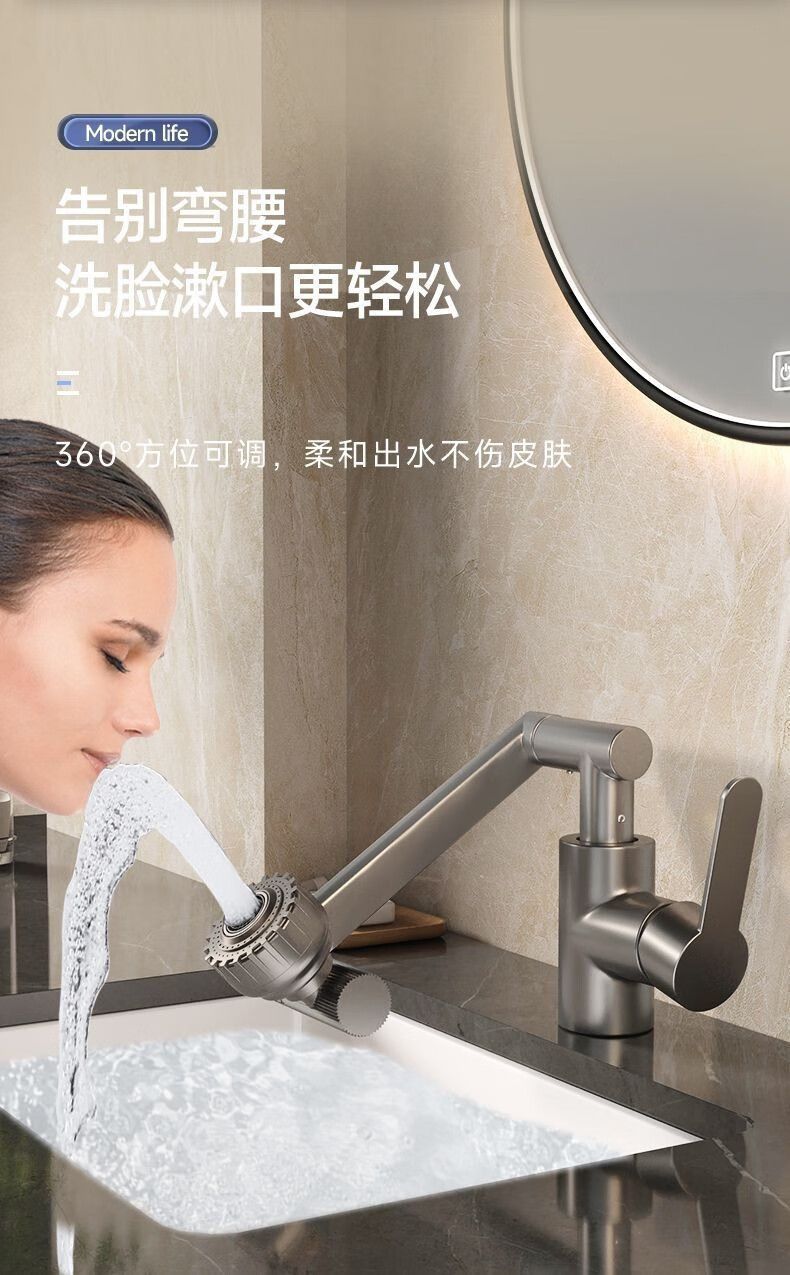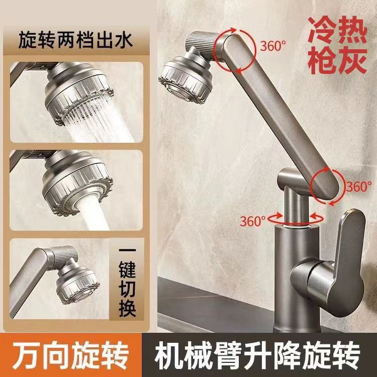 행운의 고양이 수도꼭지 세면대 욕실 세면대 수도꼭지 가정용 주방 뜨겁고 차가운 보편적 인 기계 팔 수도꼭지