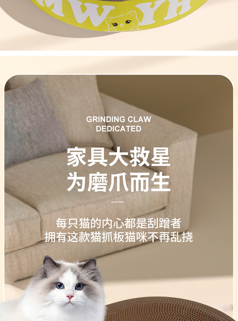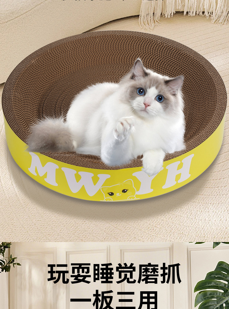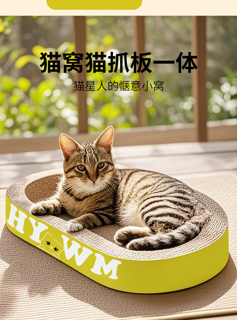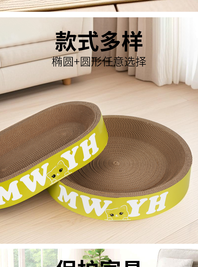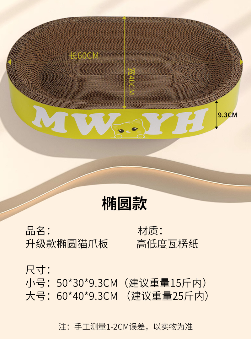 고양이 스크래치 보드 일체형 고양이 집, 내마모성, 긁힘 방지, 부스러기 없는 골판지 고양이 발톱통, 고양이 화장실, 내구성, 타원형스토어 가기