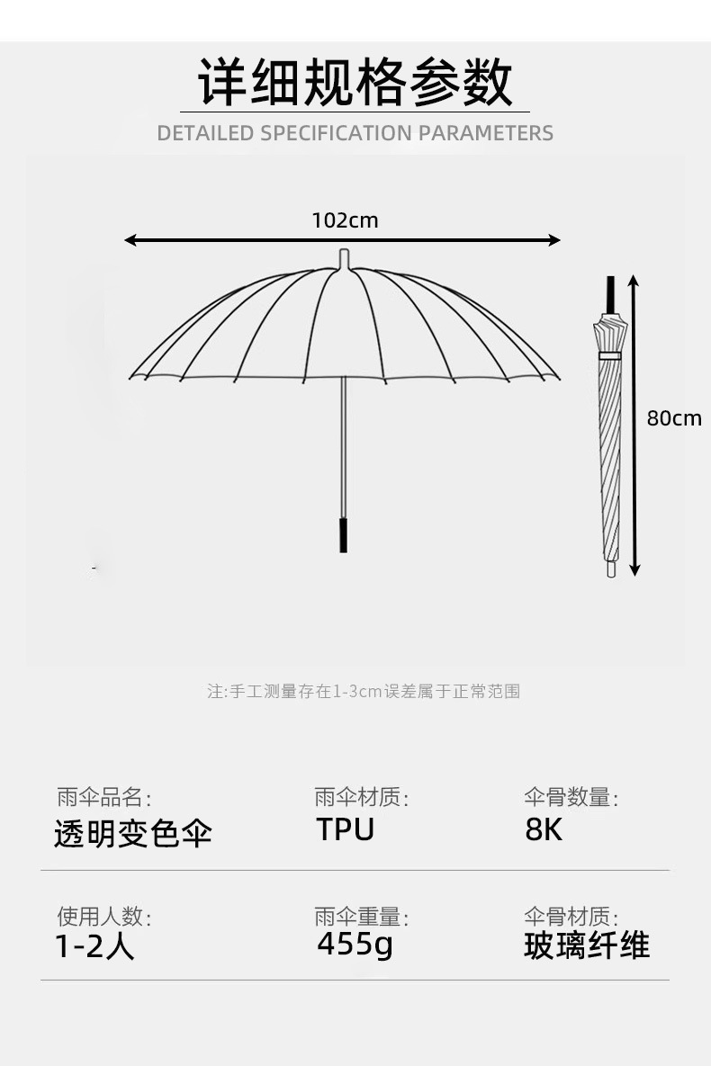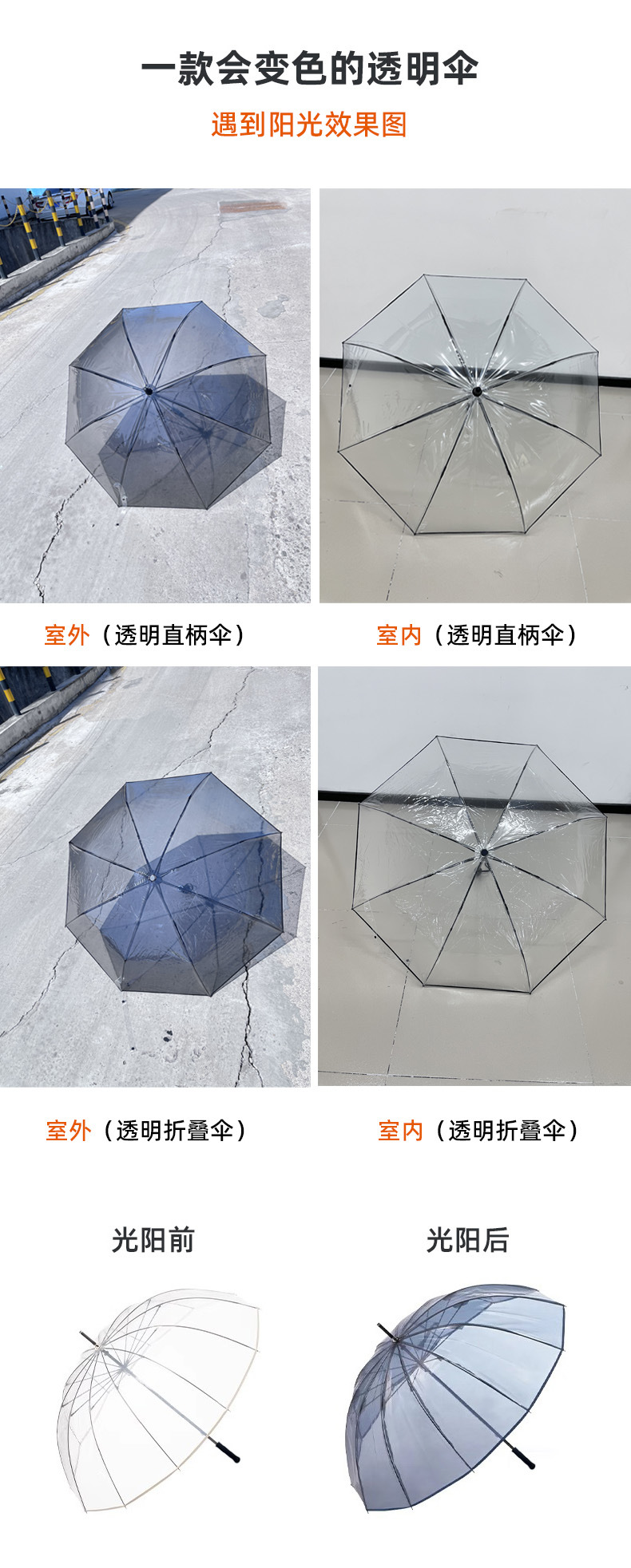 맞춤형 TPU 투명 우산, 햇빛에 노출되면 색상이 변하는 자외선 차단 UPF50+ 양산, 고급스러운 디자인의 햇빛 및 비 차단 우산