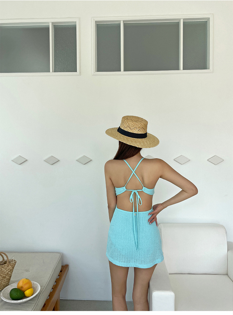 인스 스타일 하이엔드 니트 보수적인 스커트 스타일 스플릿 트라이앵글 퓨어 러브 스몰 프래그런스 수영복 여성 온천 수영복스토어 가기