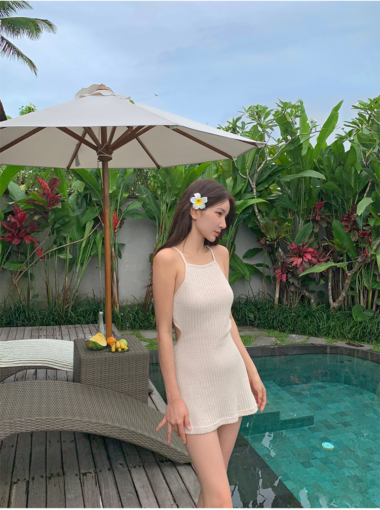 인스 스타일 하이엔드 니트 보수적인 스커트 스타일 스플릿 트라이앵글 퓨어 러브 스몰 프래그런스 수영복 여성 온천 수영복