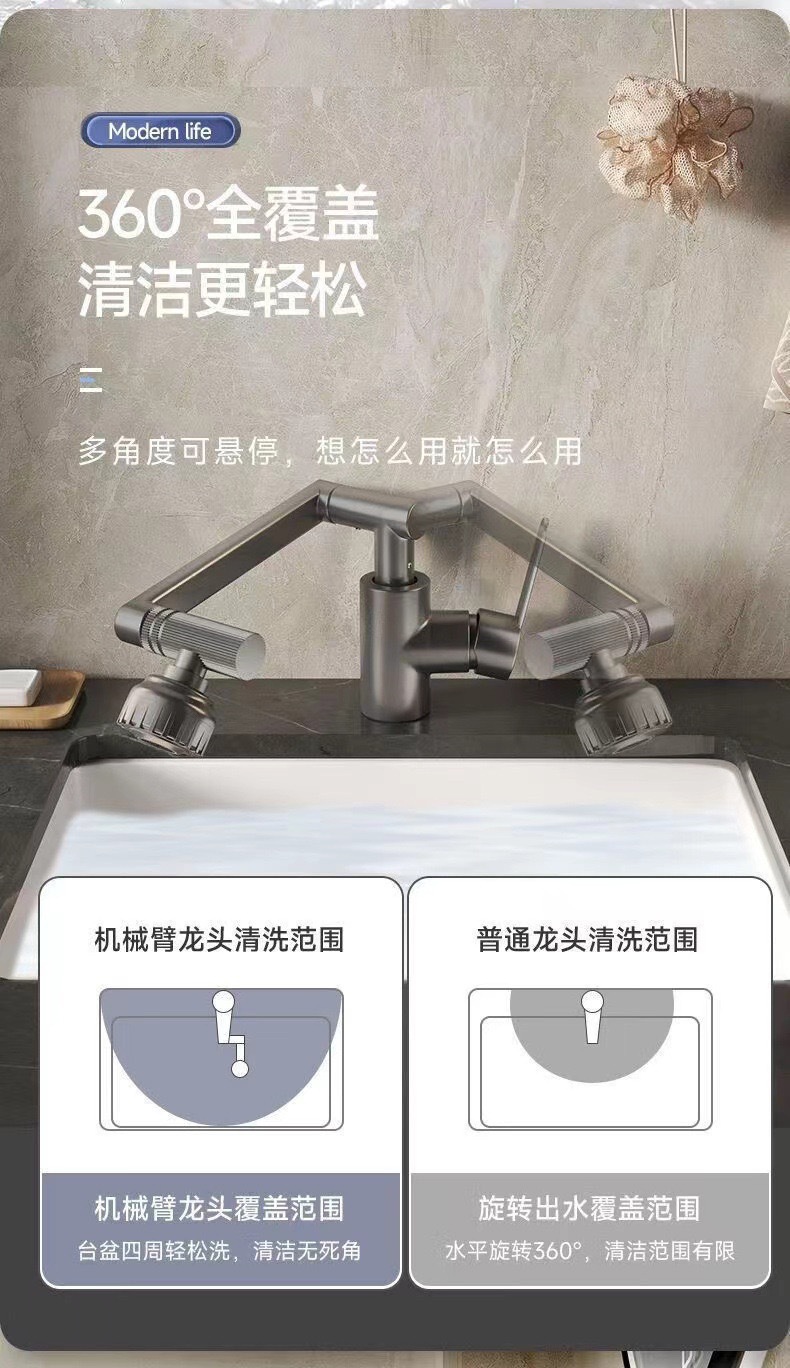 수도꼭지 Luckcat 분지 가정용 차갑고 뜨거운 이중 사용 화장실 욕실 분지 유니버설 기계 팔 회전 수도꼭지스토어 가기