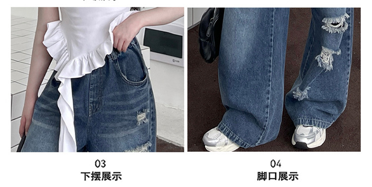 오렌지 타이거 국경 2025 소녀 여름 새로운 불규칙한 레이스 인쇄 탑 찢어진 청바지 한국 스타일스토어 가기