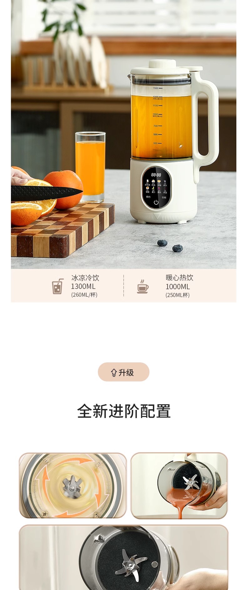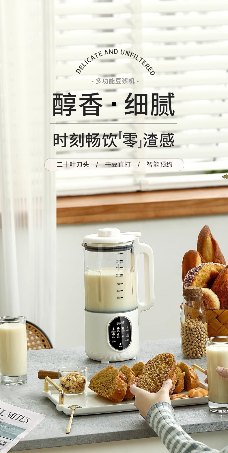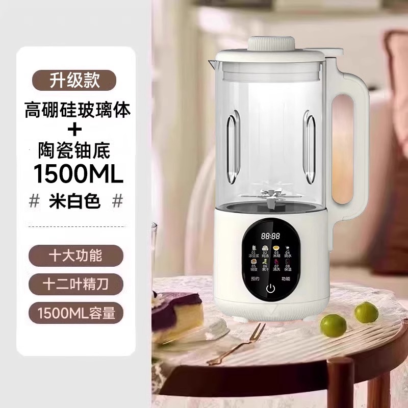 • 오프화이트 스탠다드 모델 [1500ML] 식품등급 시각적 고실리콘 붕규산 유리_10날 커터 헤드_건조콩 직접 분쇄_조리 및 필터링 없음_저소음 및 소음 감소