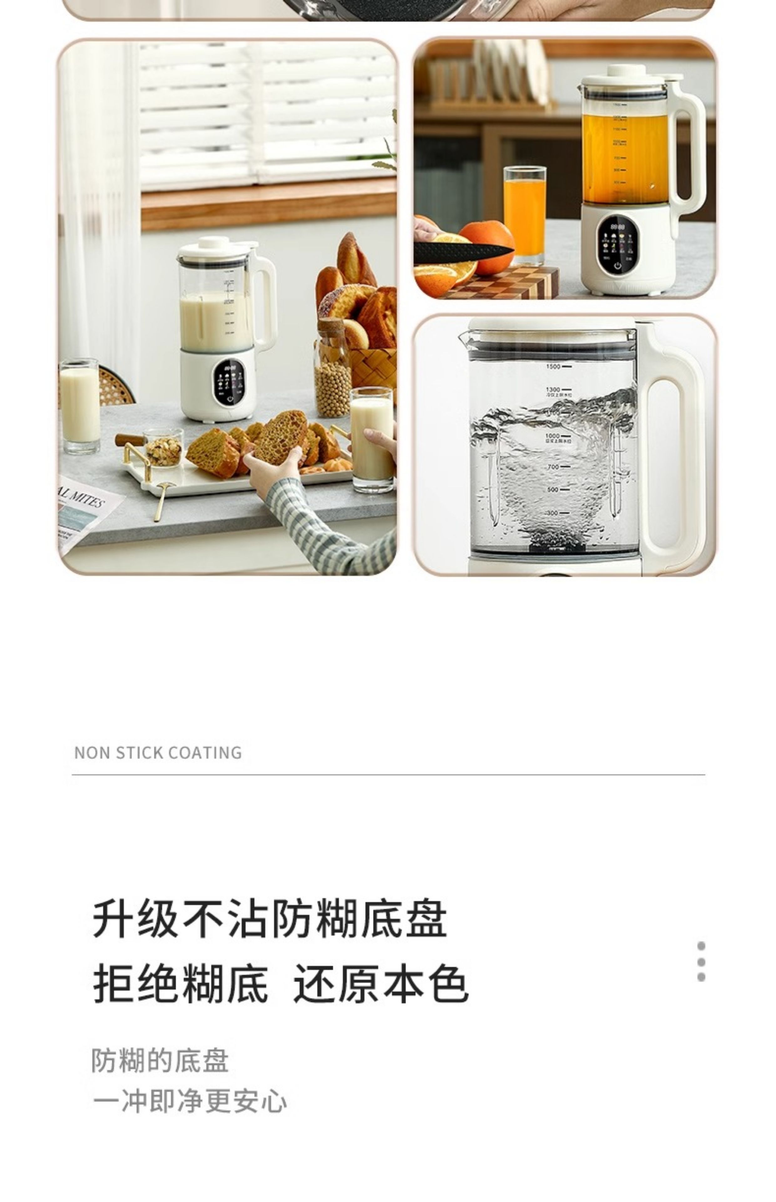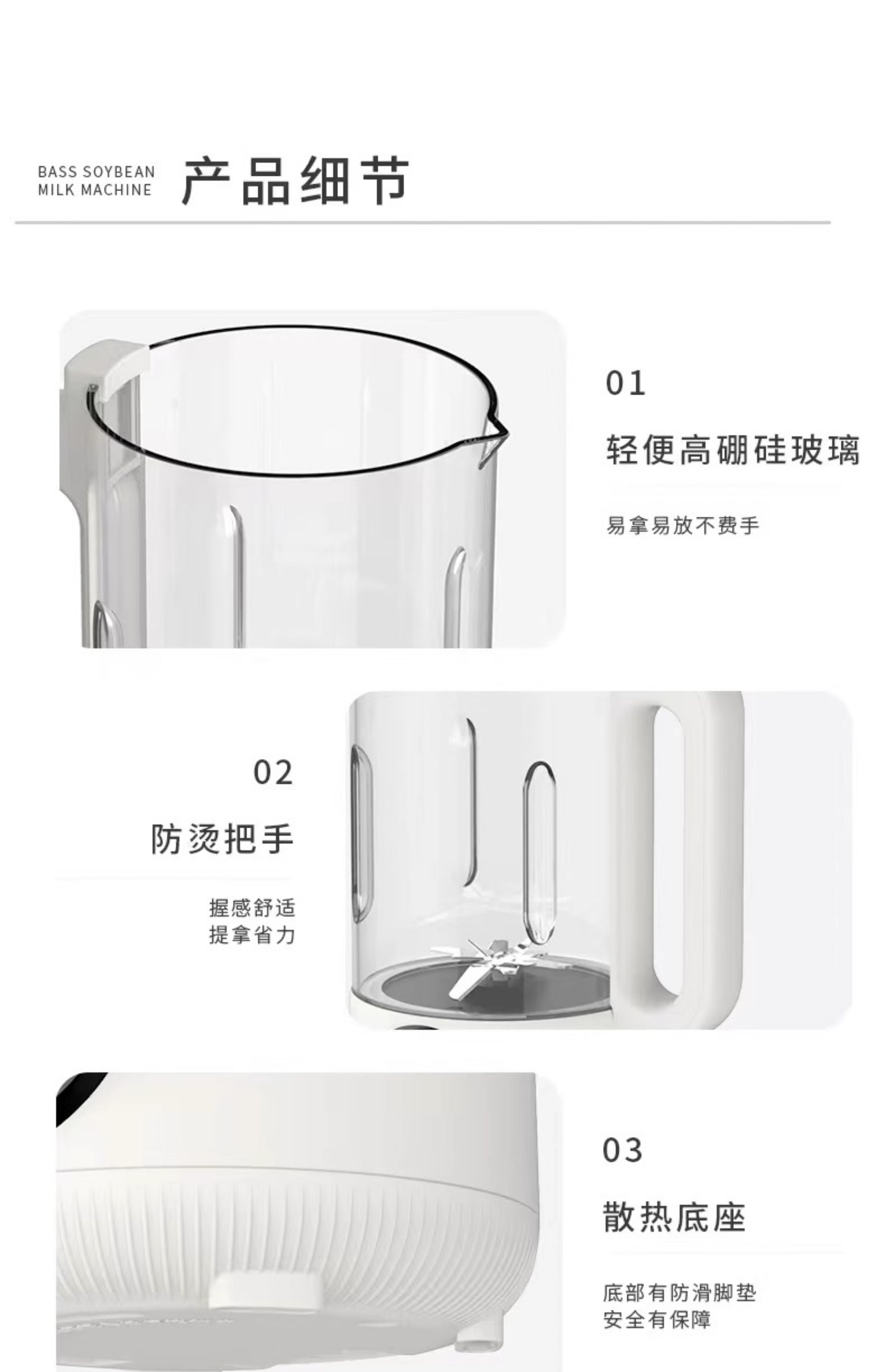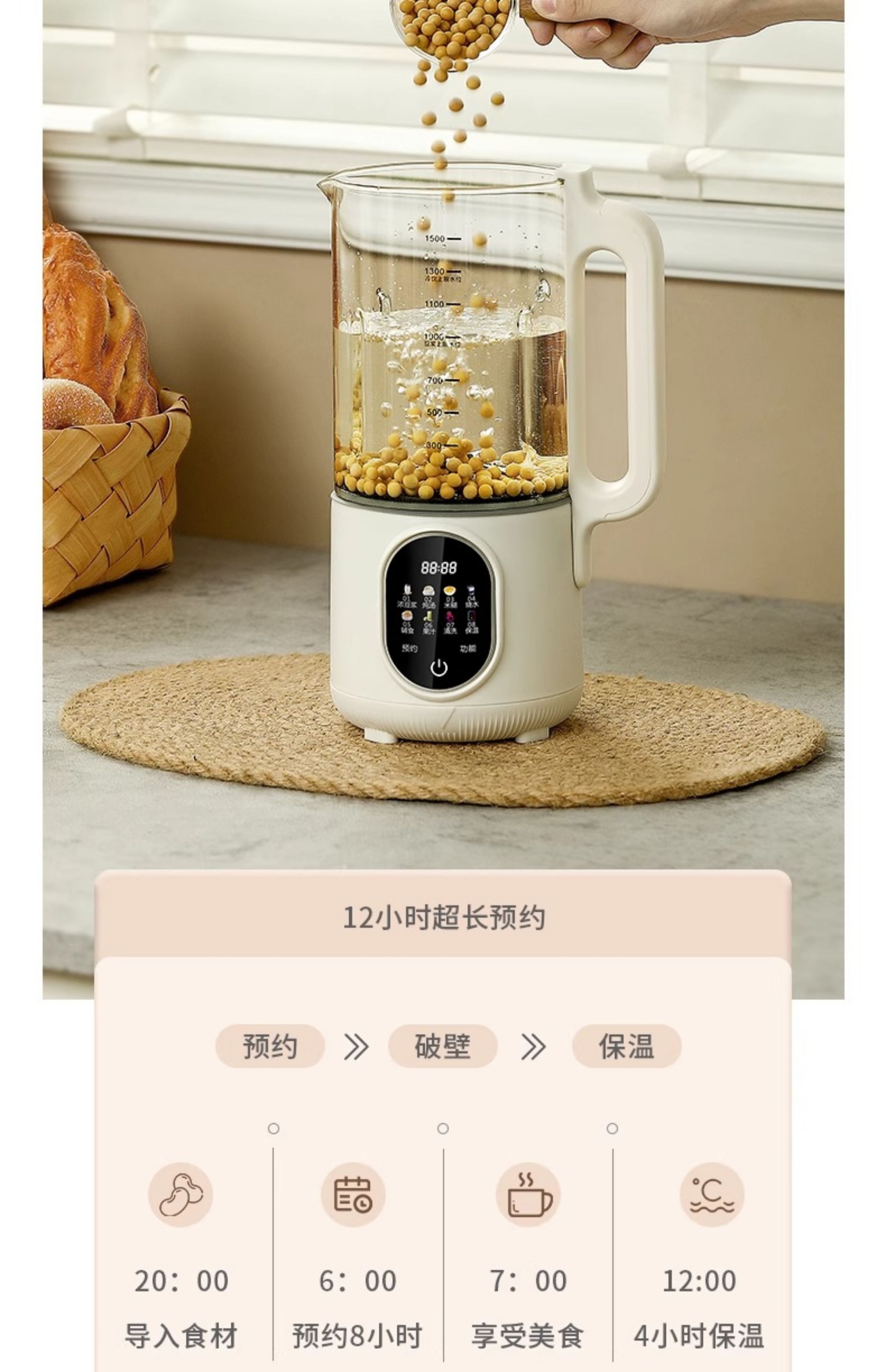 • 오프화이트 스탠다드 모델 [1500ML] 식품등급 시각적 고실리콘 붕규산 유리_10날 커터 헤드_건조콩 직접 분쇄_조리 및 필터링 없음_저소음 및 소음 감소