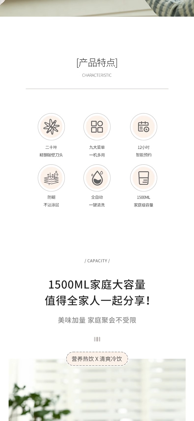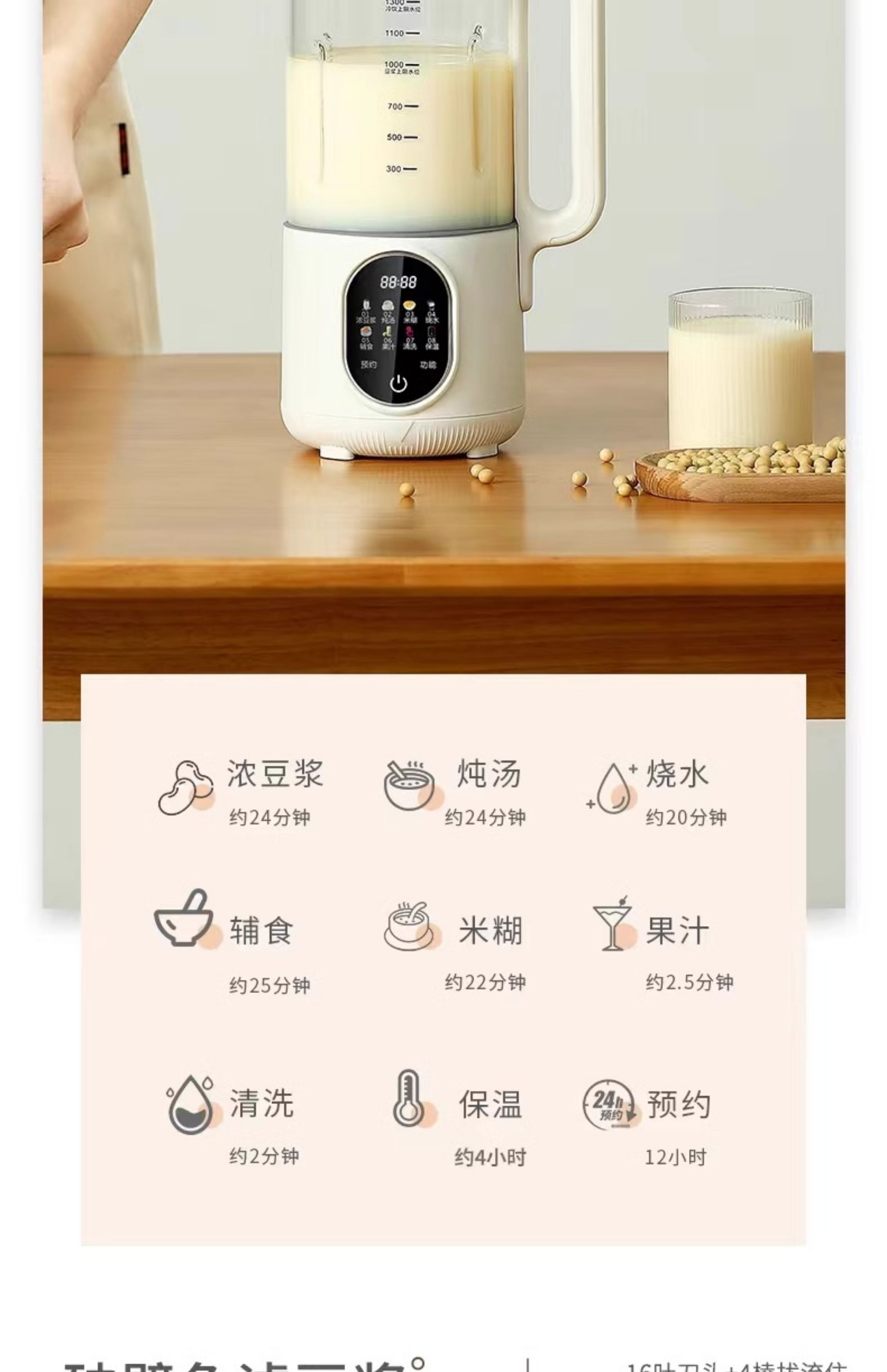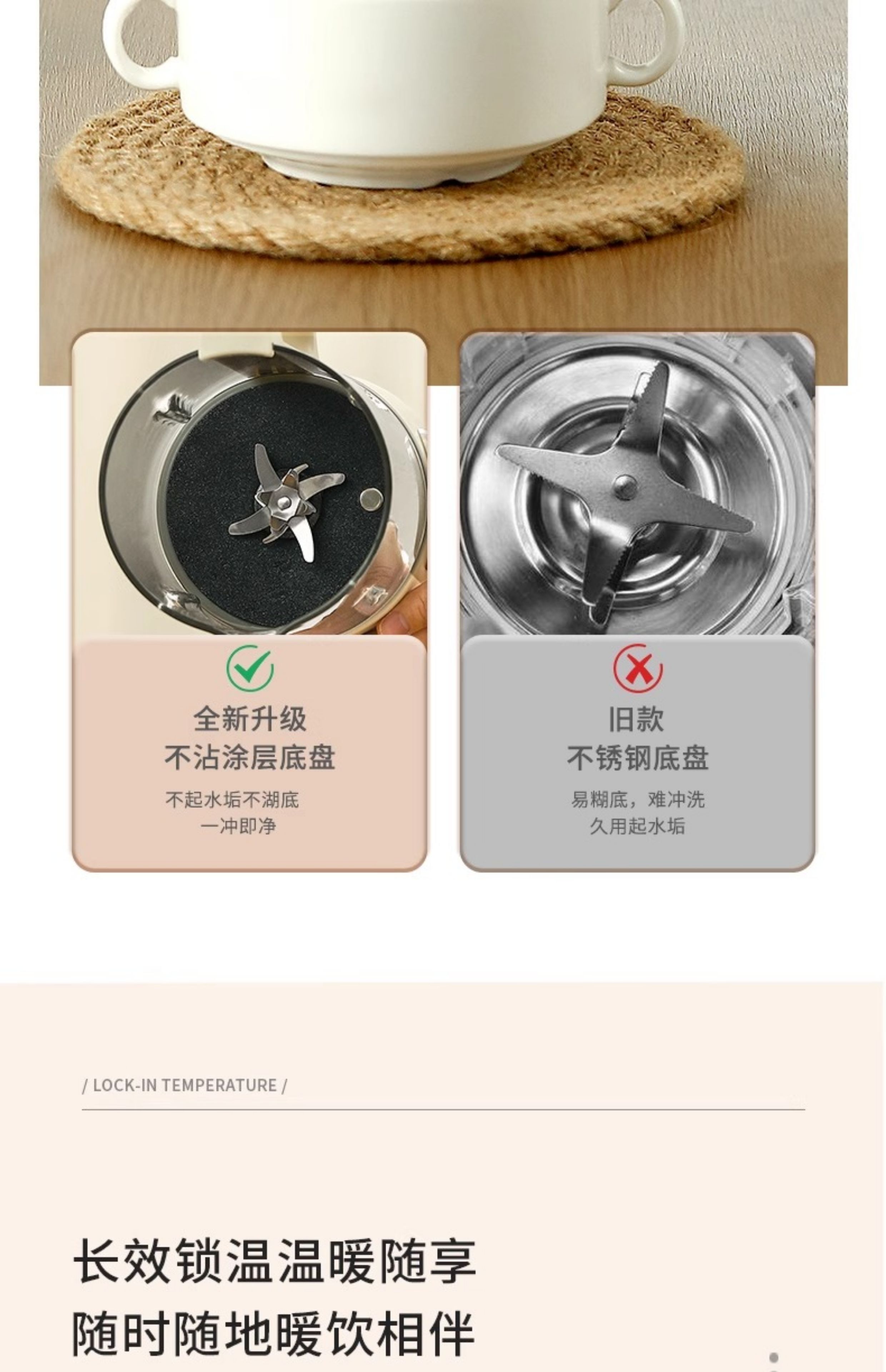 • [업그레이드 모델 1200ml] 304 스테인레스 스틸 라이너 + 스마트 예약 + 10잎 정밀 칼 + 8가지 기능