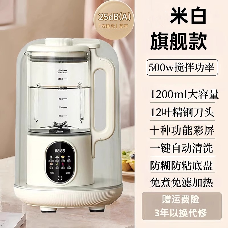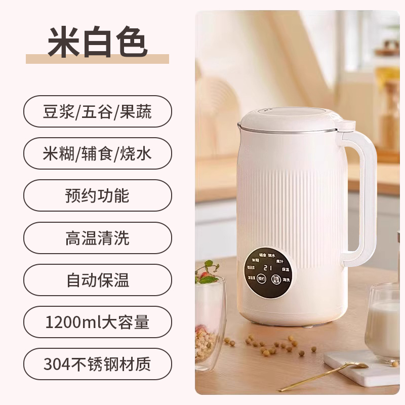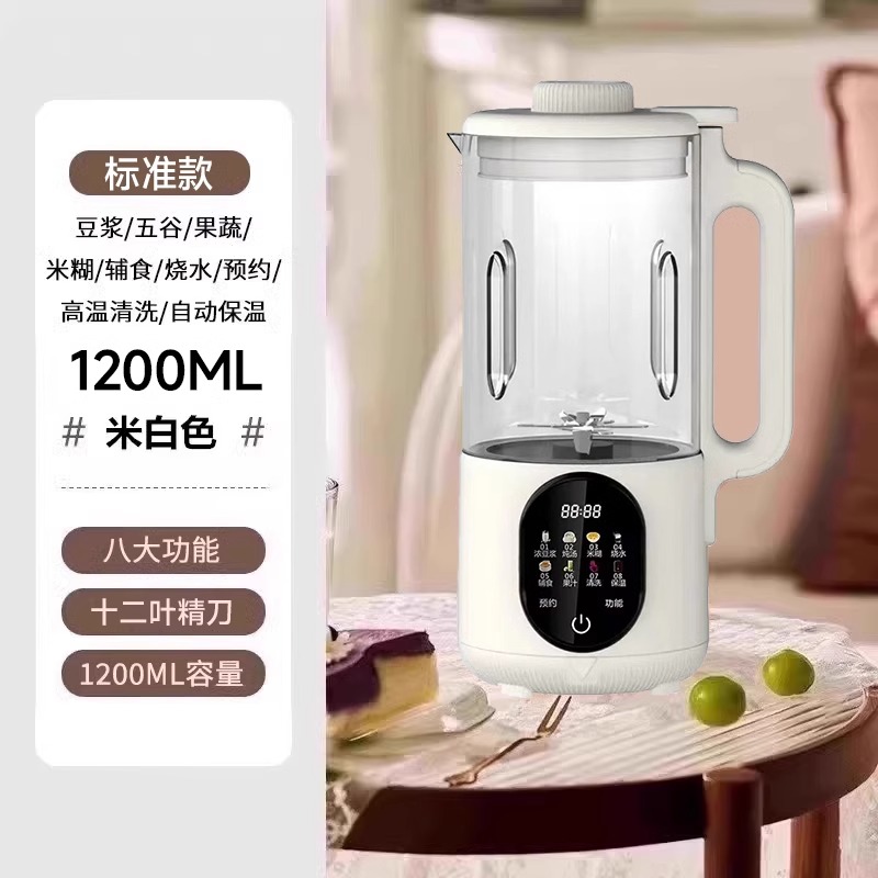 • 오프화이트 스탠다드 모델 [1200ML] 식품등급 시각적 고실리콘 붕규산 유리_10날 커터 헤드_건조콩 직접 분쇄_조리 및 필터링 없음_저소음 및 소음 감소