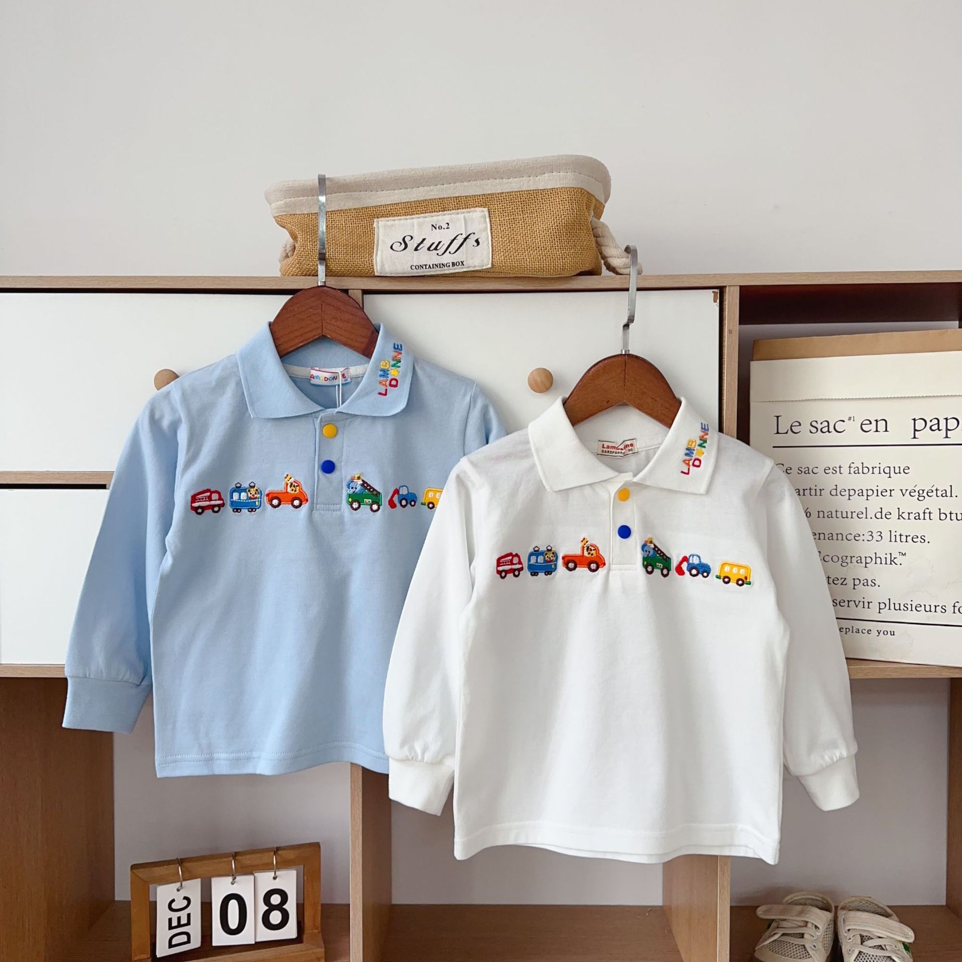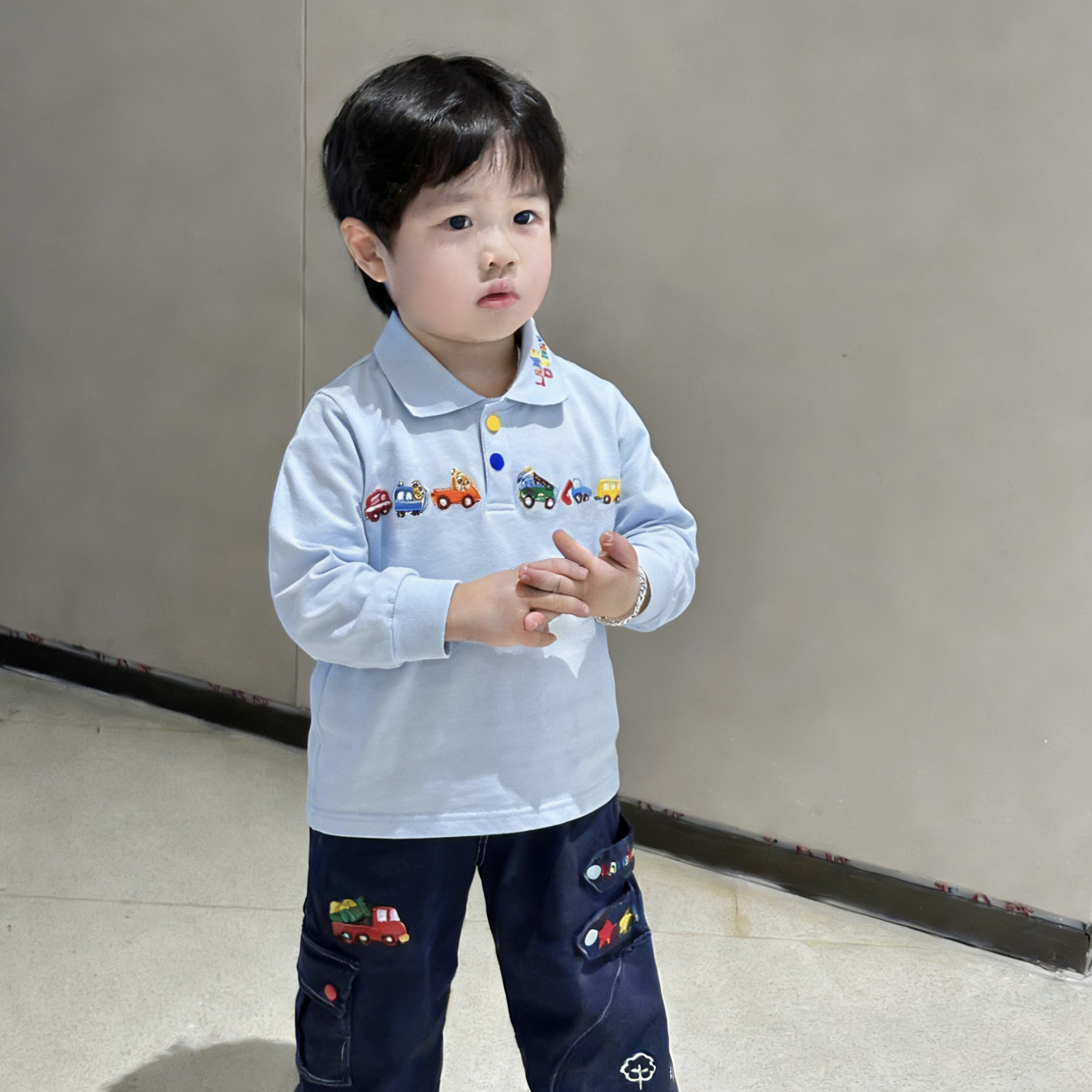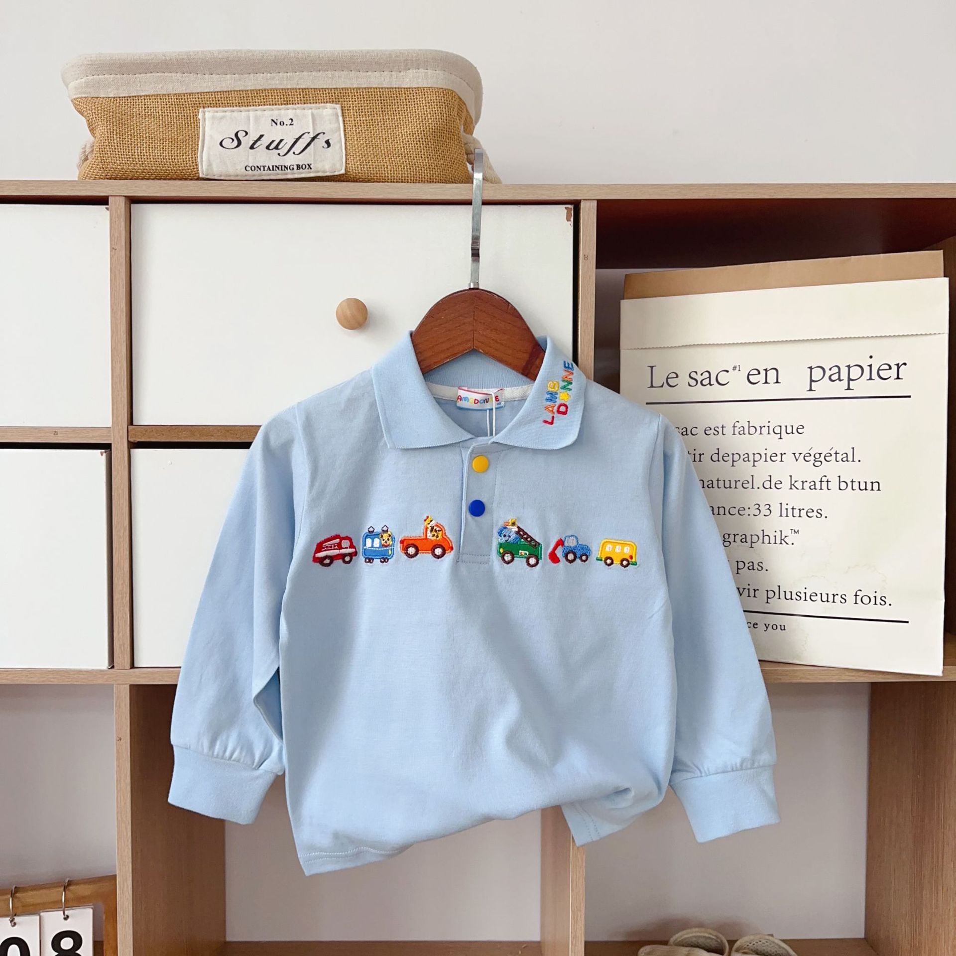 • 1837 자동차 자수 폴로 칼라 긴팔 블루