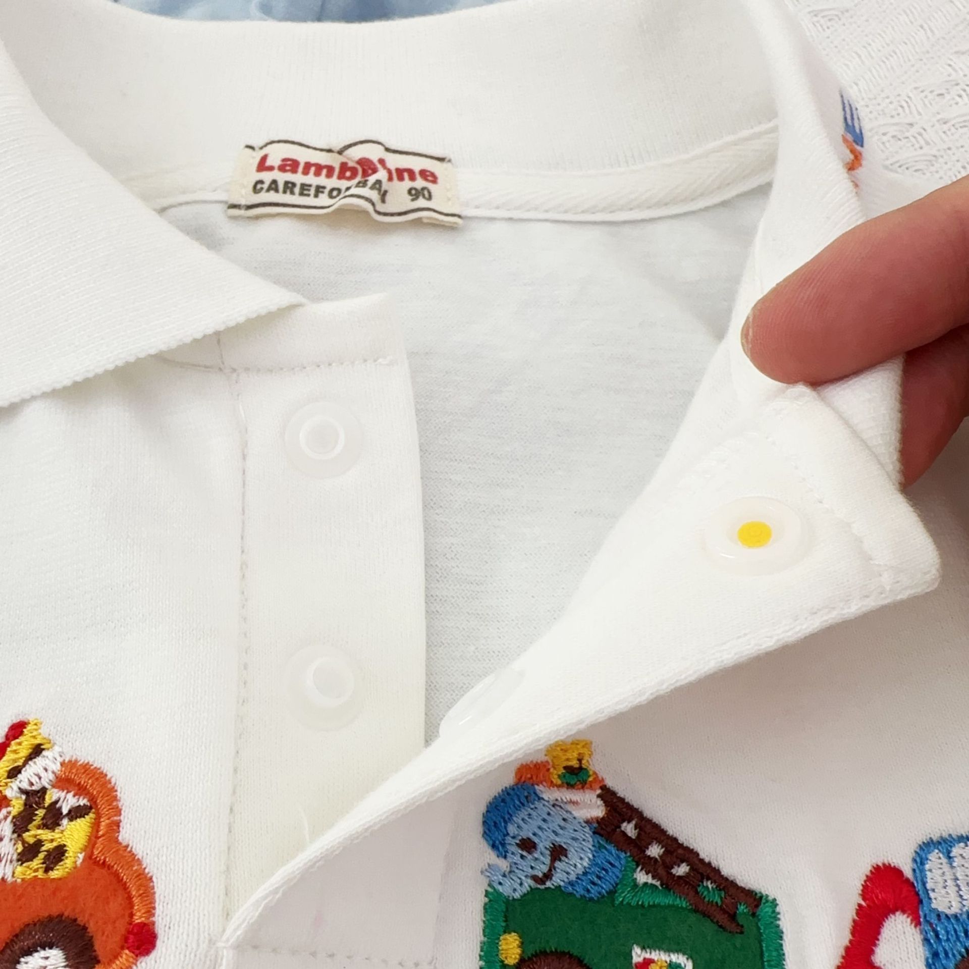 • 1673 자동차 자수 폴로 칼라 반팔 화이트