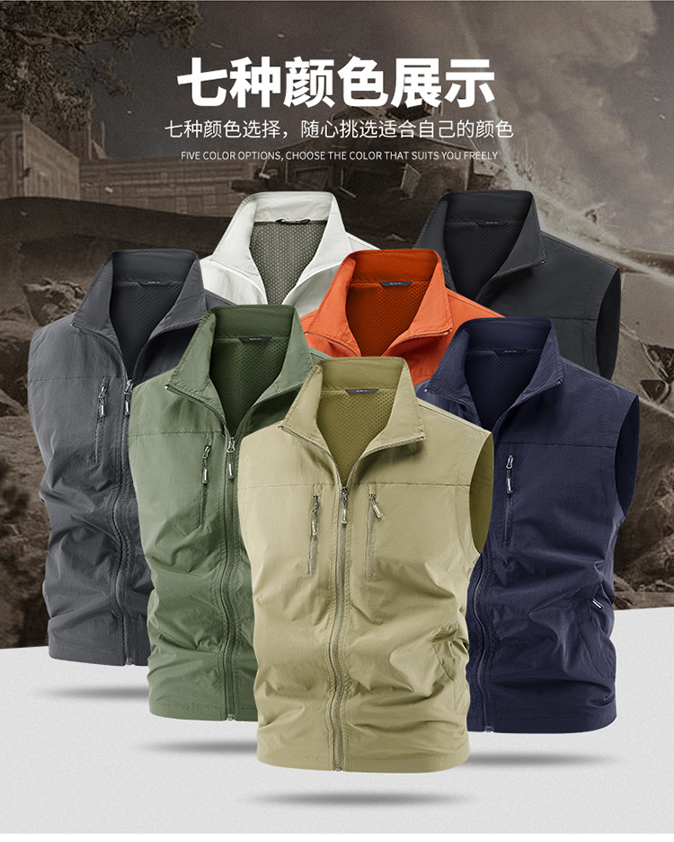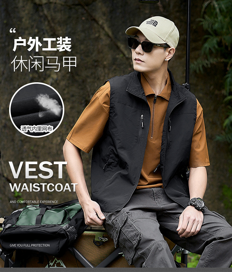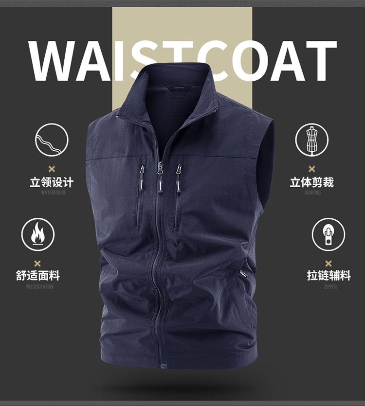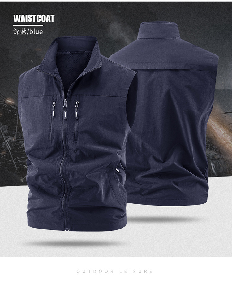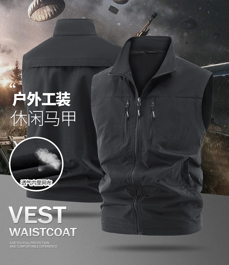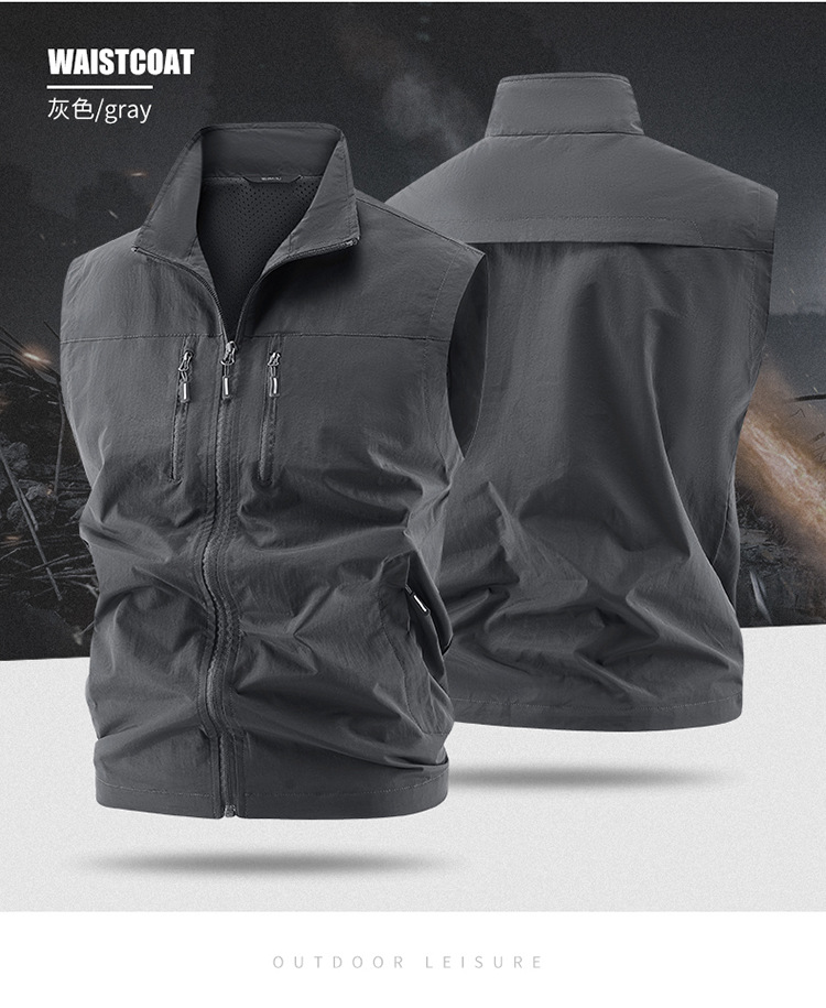 국경 간 새로운 캐주얼 조끼 남성 느슨한 조끼 야외 지퍼 멀티 포켓 코트 봄, 가을 양복 조끼 대형 스포츠스토어 가기