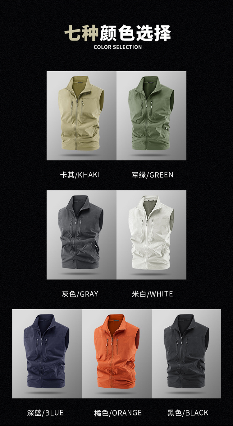 국경 간 새로운 캐주얼 조끼 남성 느슨한 조끼 야외 지퍼 멀티 포켓 코트 봄, 가을 양복 조끼 대형 스포츠