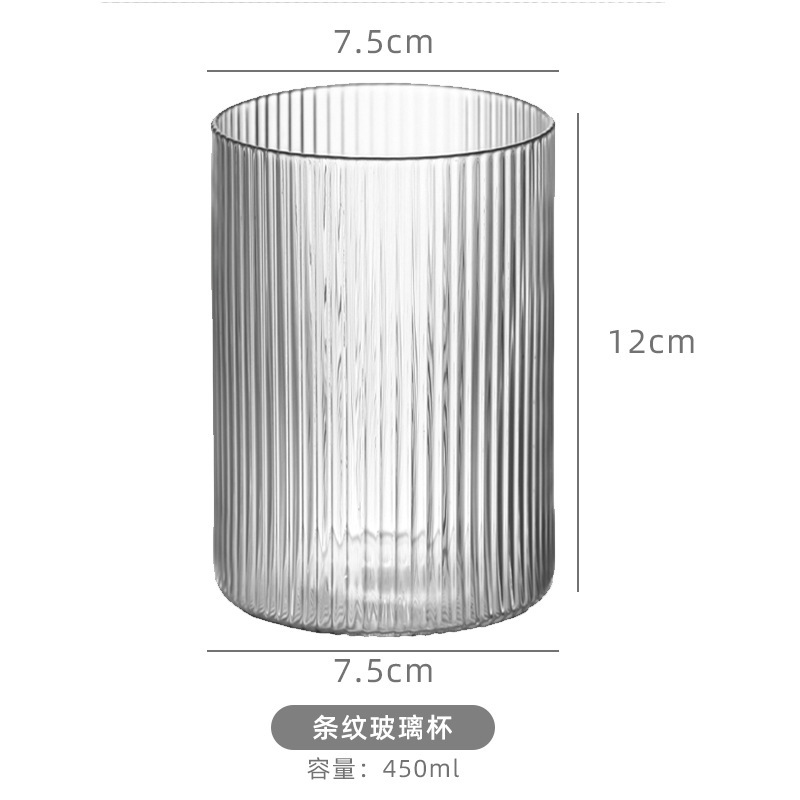 고붕규산 유리 수직 패턴 컵 가정용 투명 유리 주스 컵 간단한 줄무늬 단일 레이어 컵 커피 우유 컵