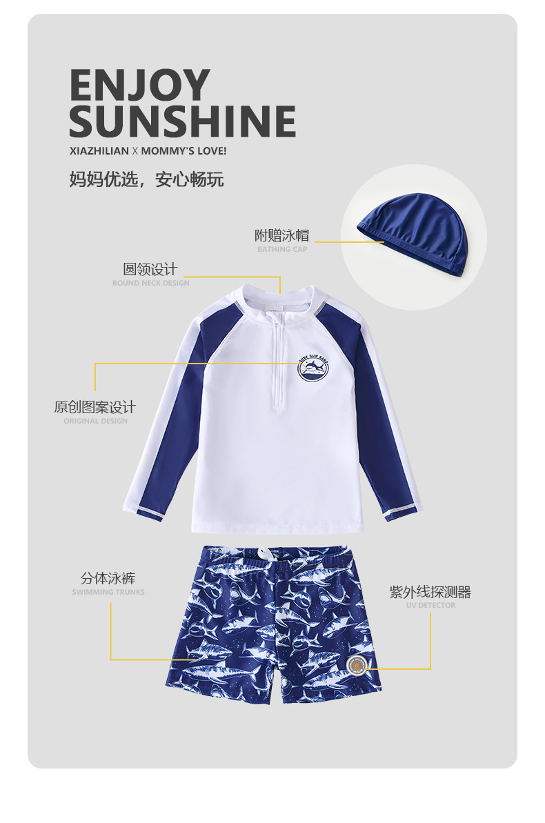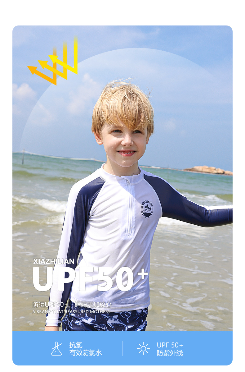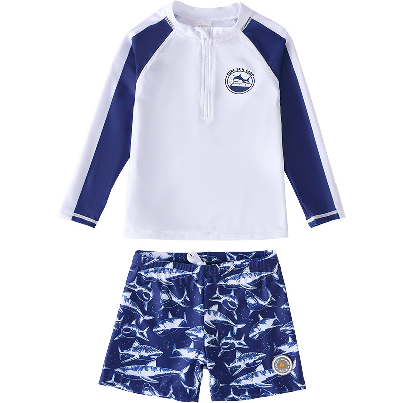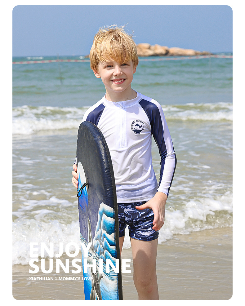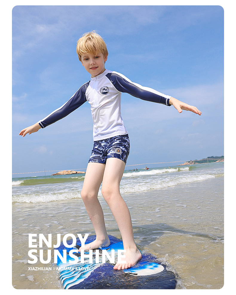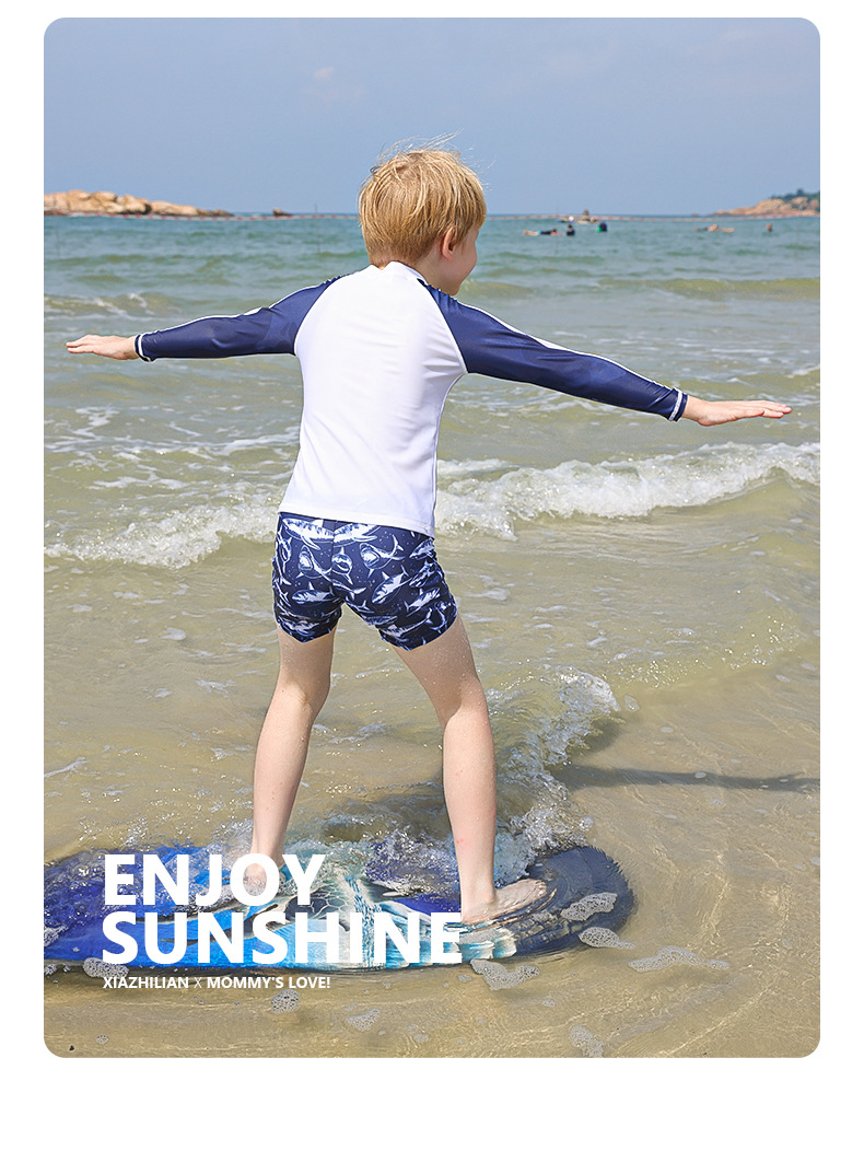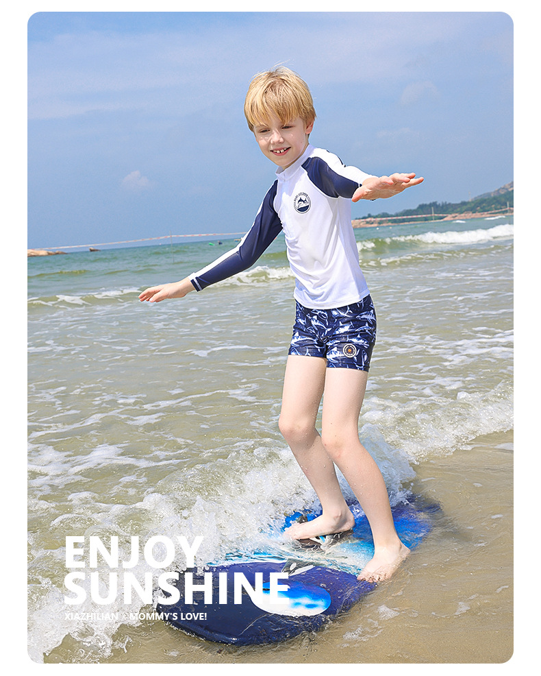 韩国儿童中小童男童宝宝分体长袖防晒速干沙滩冲浪服上衣裤子潮
