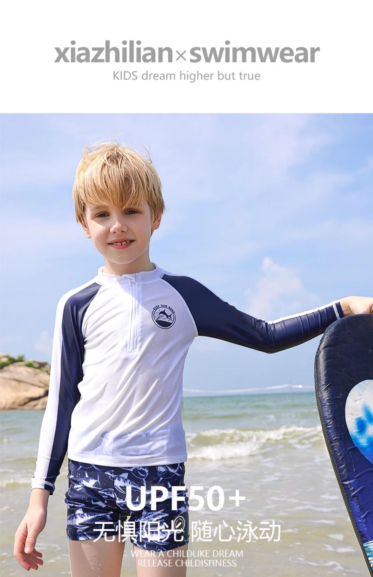 한국 어린이 중소 어린이 소년 아기 분할 긴 소매 태양 보호 빠른 건조 해변 서퍼 최고 트렌디 바지스토어 가기