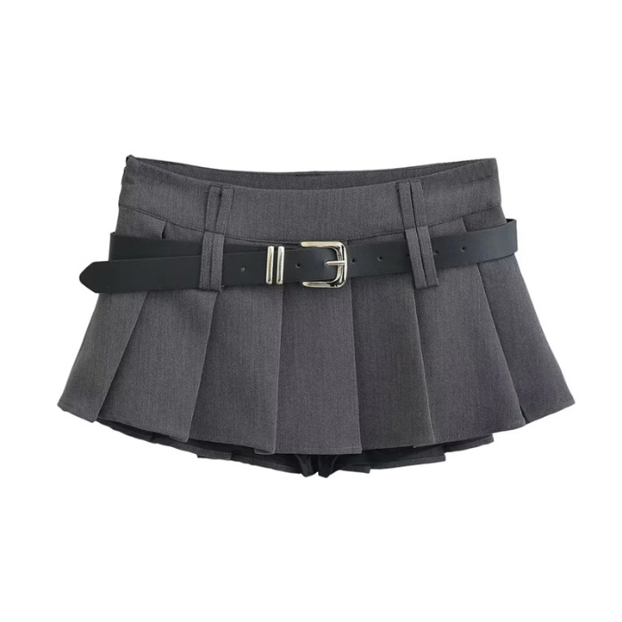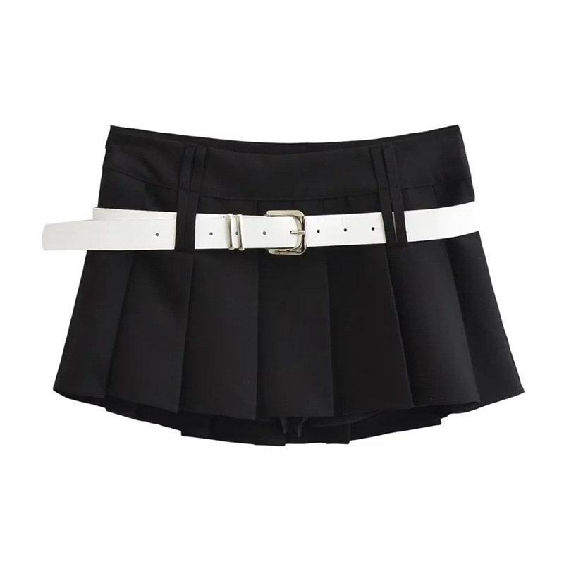 핫걸 숏스커트, 퓨어 러스티, 하이웨이스트, 패셔너블하고 활용도 높은 벨트 플리츠 스커트, 슬리밍 A라인 스커트, 미니 숏스커트