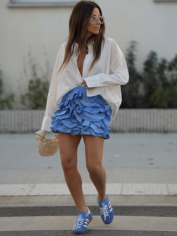 패션 디자인 솔리드 컬러 프릴 미니 스커트 짧은 치마 여성 2025 여름 유럽과 미국의 국경 간 새로운 도매스토어 가기