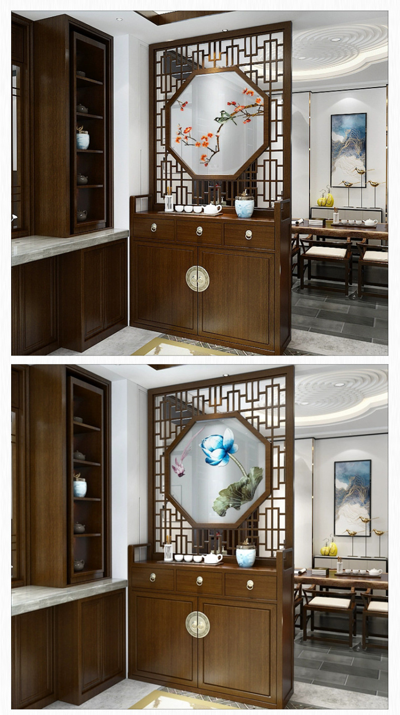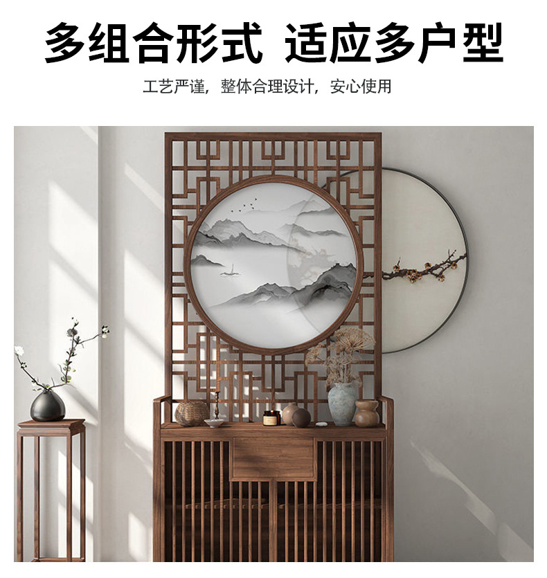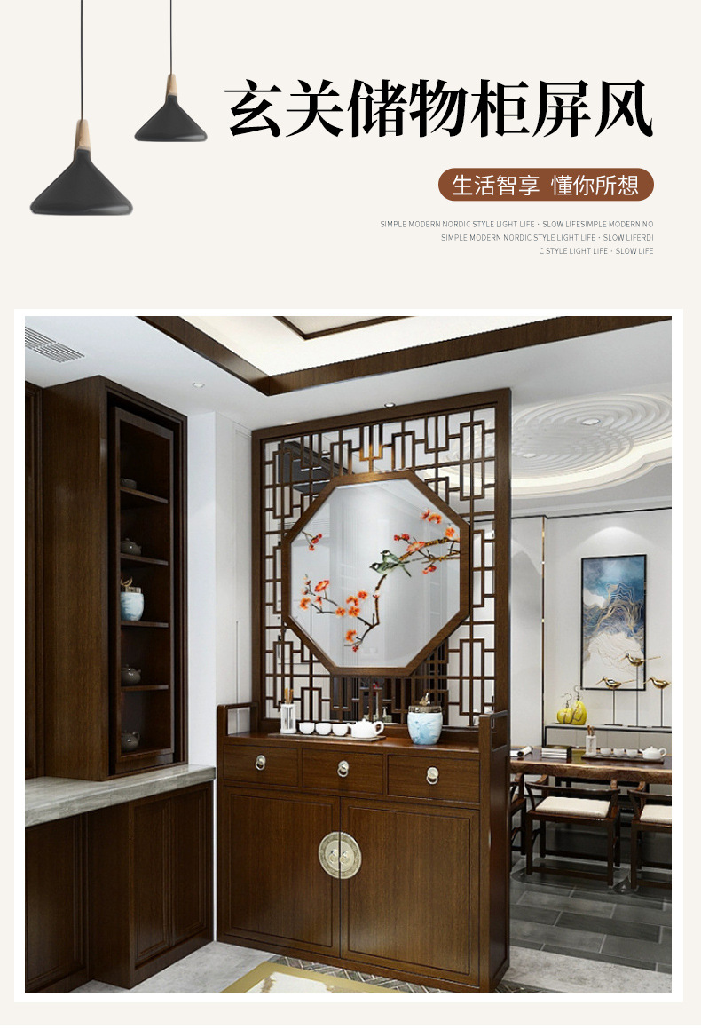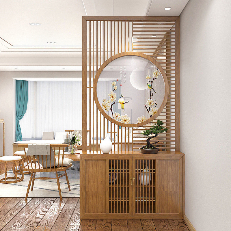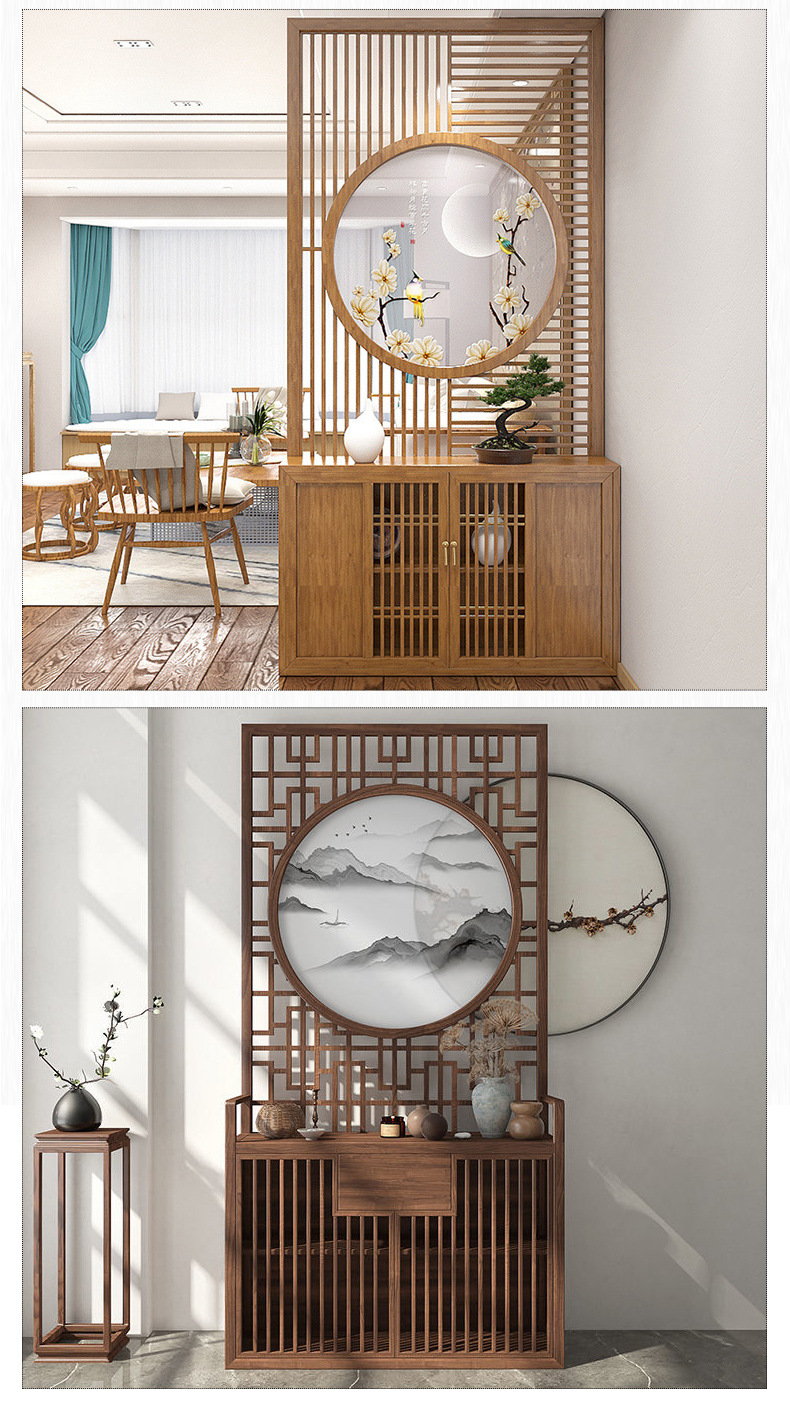 새로운 중국 스타일의 솔리드 우드 입구 사물함 스크린 파티션 거실 현대 미술 장식 할로우 그릴이 문을 덮습니다.스토어 가기