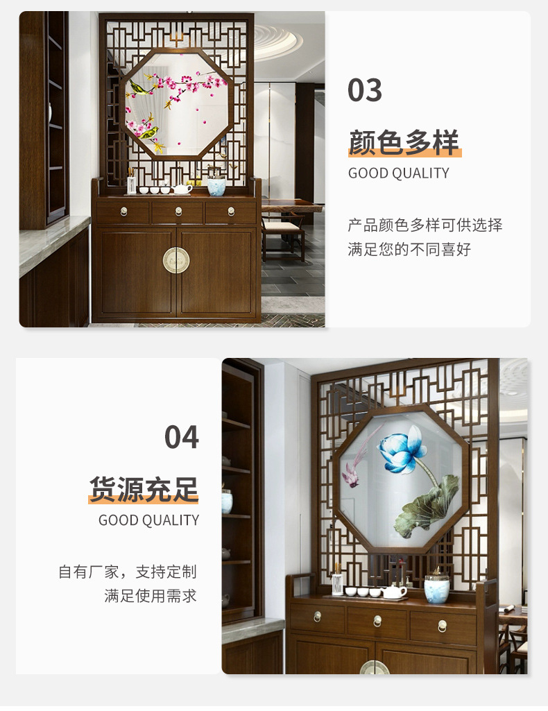 새로운 중국 스타일의 솔리드 우드 입구 사물함 스크린 파티션 거실 현대 미술 장식 할로우 그릴이 문을 덮습니다.
