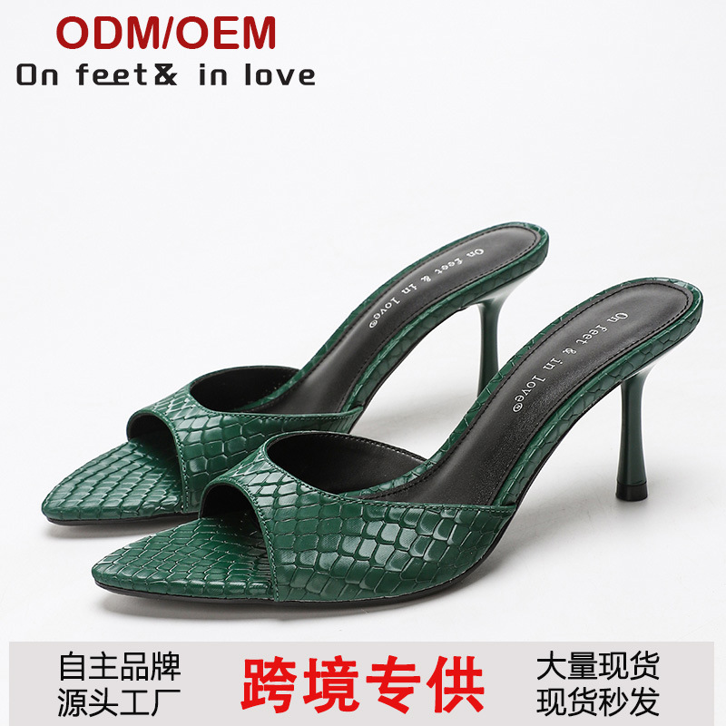 On feet&in love2025 여름 포인티드 토 스틸레토 하이힐 섹시 패션 샌들 여성용 하프 샌들스토어 가기