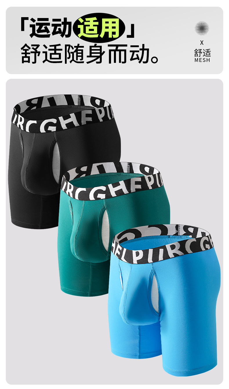 남성용 긴 복서 팬티, 남성용 3부 길이의 스포츠 속옷, 남성용 더블 레이어 분리형 U 볼록 주머니 남성용 반바지스토어 가기