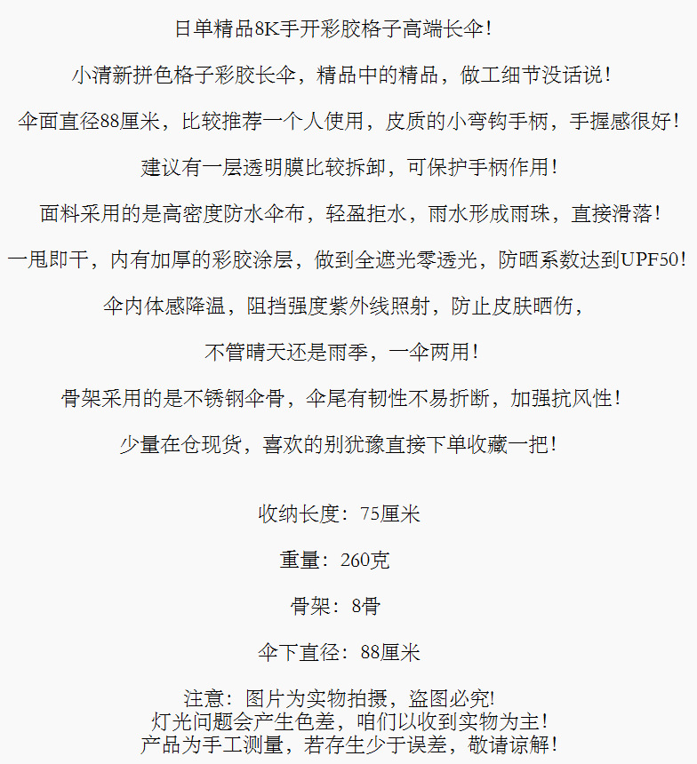 매일 목록! 전체 음영 색상 접착제 줄무늬 반자동 긴 손잡이 우산 햇빛과 비 이중 사용 선 스크린 우산 학생 및 성인스토어 가기