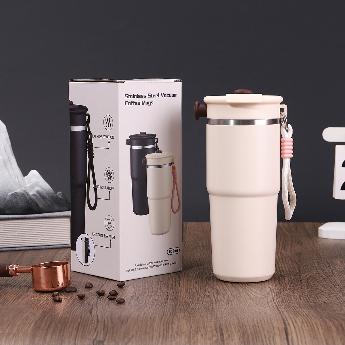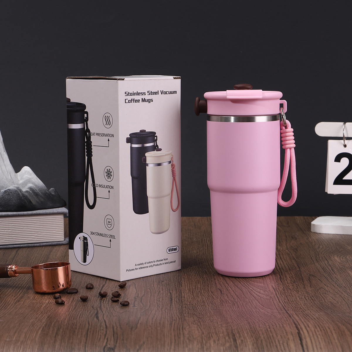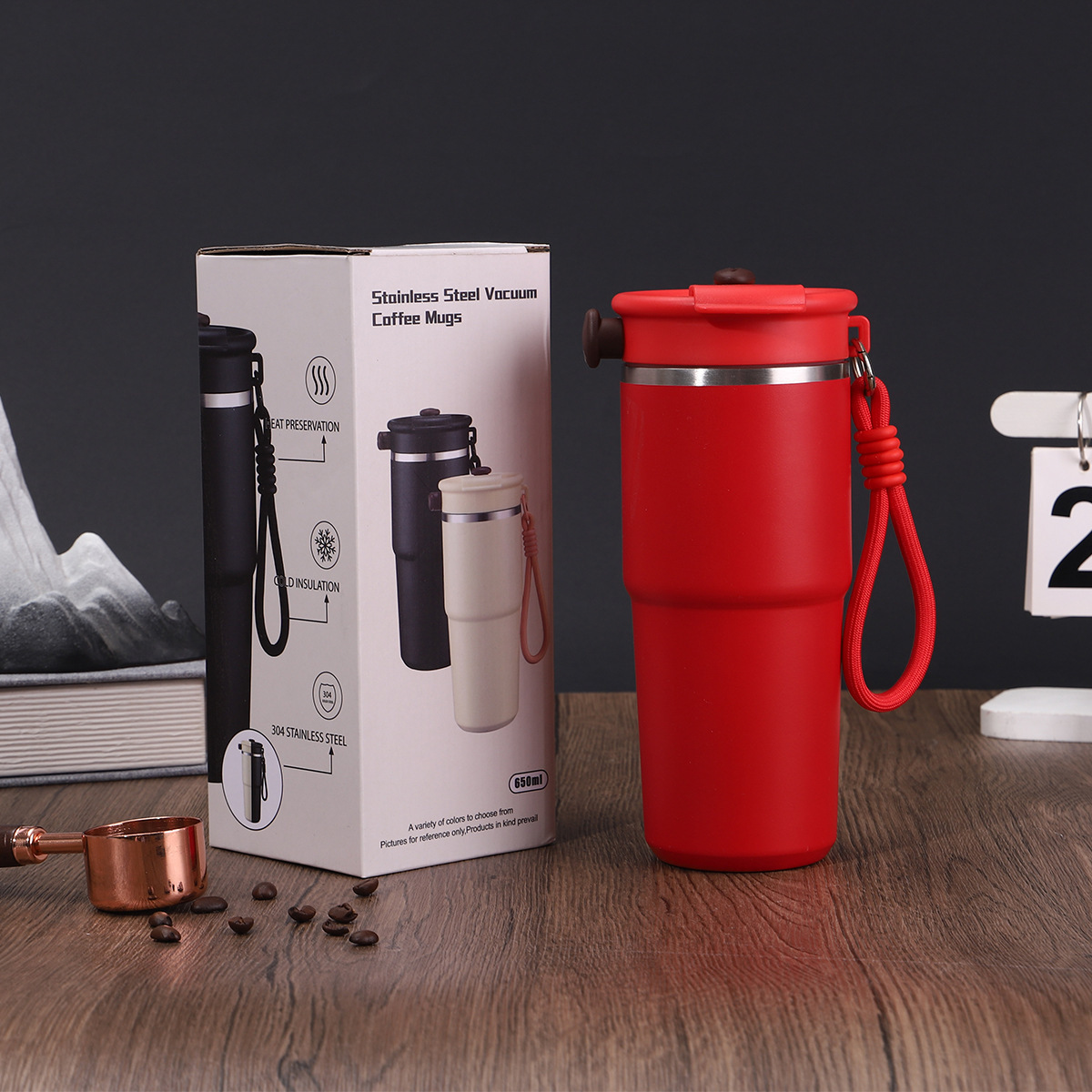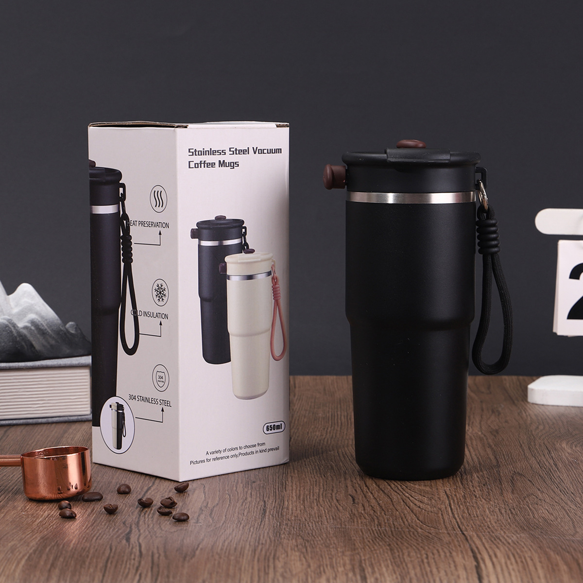 새로운 6 세대 커피 컵 304 스테인레스 스틸 더블 레이어 진공 보온병 컵 밀짚 운반 로프 1 커버 3 음료 동반 컵