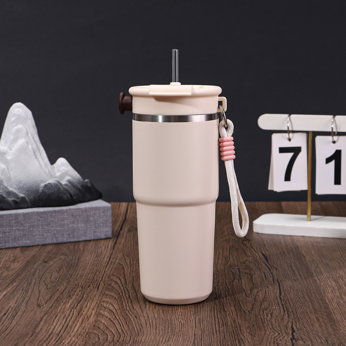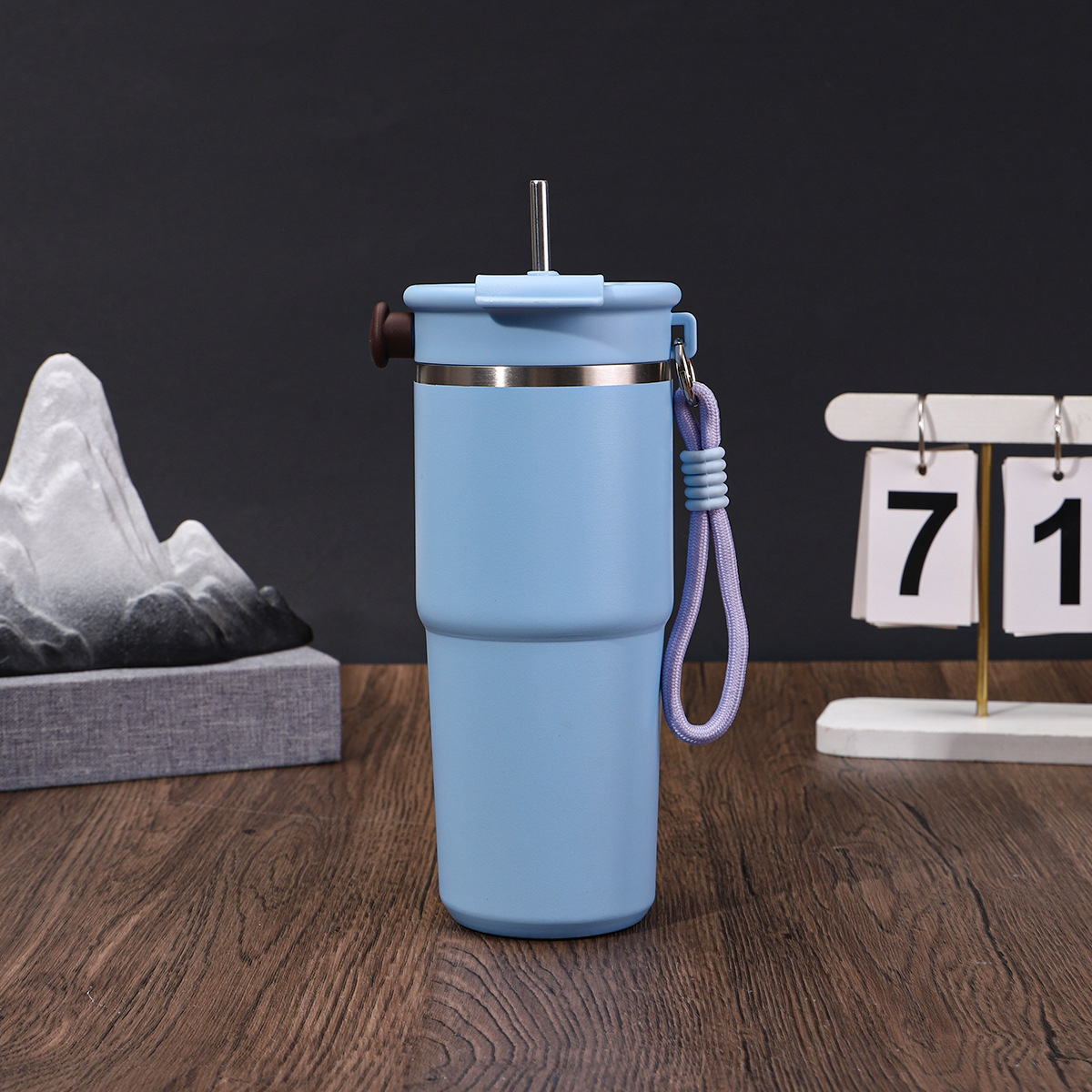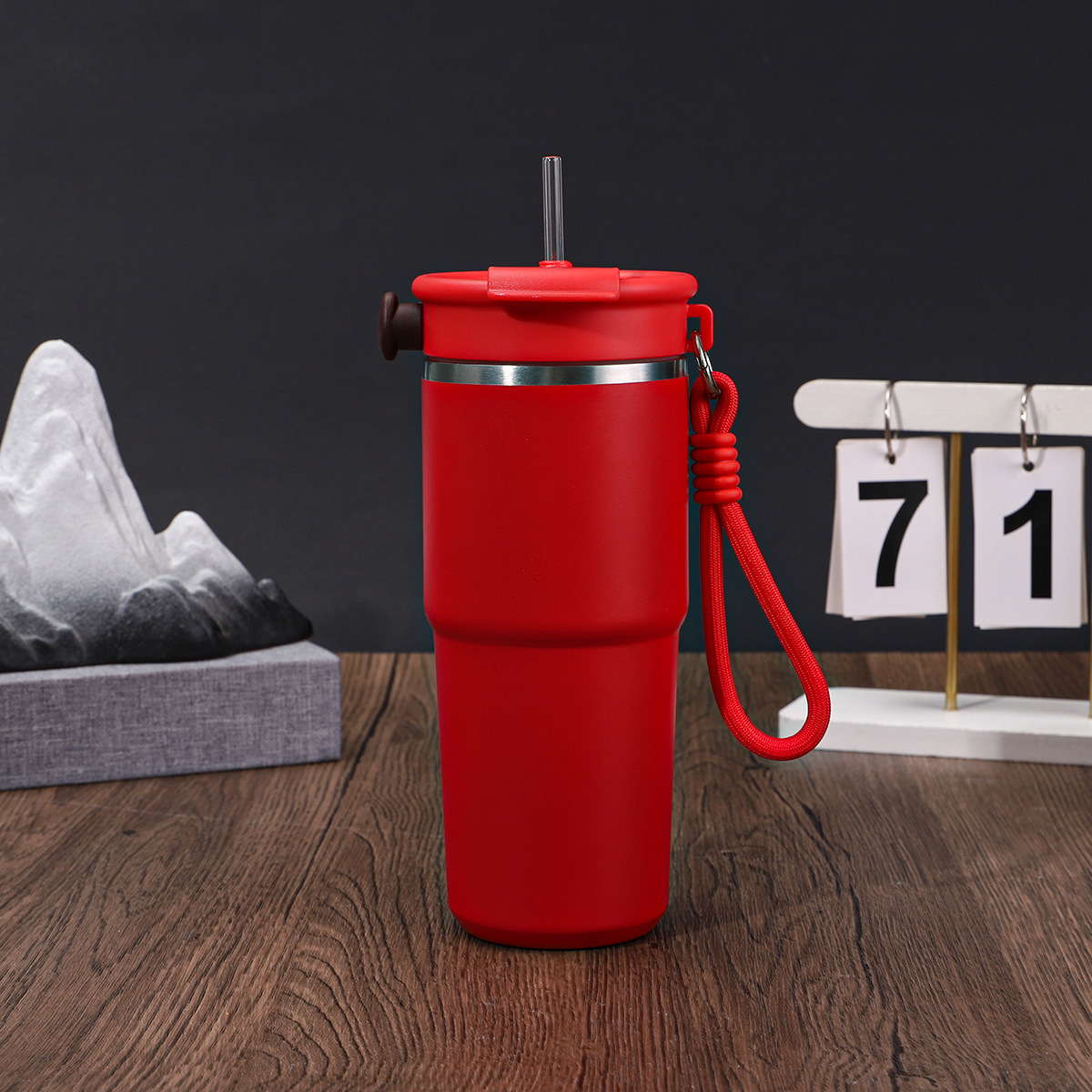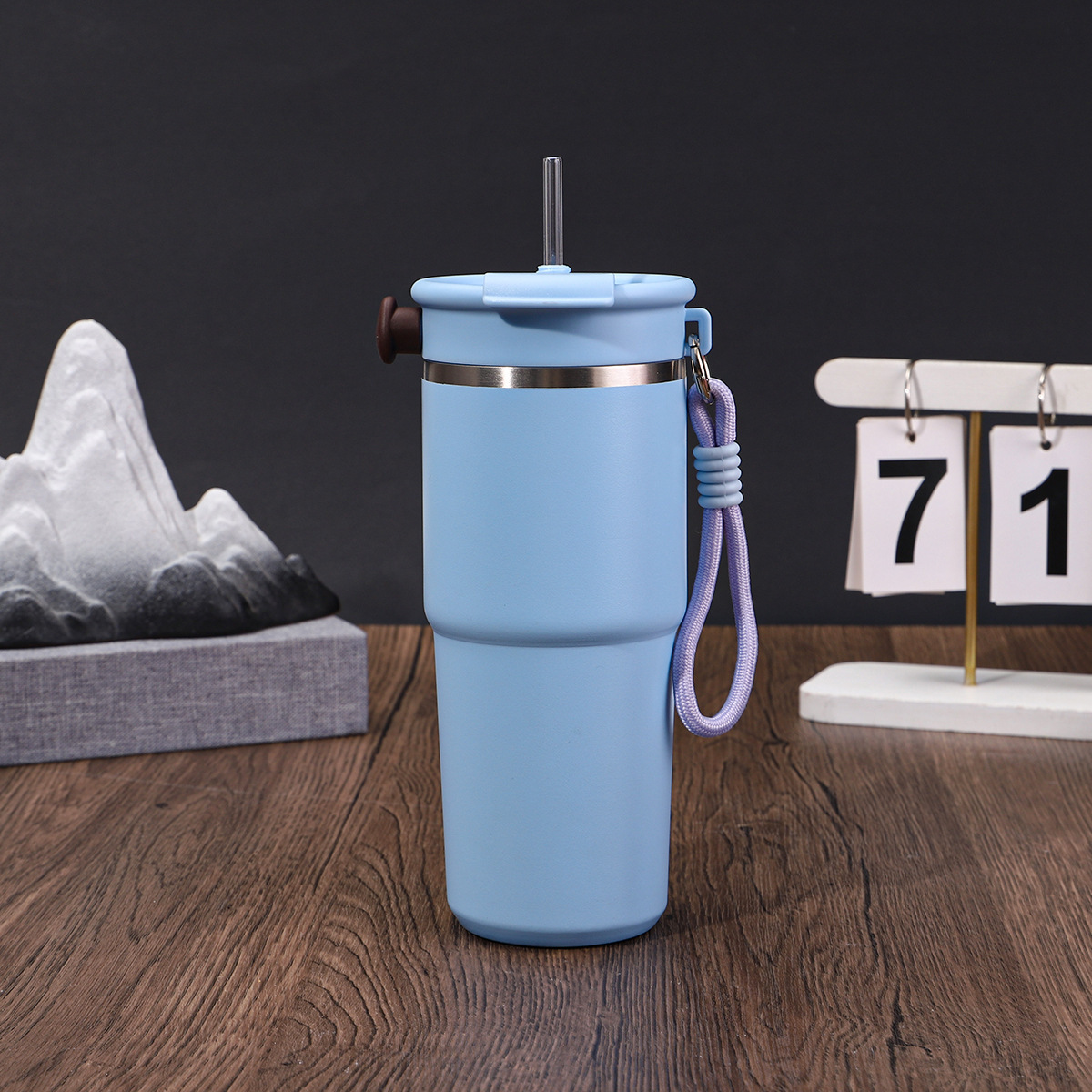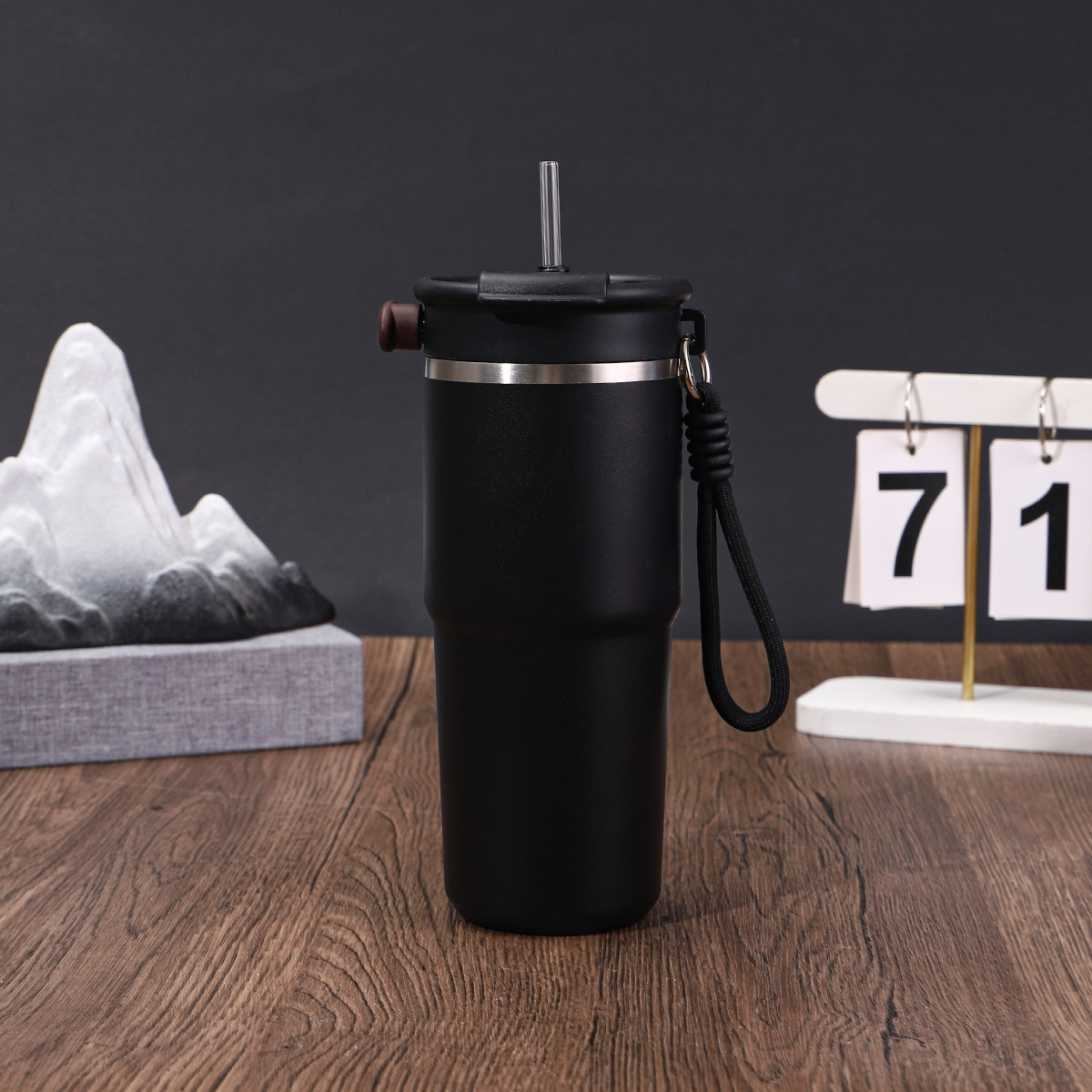 새로운 6 세대 커피 컵 304 스테인레스 스틸 더블 레이어 진공 보온병 컵 밀짚 운반 로프 1 커버 3 음료 동반 컵