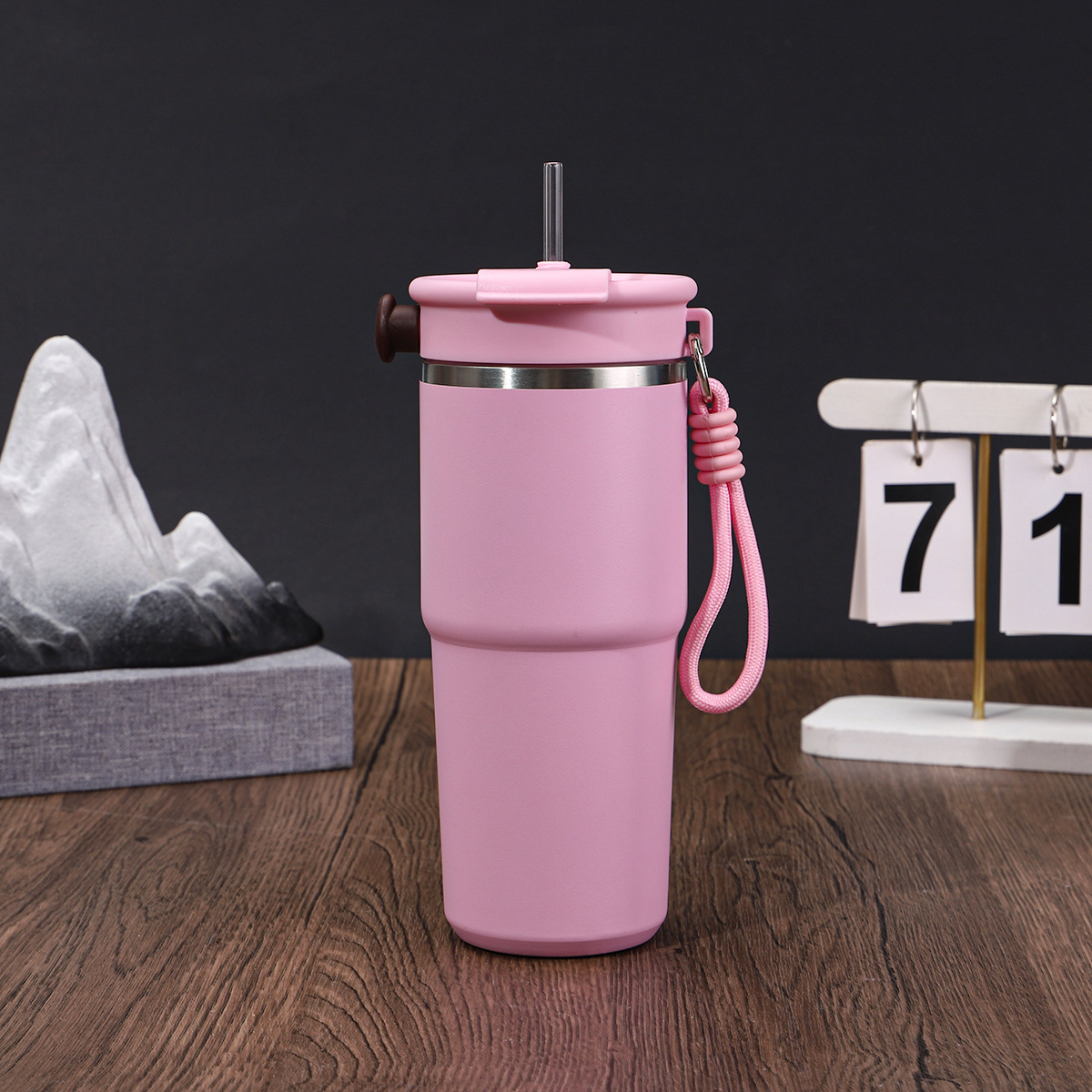 새로운 6 세대 커피 컵 304 스테인레스 스틸 더블 레이어 진공 보온병 컵 밀짚 운반 로프 1 커버 3 음료 동반 컵스토어 가기