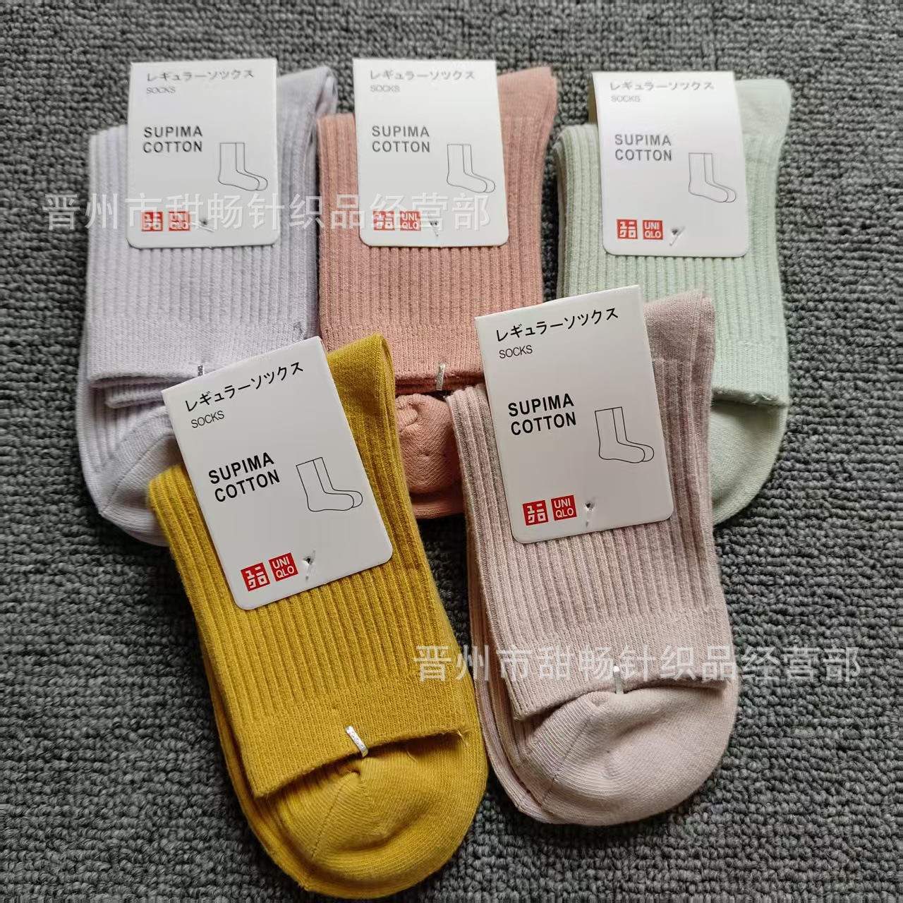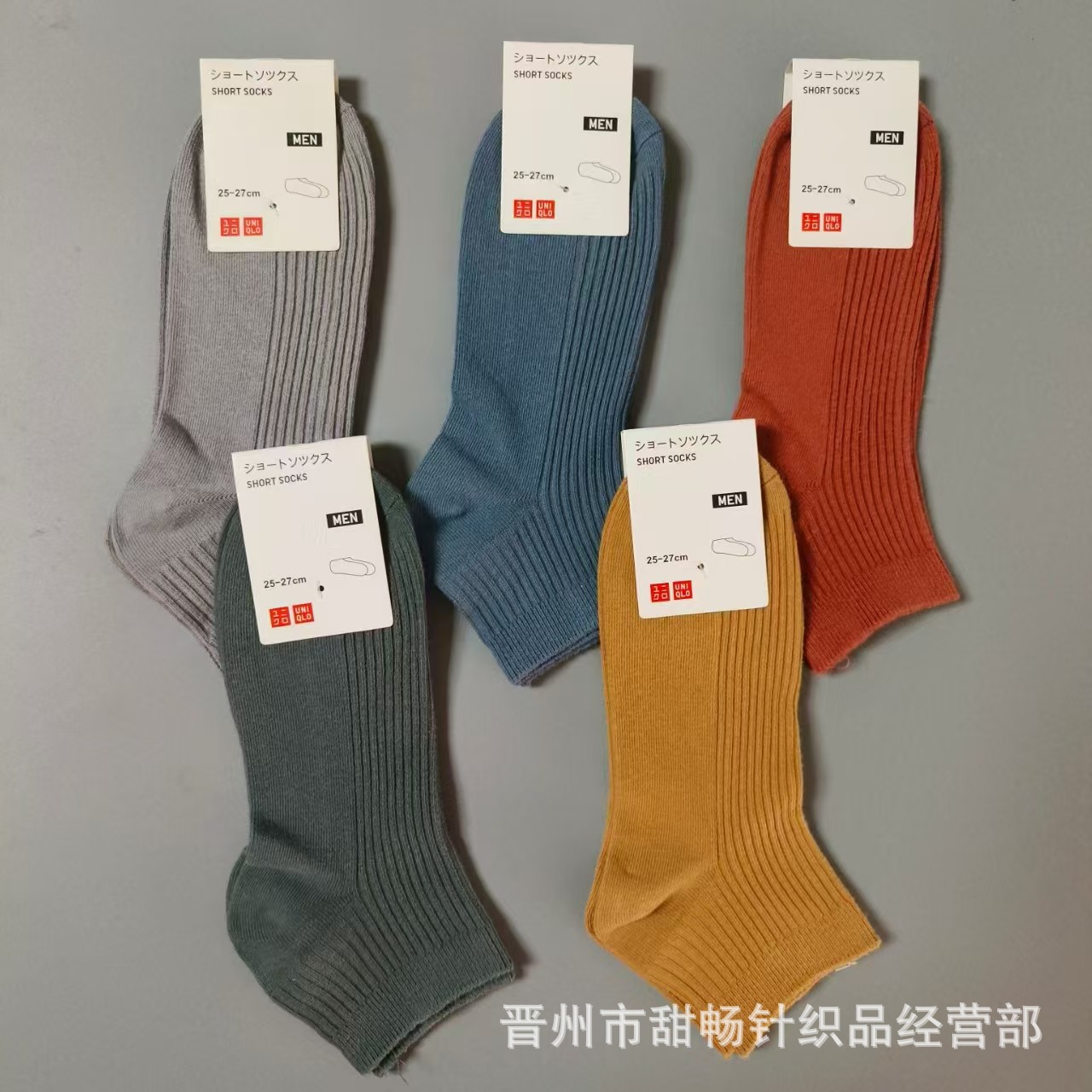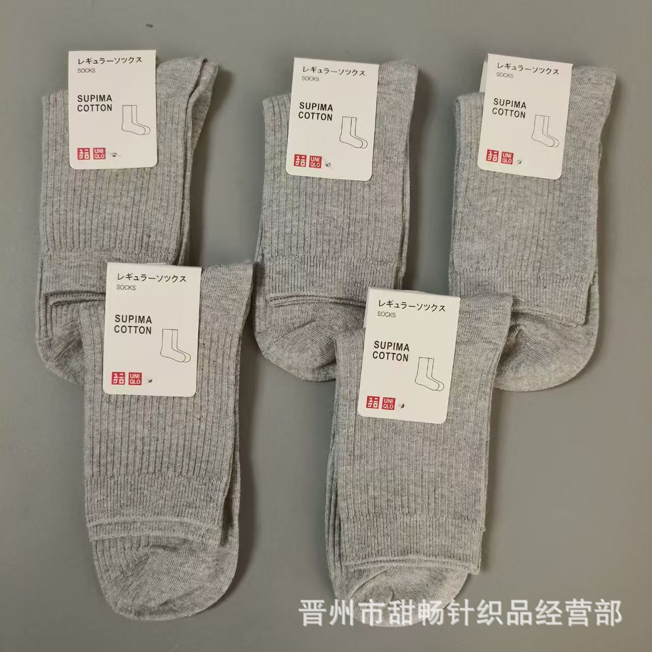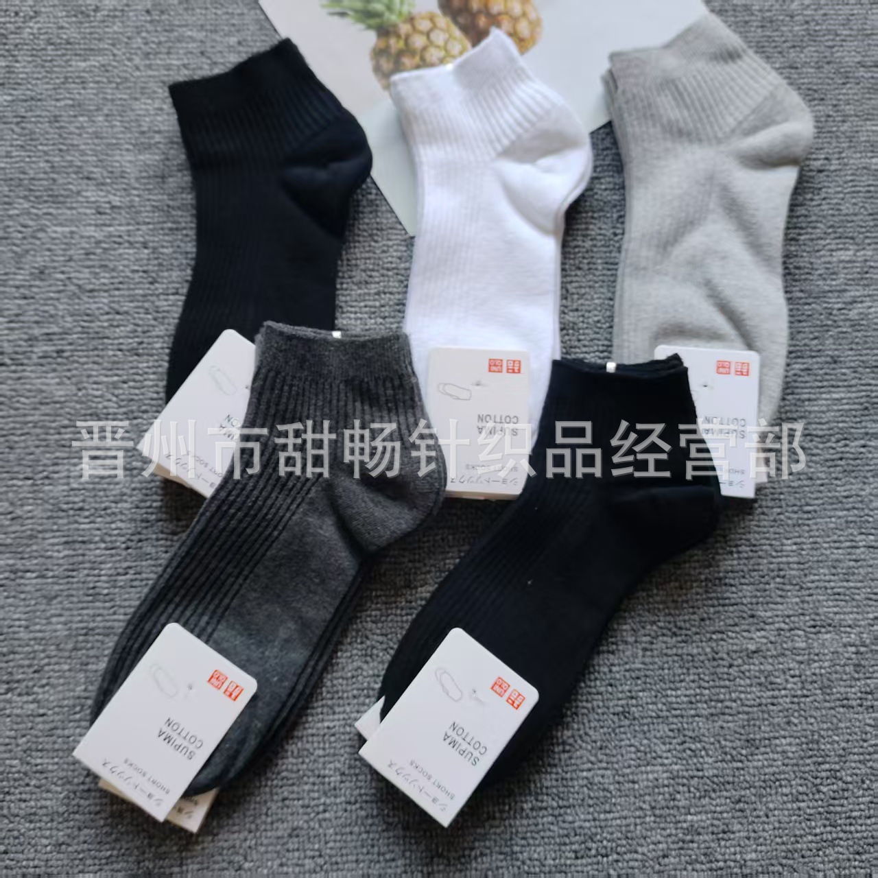 대외 무역 우우가 흑백 회색 이중 바늘 단색 단순 통기성 중간 튜브 짧은 면 양말 세로 줄무늬 캐주얼 면 양말