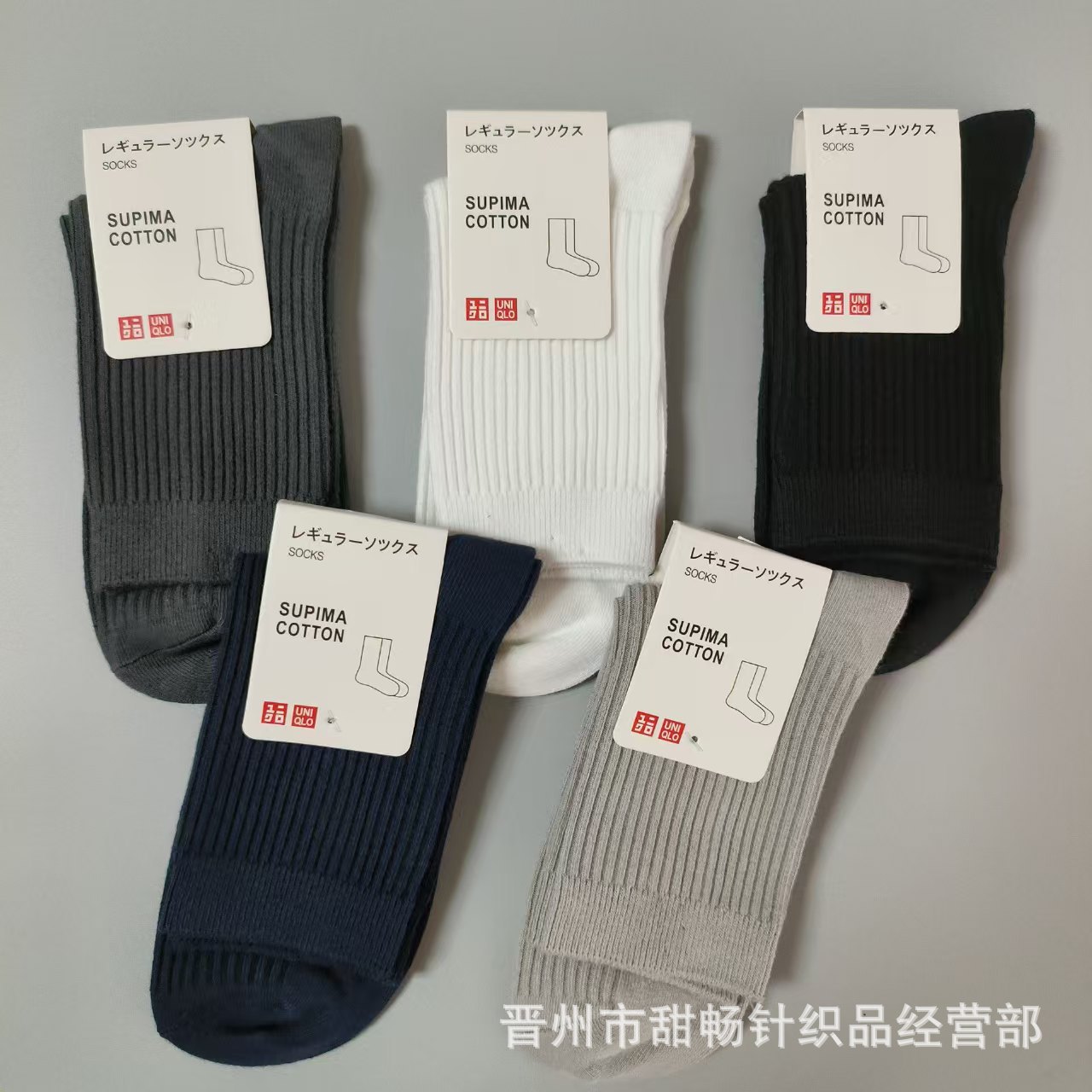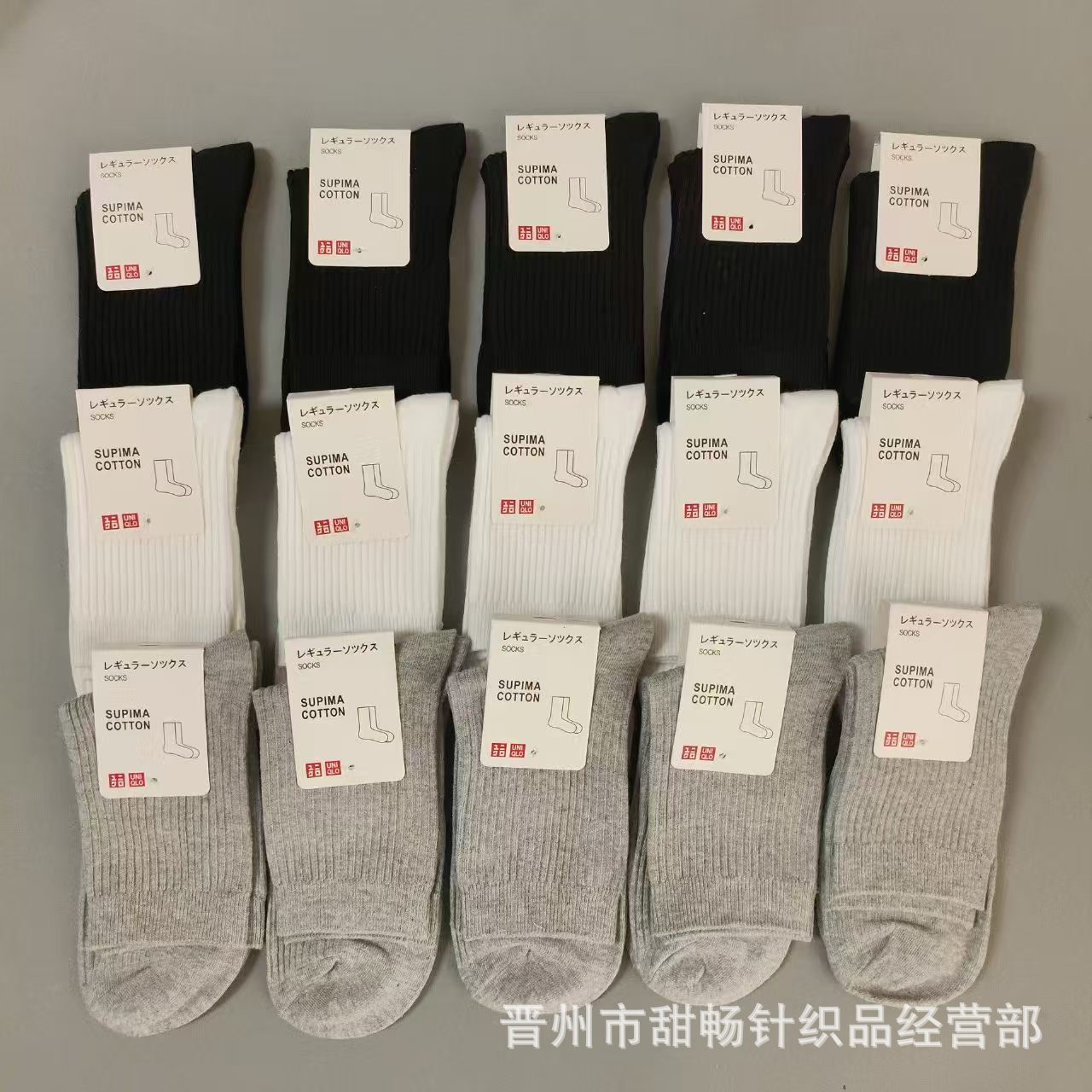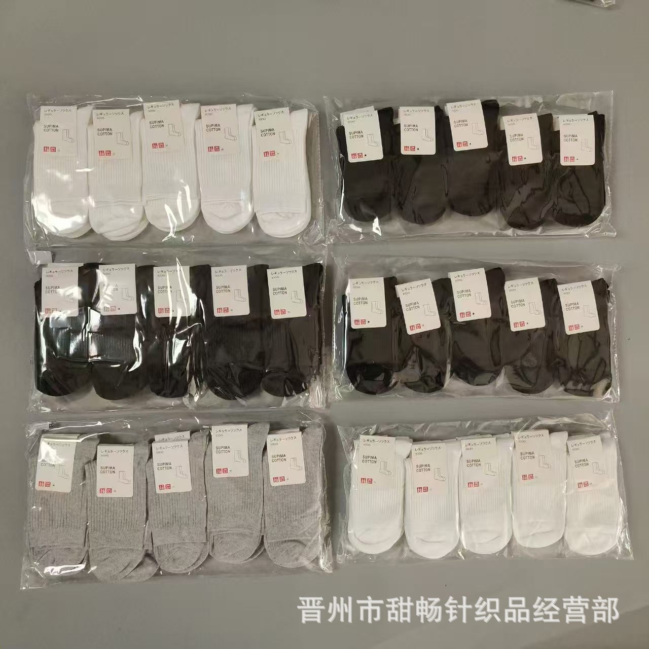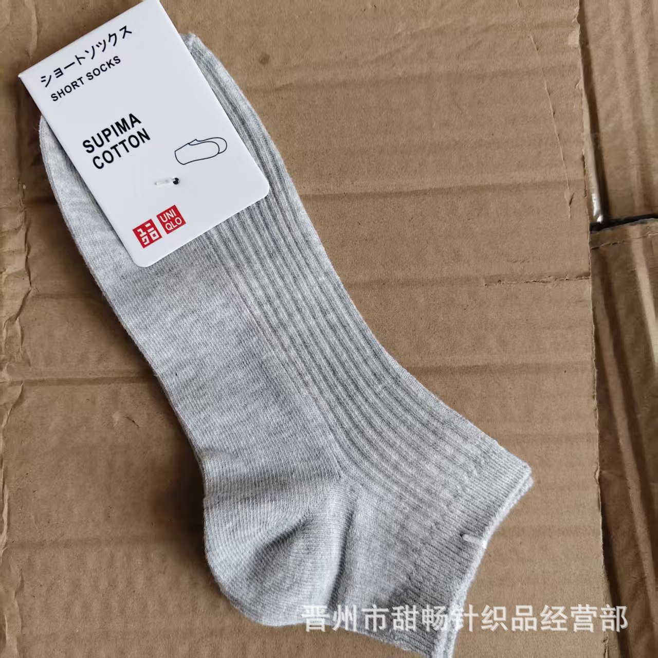 대외 무역 우우가 흑백 회색 이중 바늘 단색 단순 통기성 중간 튜브 짧은 면 양말 세로 줄무늬 캐주얼 면 양말스토어 가기