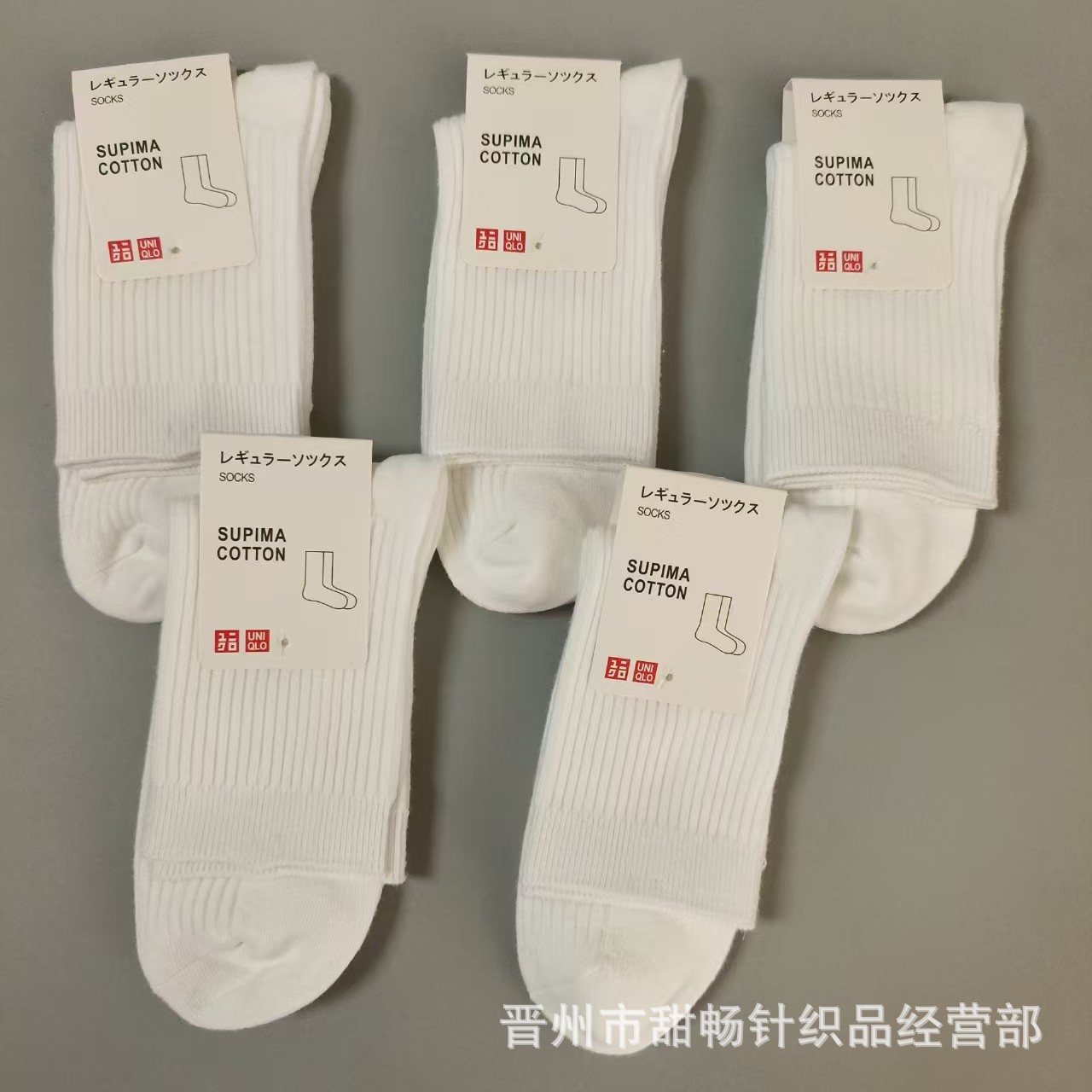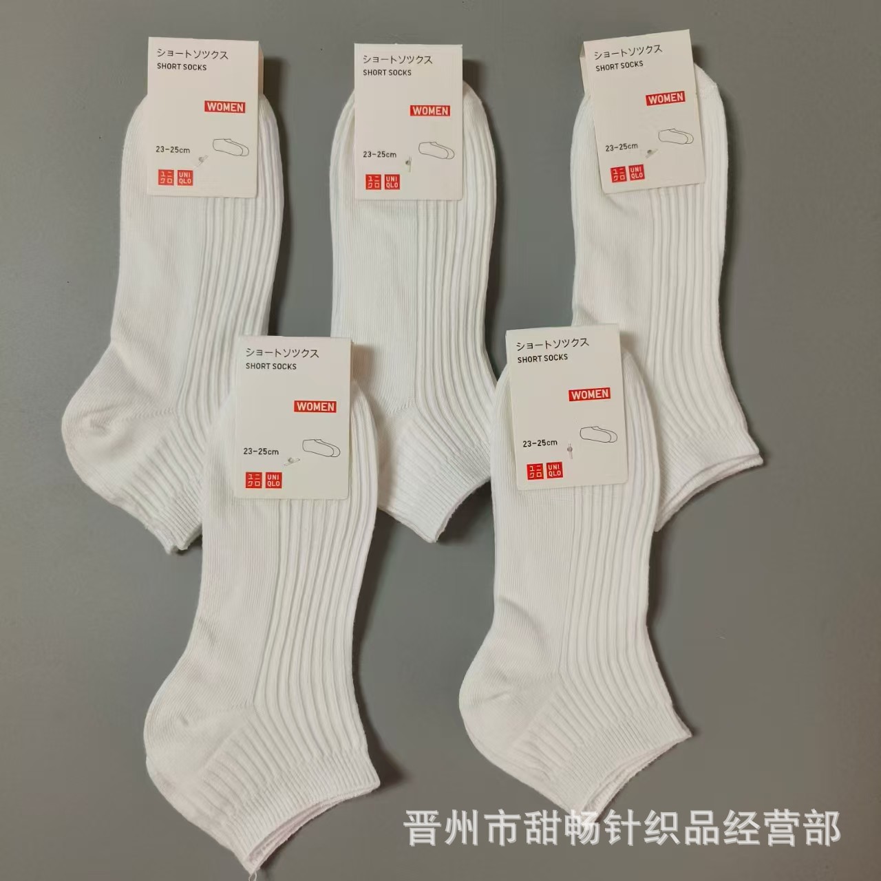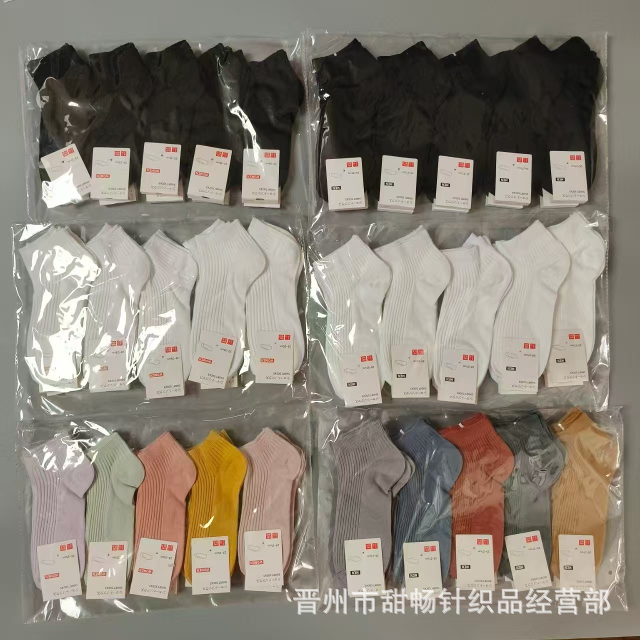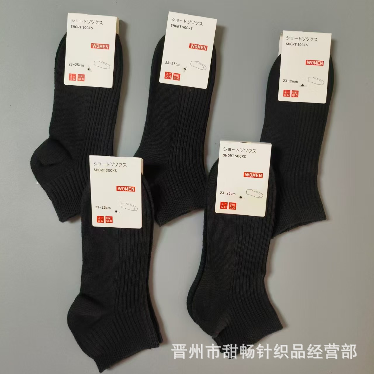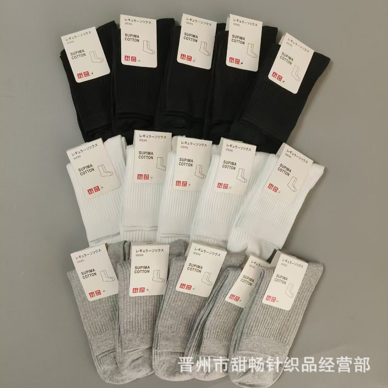 대외 무역 우우가 흑백 회색 이중 바늘 단색 단순 통기성 중간 튜브 짧은 면 양말 세로 줄무늬 캐주얼 면 양말스토어 가기