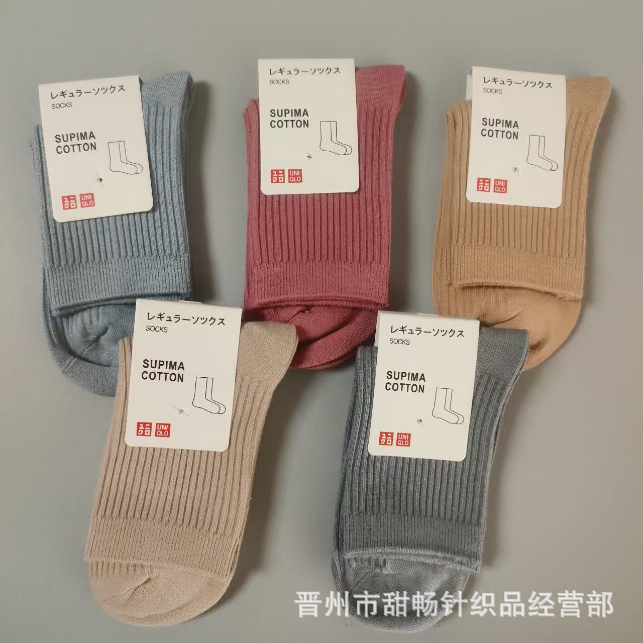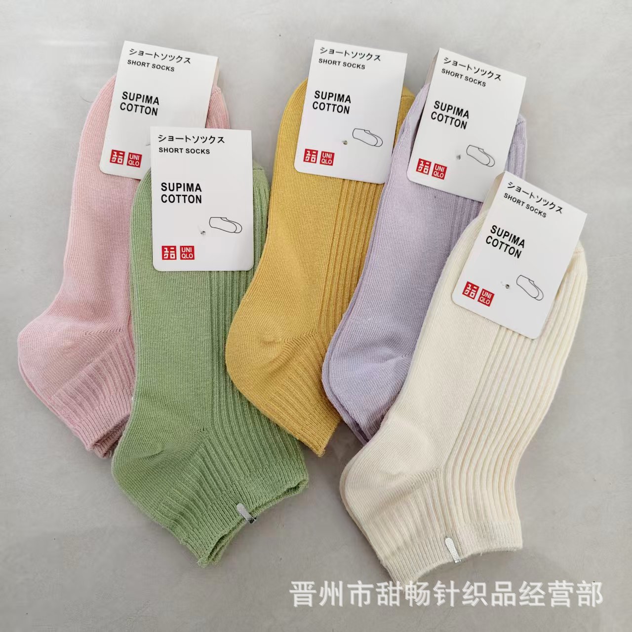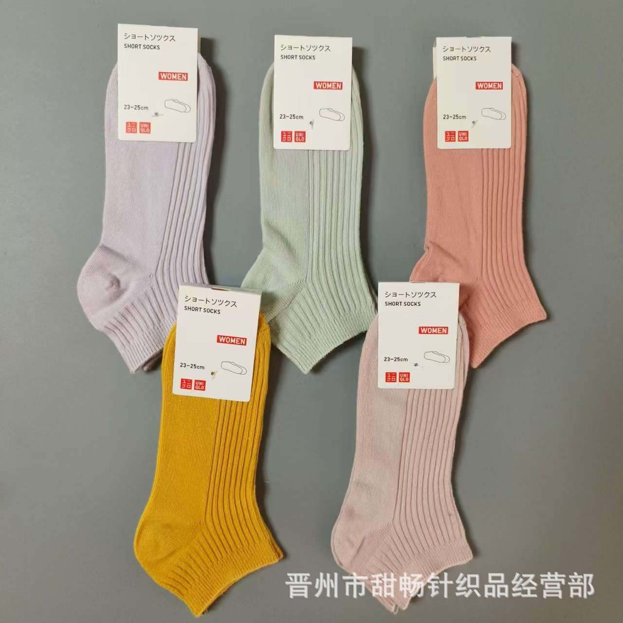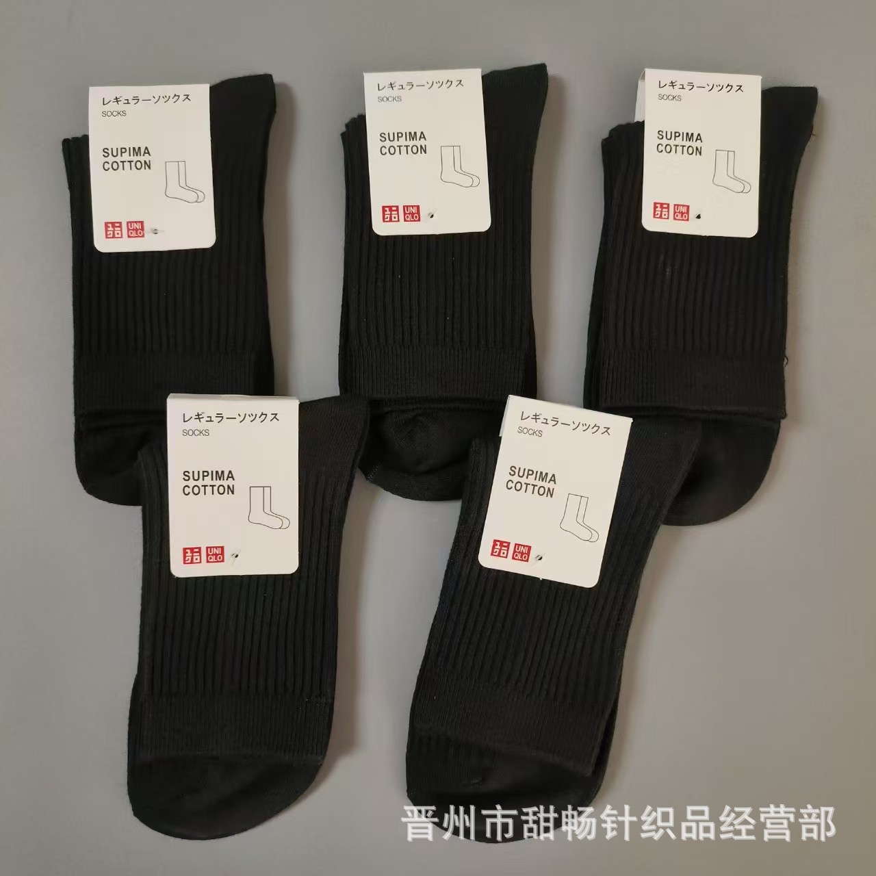 대외 무역 우우가 흑백 회색 이중 바늘 단색 단순 통기성 중간 튜브 짧은 면 양말 세로 줄무늬 캐주얼 면 양말스토어 가기