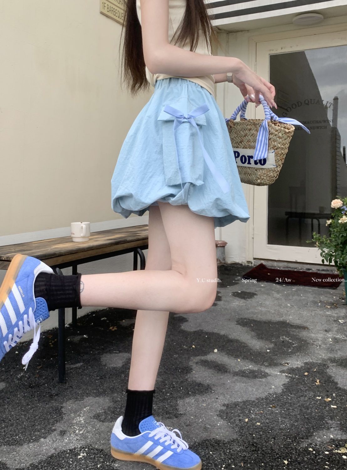 새로운 틈새 디자인 활 꽃 버드 치마 여성 여름 작은 높은 허리 슬림 A 라인 짧은 치마 트렌디스토어 가기