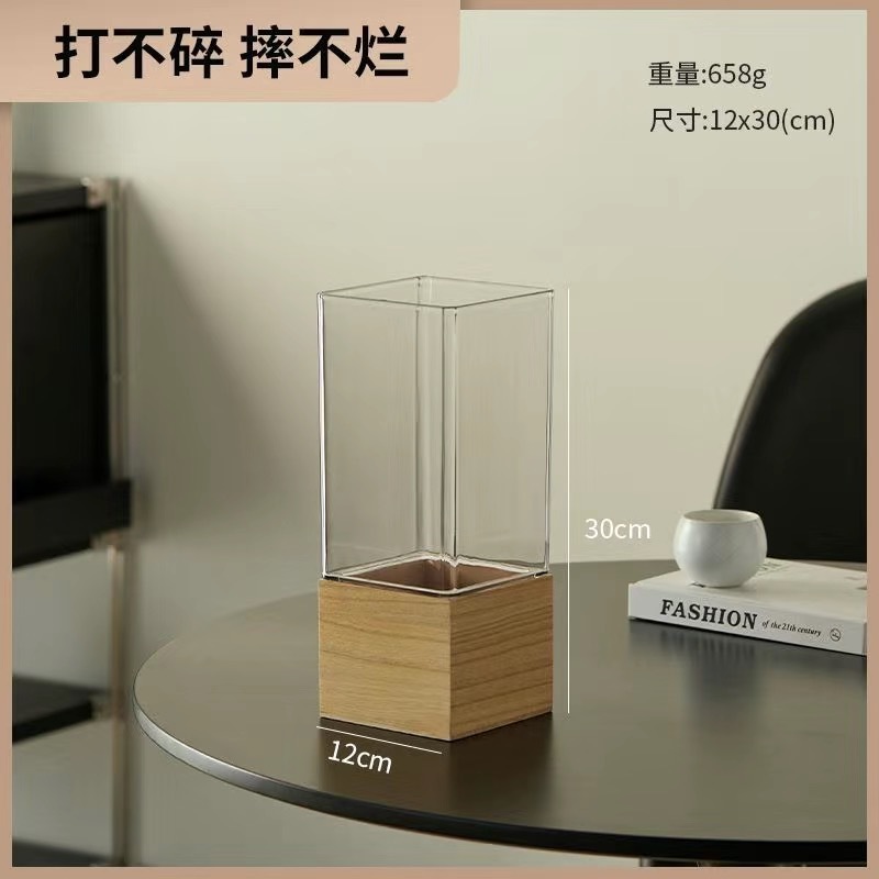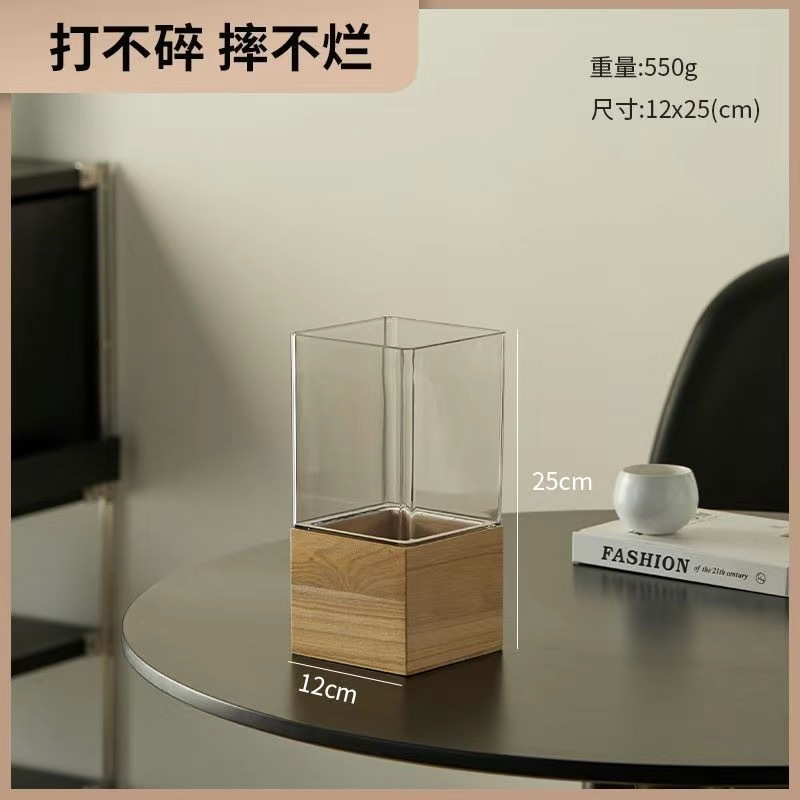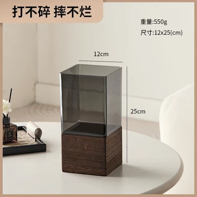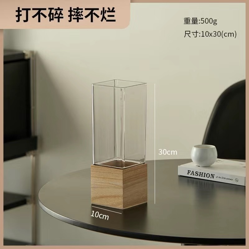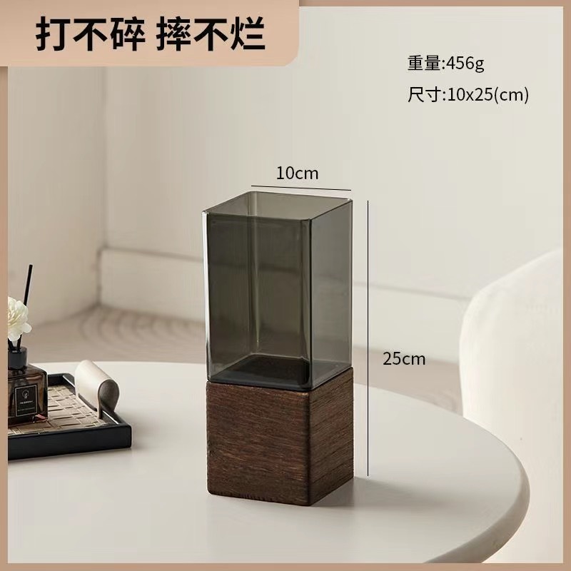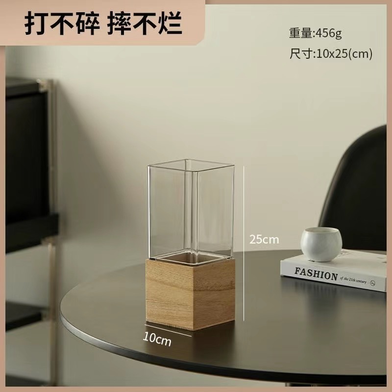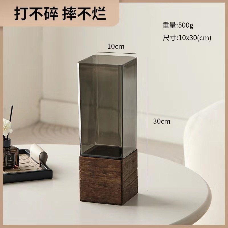 높은 투자율 모방 유리 안티 가을 PET 투명 꽃병 나무 꽃병 두껍게 둥근 사각형 바탕 화면 장식스토어 가기