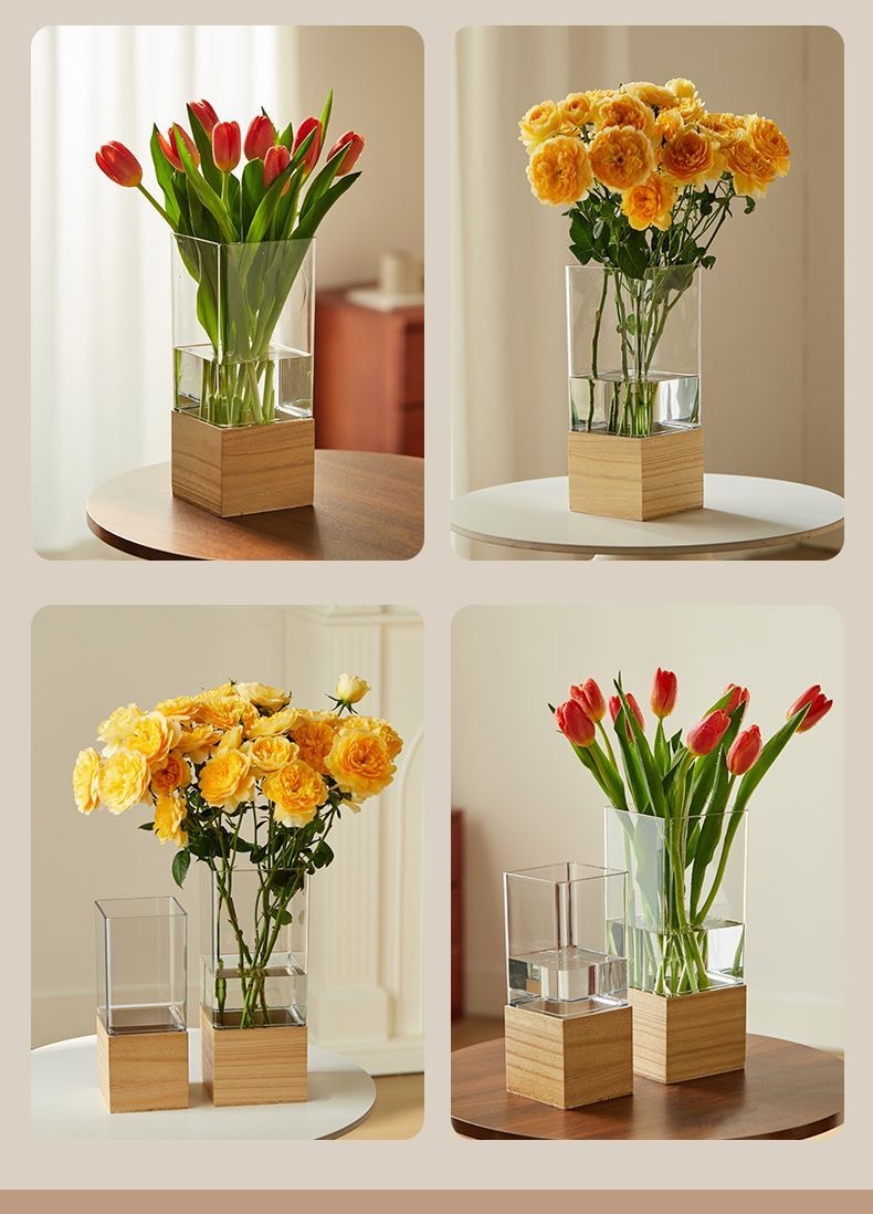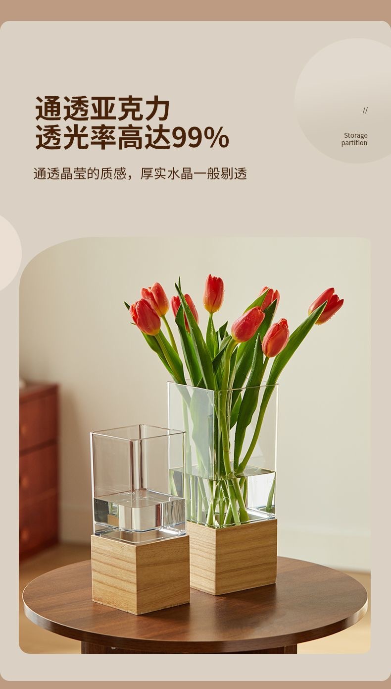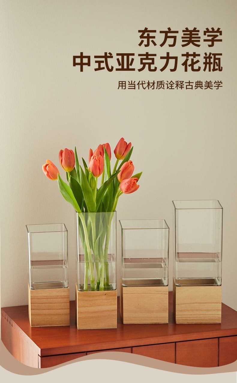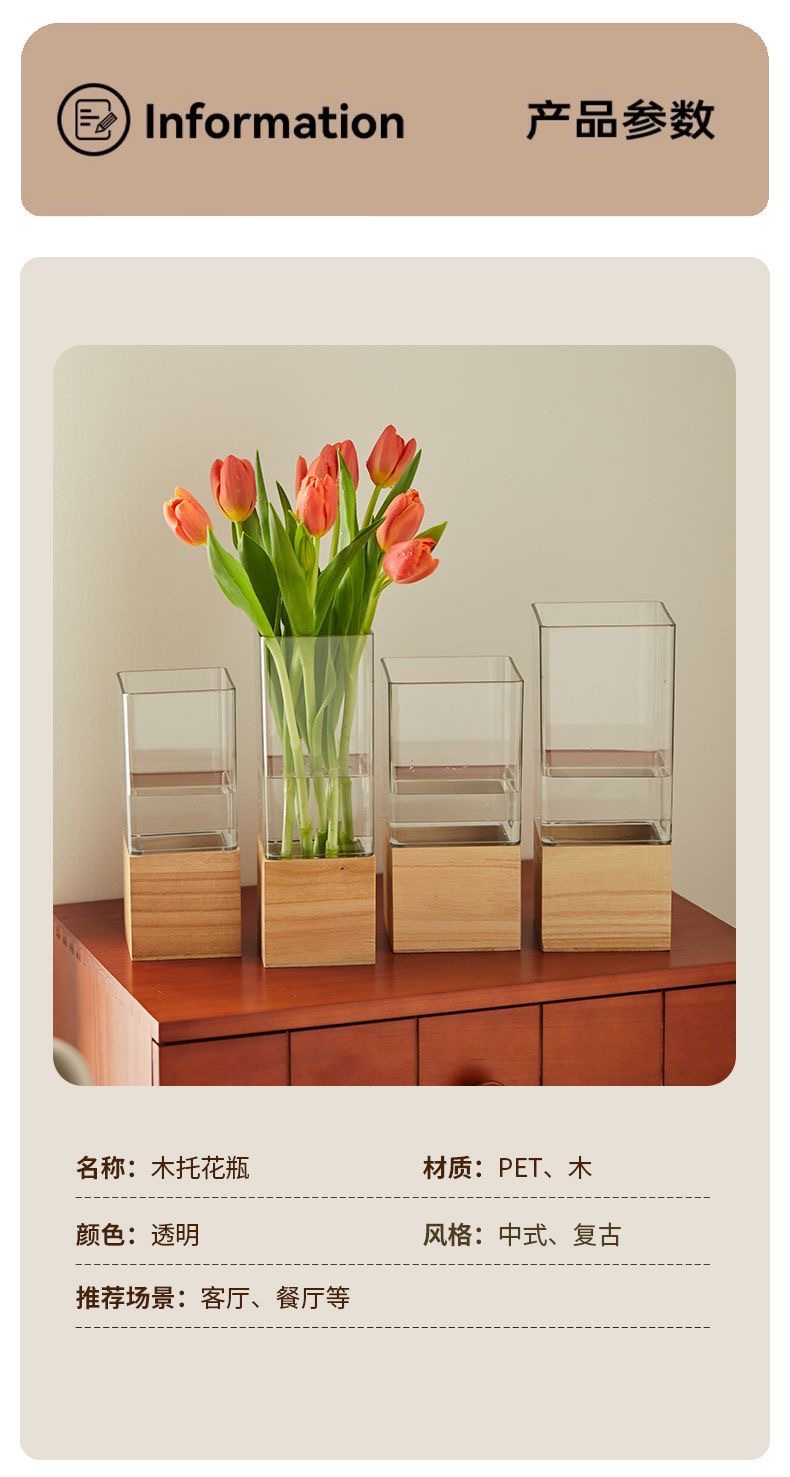 높은 투자율 모방 유리 안티 가을 PET 투명 꽃병 나무 꽃병 두껍게 둥근 사각형 바탕 화면 장식스토어 가기
