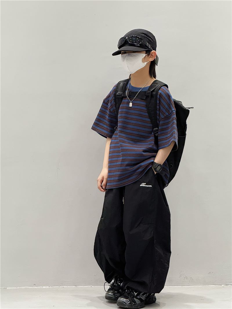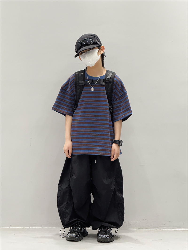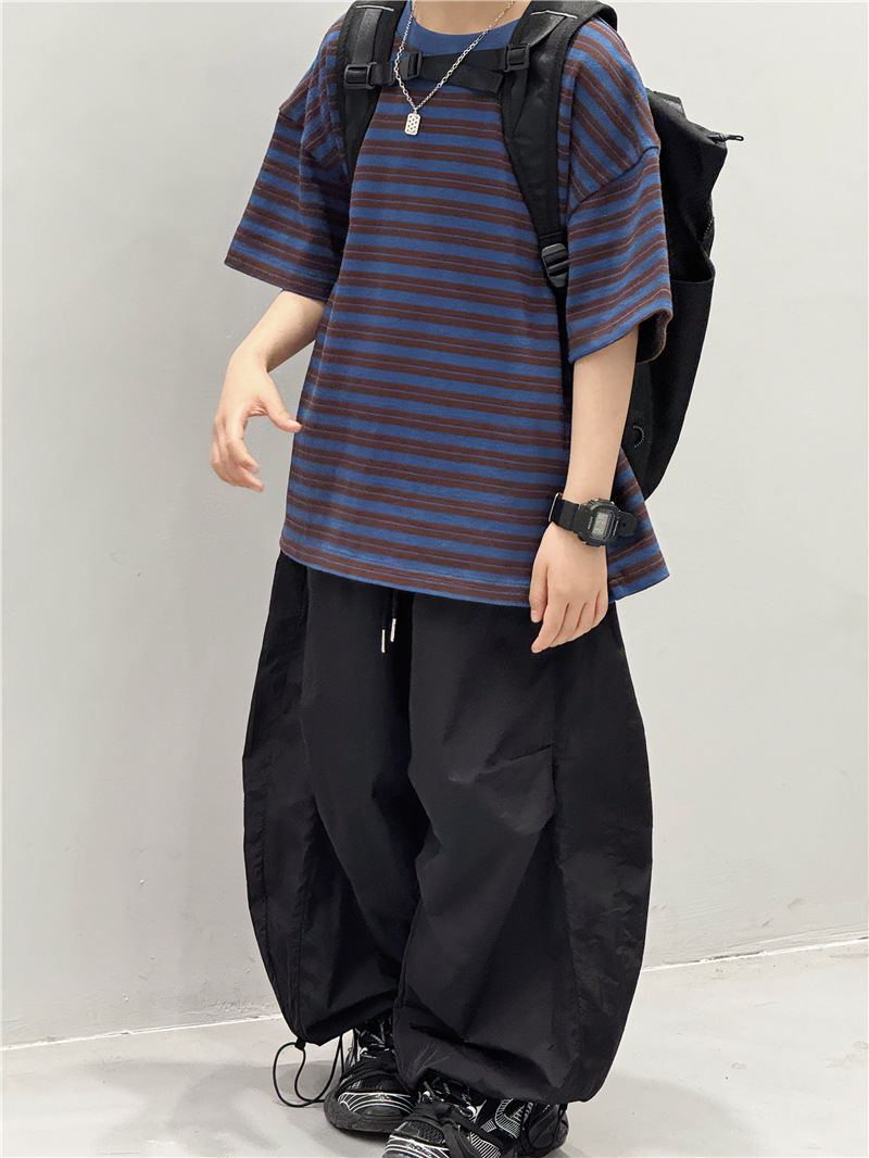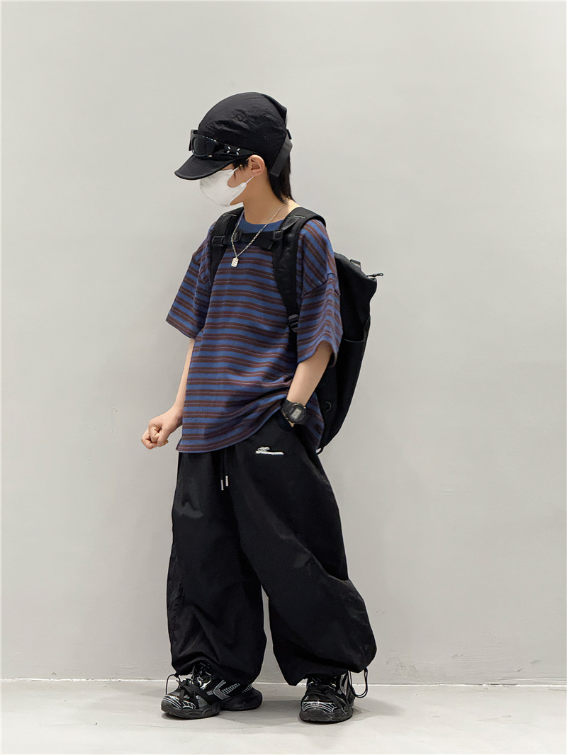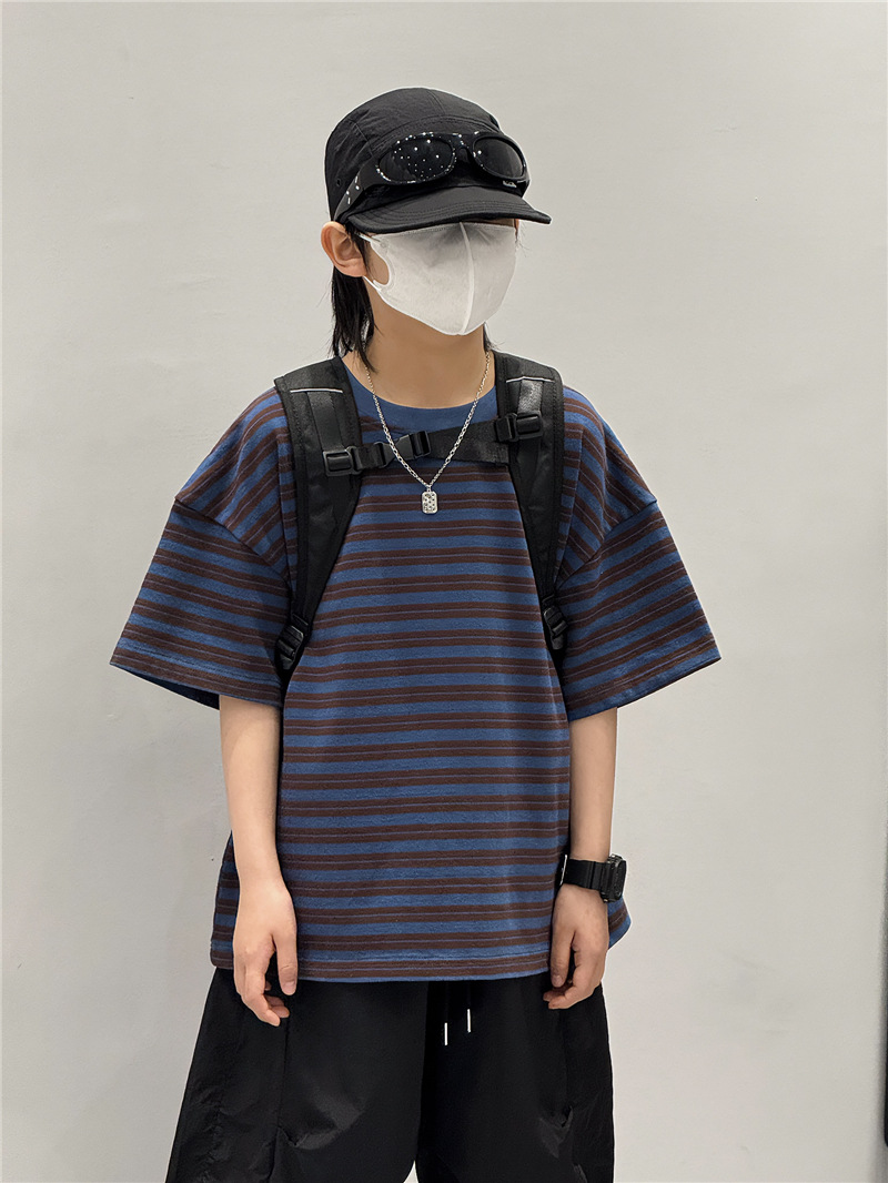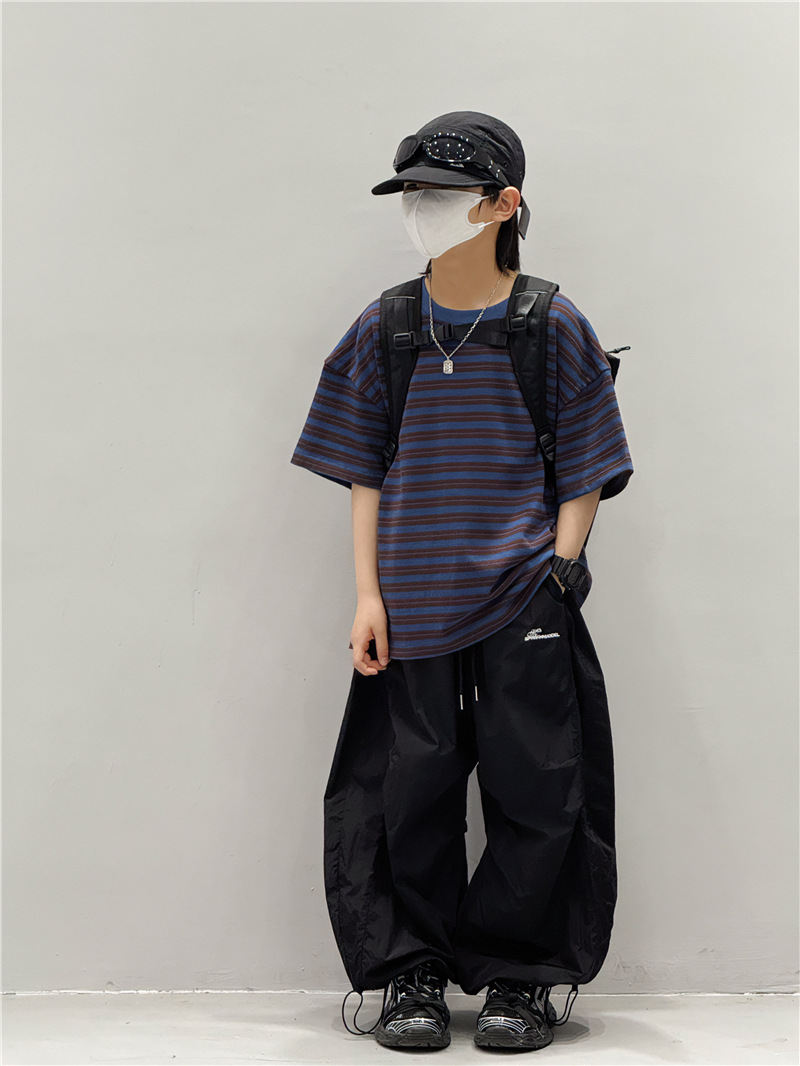 어린이 반팔 티셔츠 여름 2025 년 새 여름 얇은 잘 생긴 소년 여름 어린이 느슨한 줄무늬 탑스토어 가기
