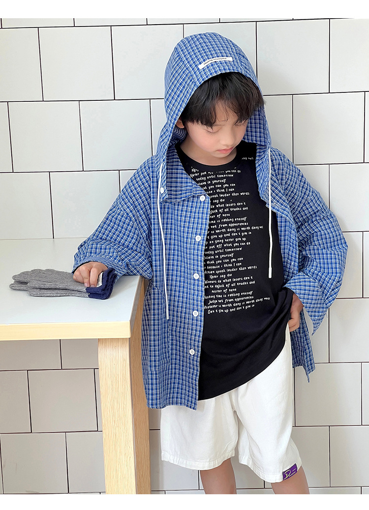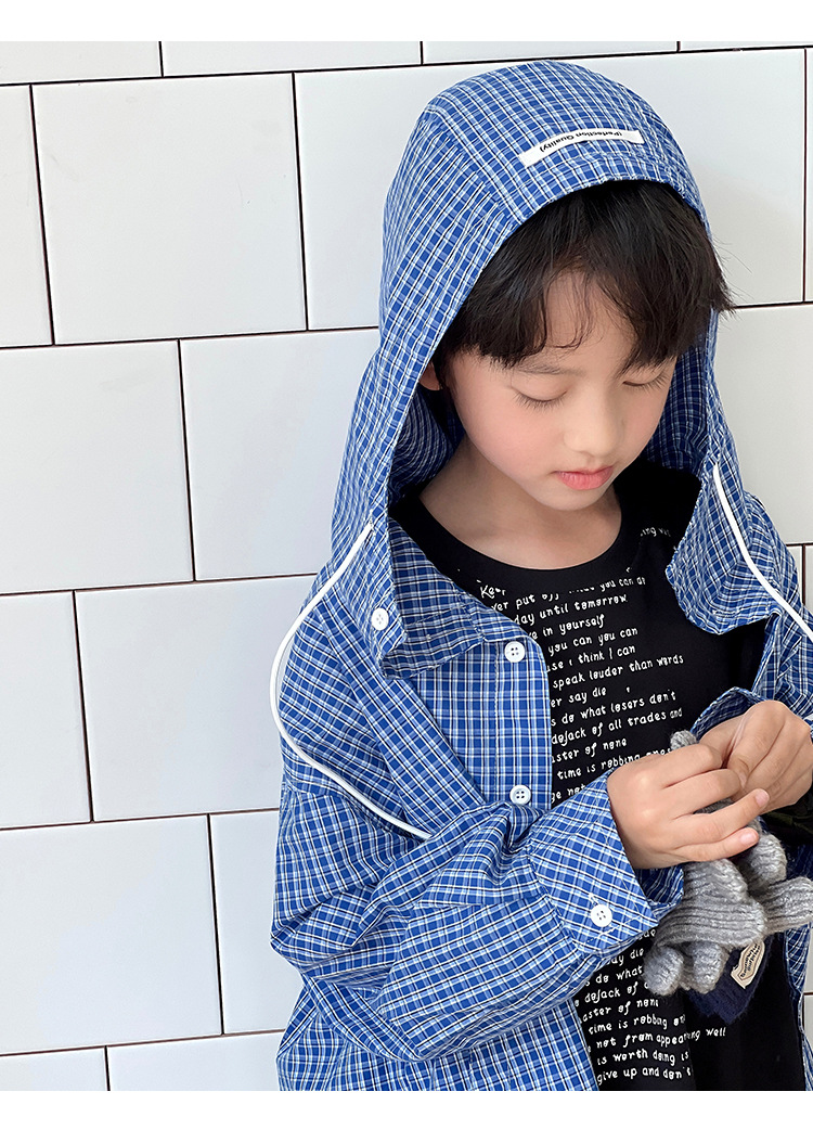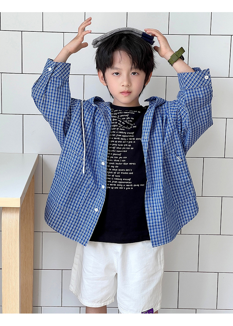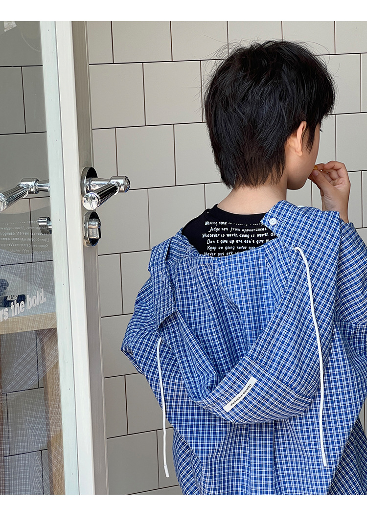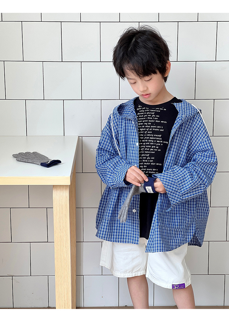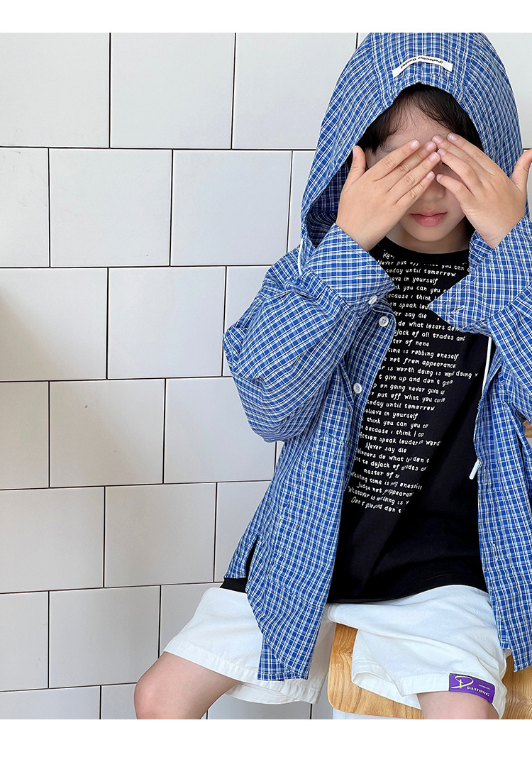 남아 여아 2026 여름 얇은 루즈핏 캐주얼 스타일 긴팔 한국식 체크무늬 후드 자외선 차단 상의 재킷