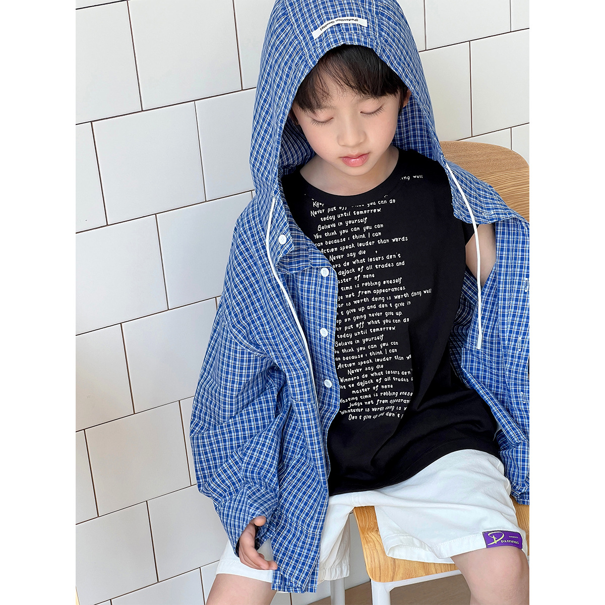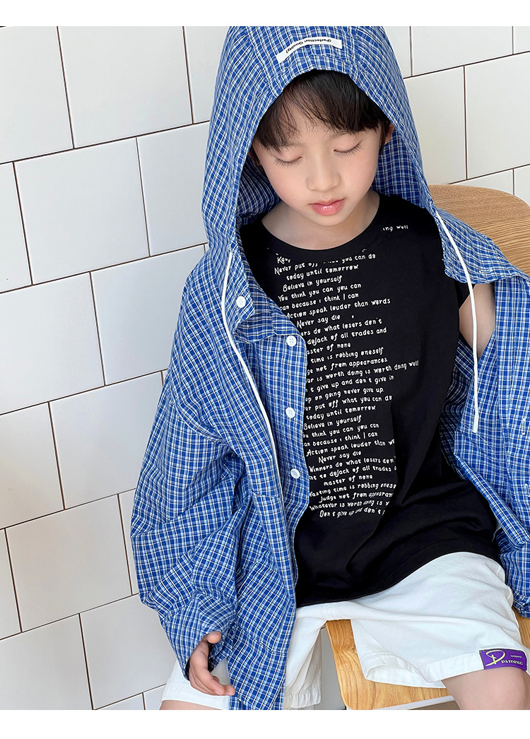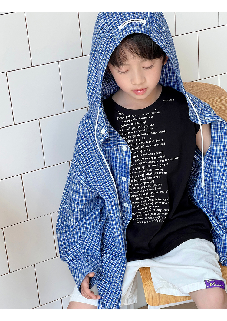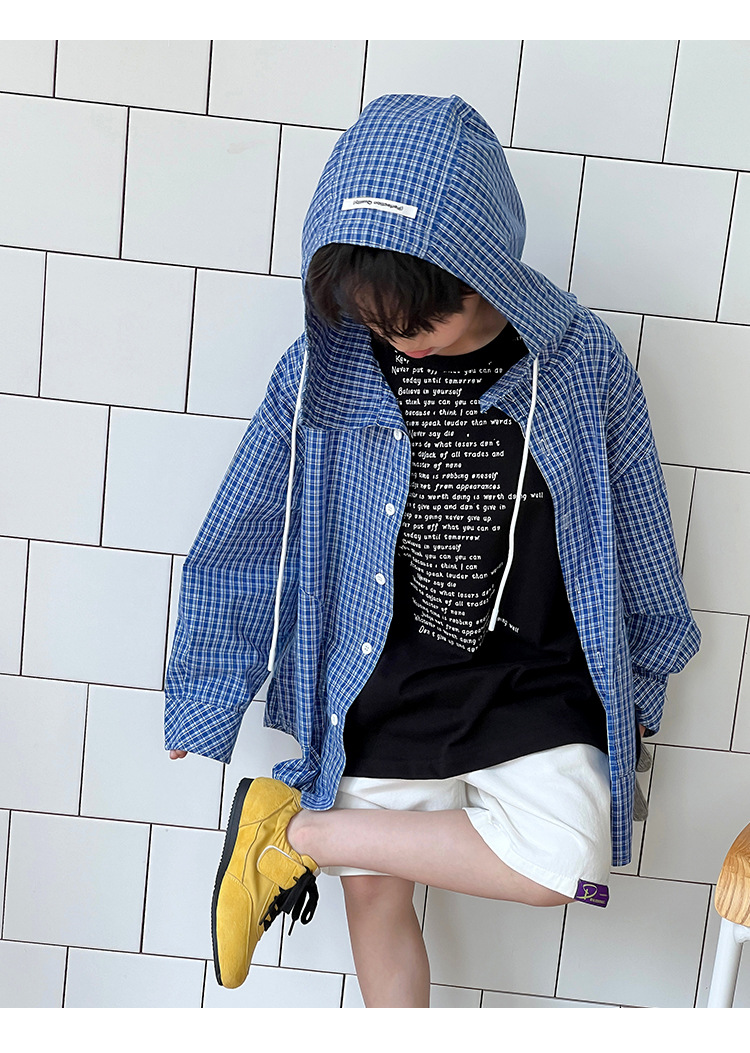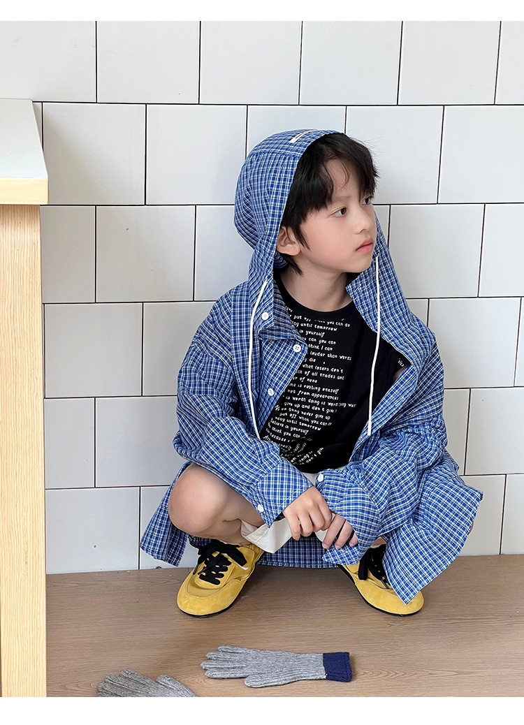 남아 여아 2026 여름 얇은 루즈핏 캐주얼 스타일 긴팔 한국식 체크무늬 후드 자외선 차단 상의 재킷