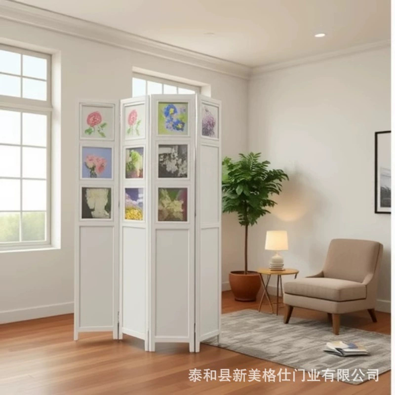 뉴질랜드산 소나무 화이트 프레임 스크린 파티션 접이식 이동식 북유럽 스타일 거실, 다이닝룸, 현관 마스터 디자인