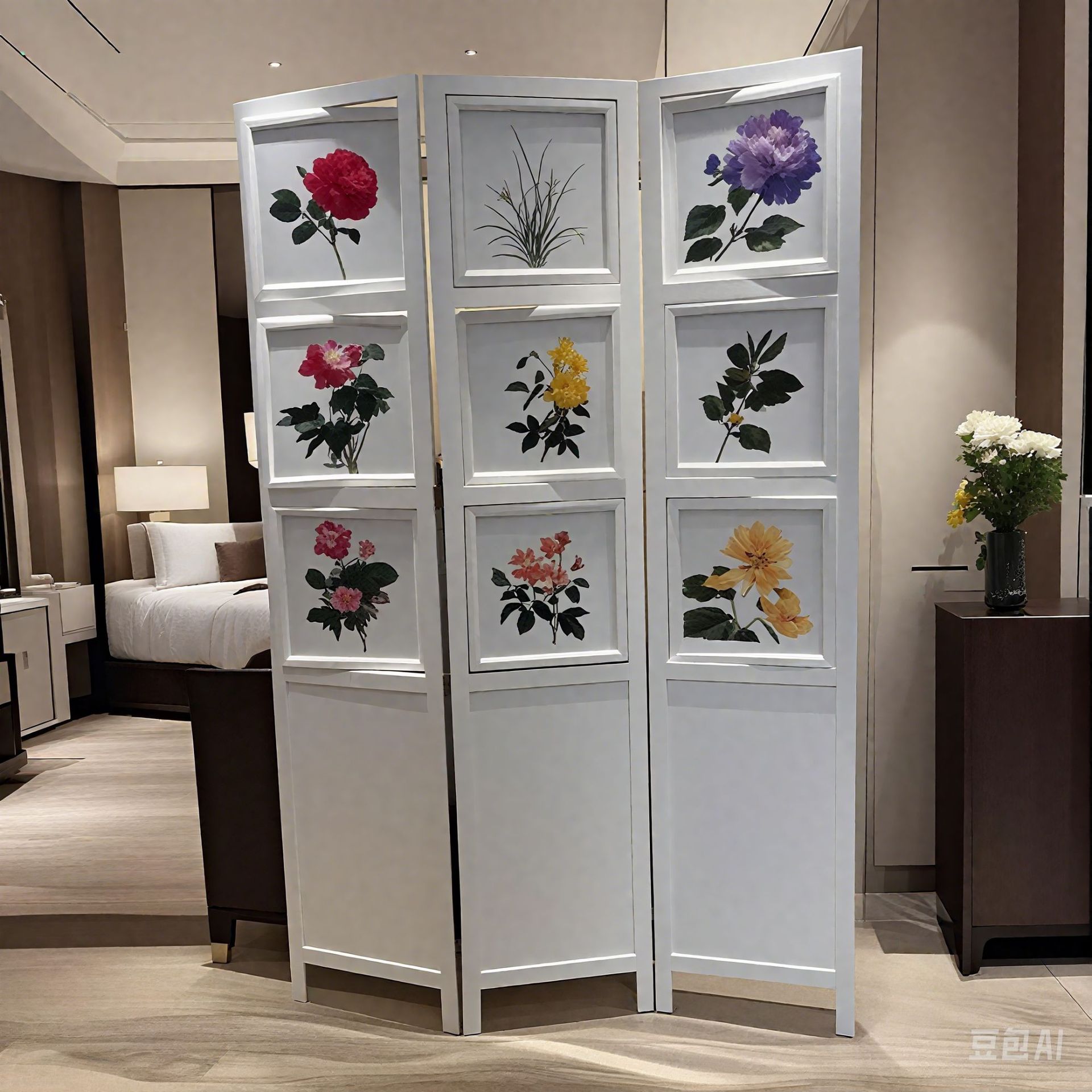 뉴질랜드산 소나무 화이트 프레임 스크린 파티션 접이식 이동식 북유럽 스타일 거실, 다이닝룸, 현관 마스터 디자인스토어 가기