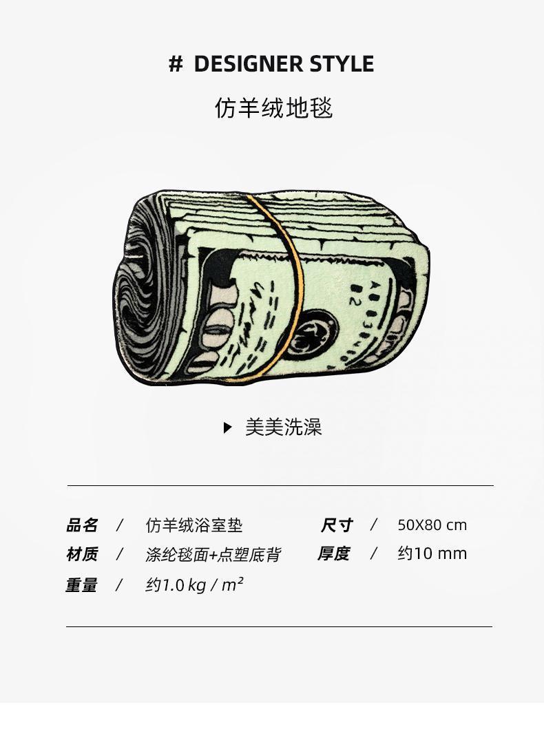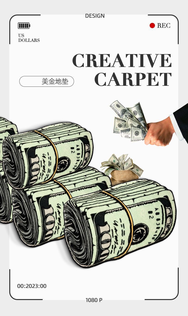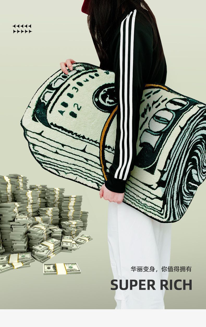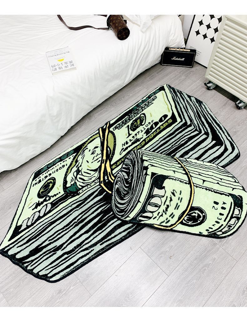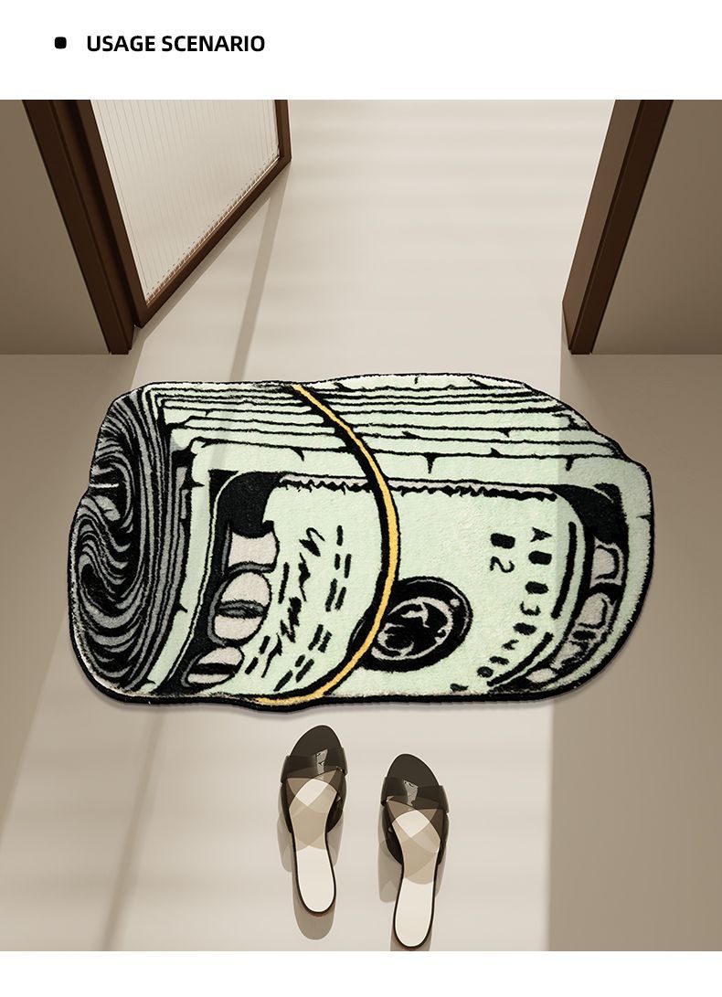 국경 간 창조적 인 달러 카펫 모양의 은행권 거실 소파 커피 테이블 바닥 컴퓨터 흔들 의자 쉬운 관리 풋 매트스토어 가기