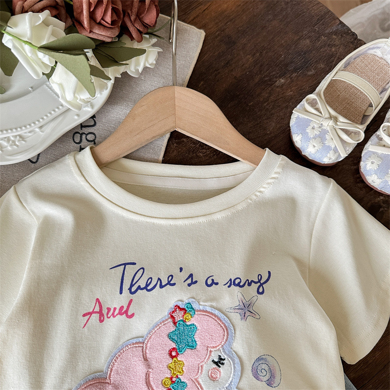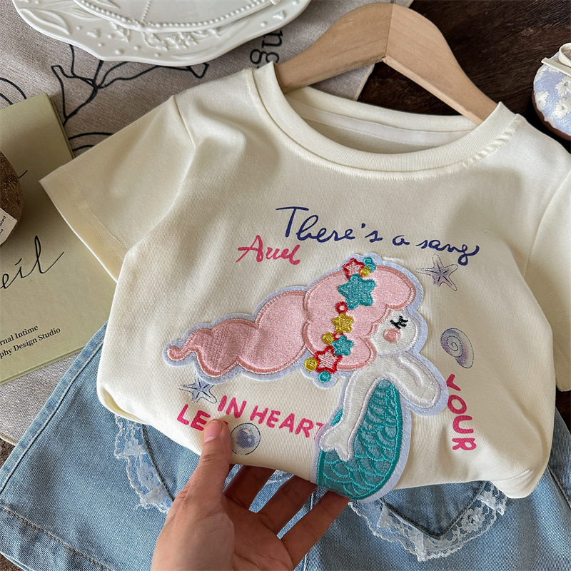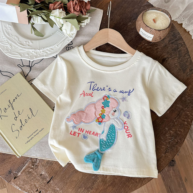 어린이 Xingyuan 소녀의 반팔 티셔츠 여름 아기의 새로운 서양식 만화 인어 공주 어린이 캐주얼 탑 T